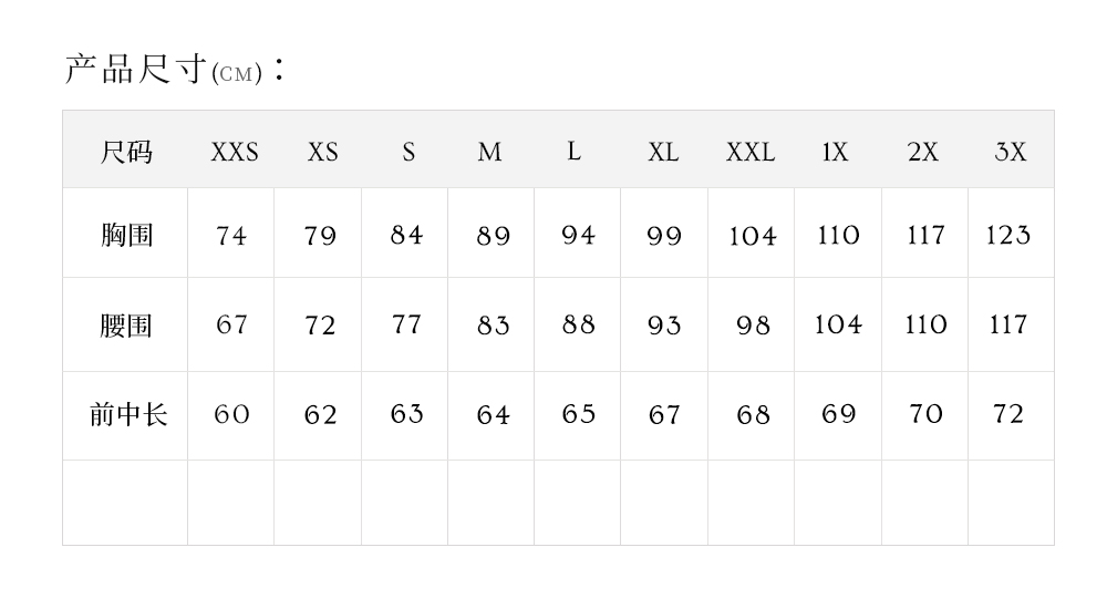 尺碼 XXS XS S M L XL XXL 1X 2X 3X