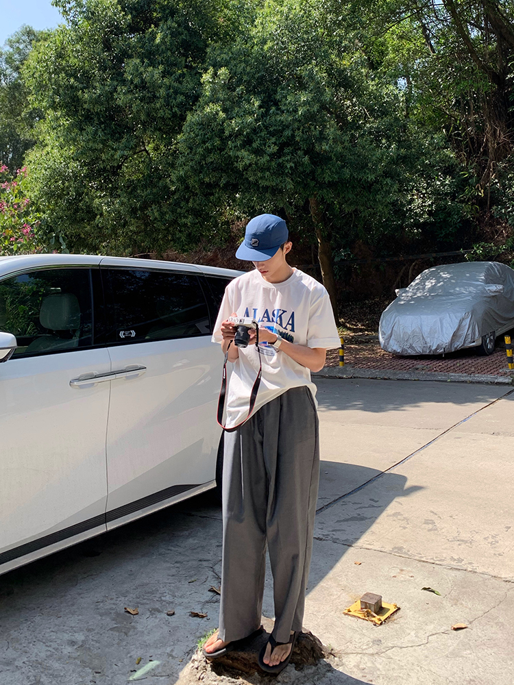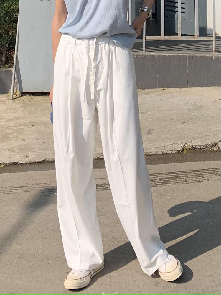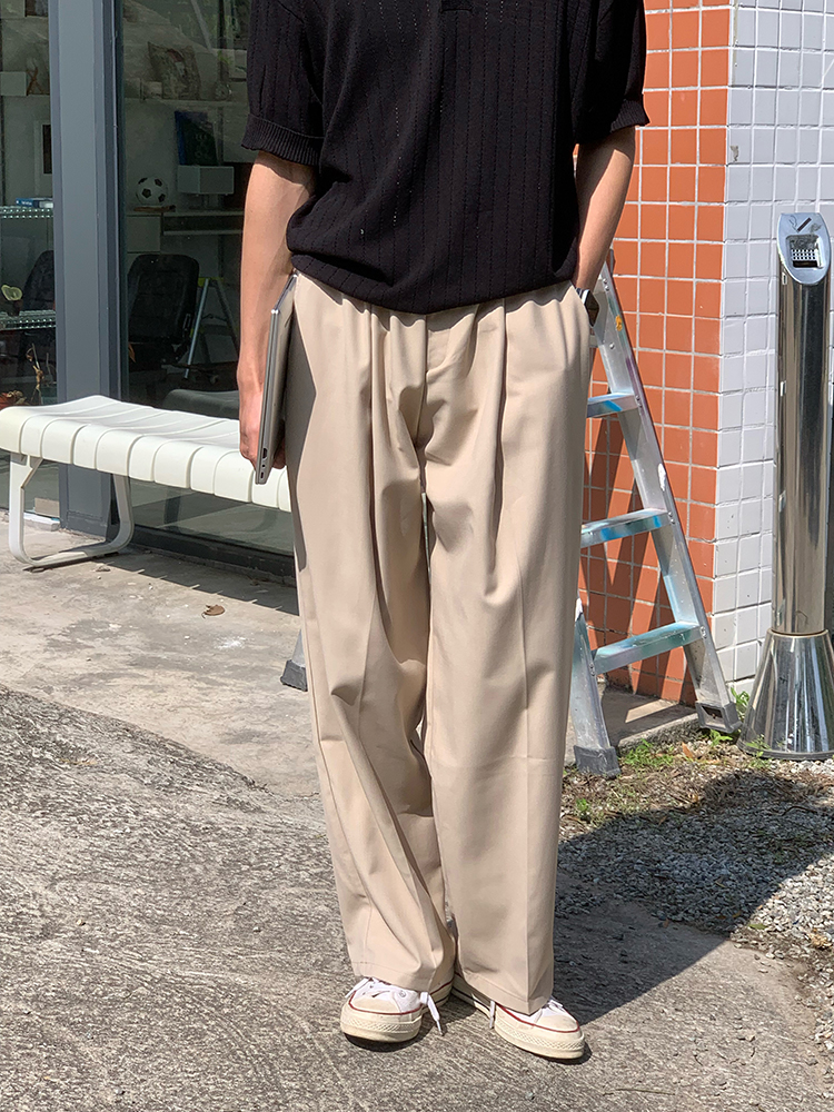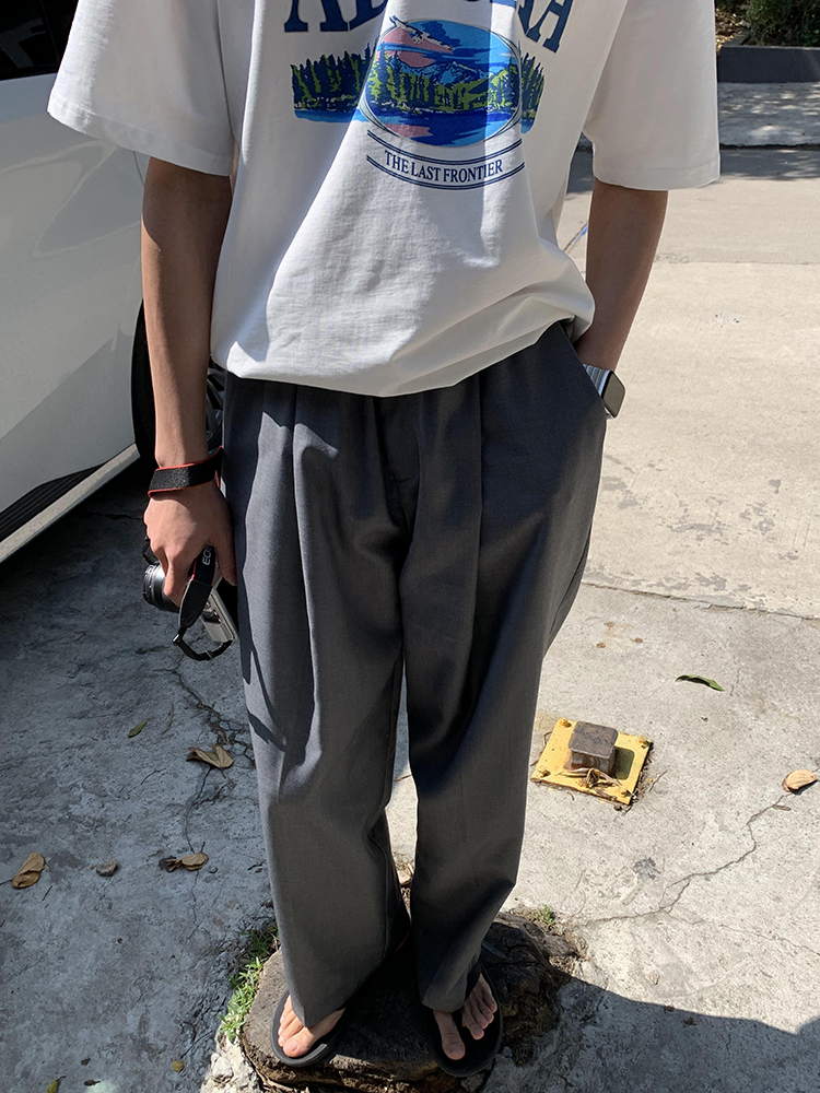 JH HOMME ins韓系四色休閒寬鬆直筒垂感純色百搭闊腿長褲男女