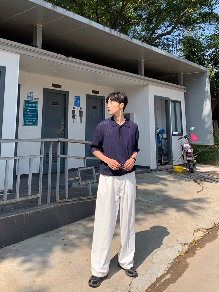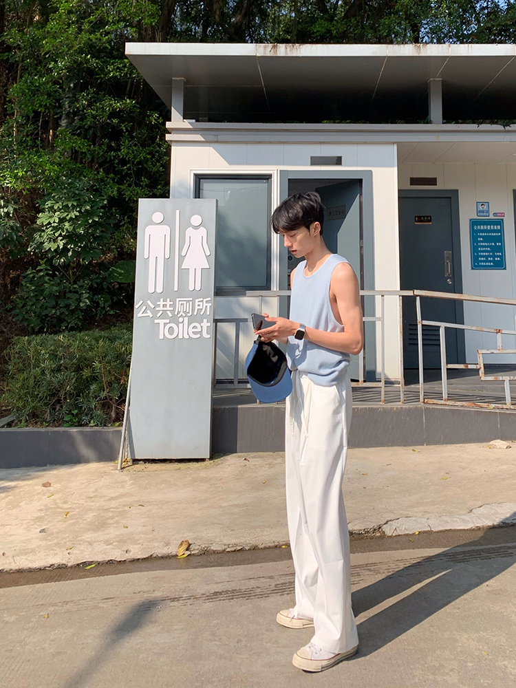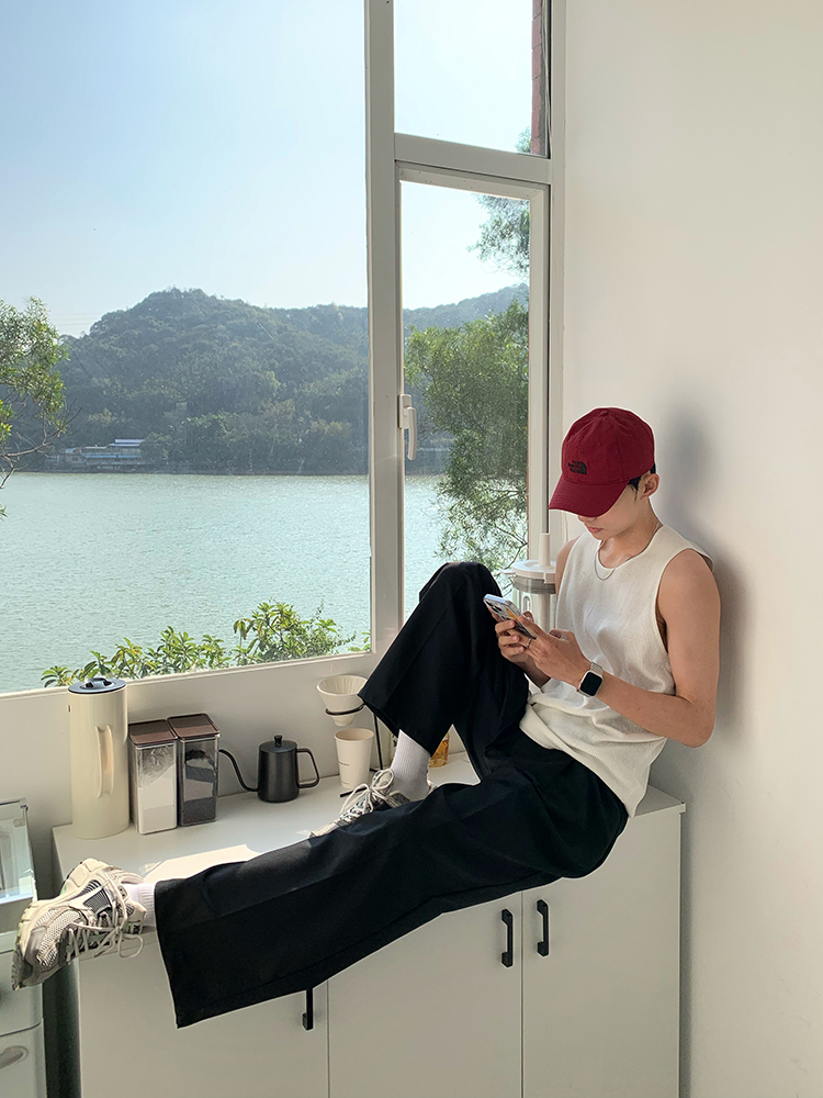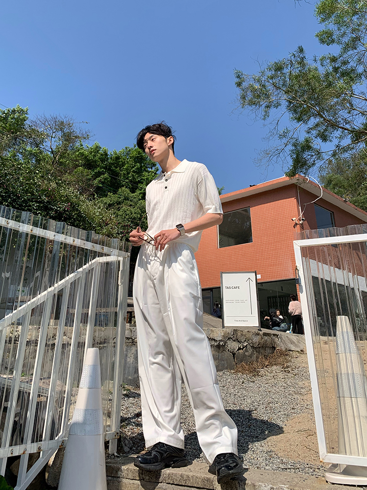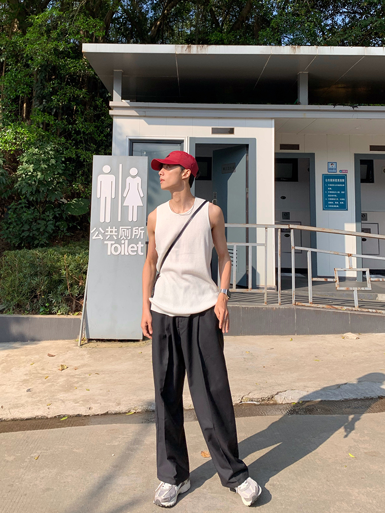 JH HOMME ins韓系四色休閒寬鬆直筒垂感純色百搭闊腿長褲男女