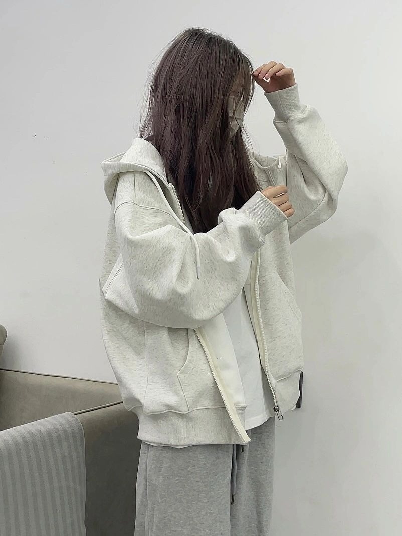 2023新款初秋季美式復古oversize灰色連帽運動衫外套女春秋款潮ins