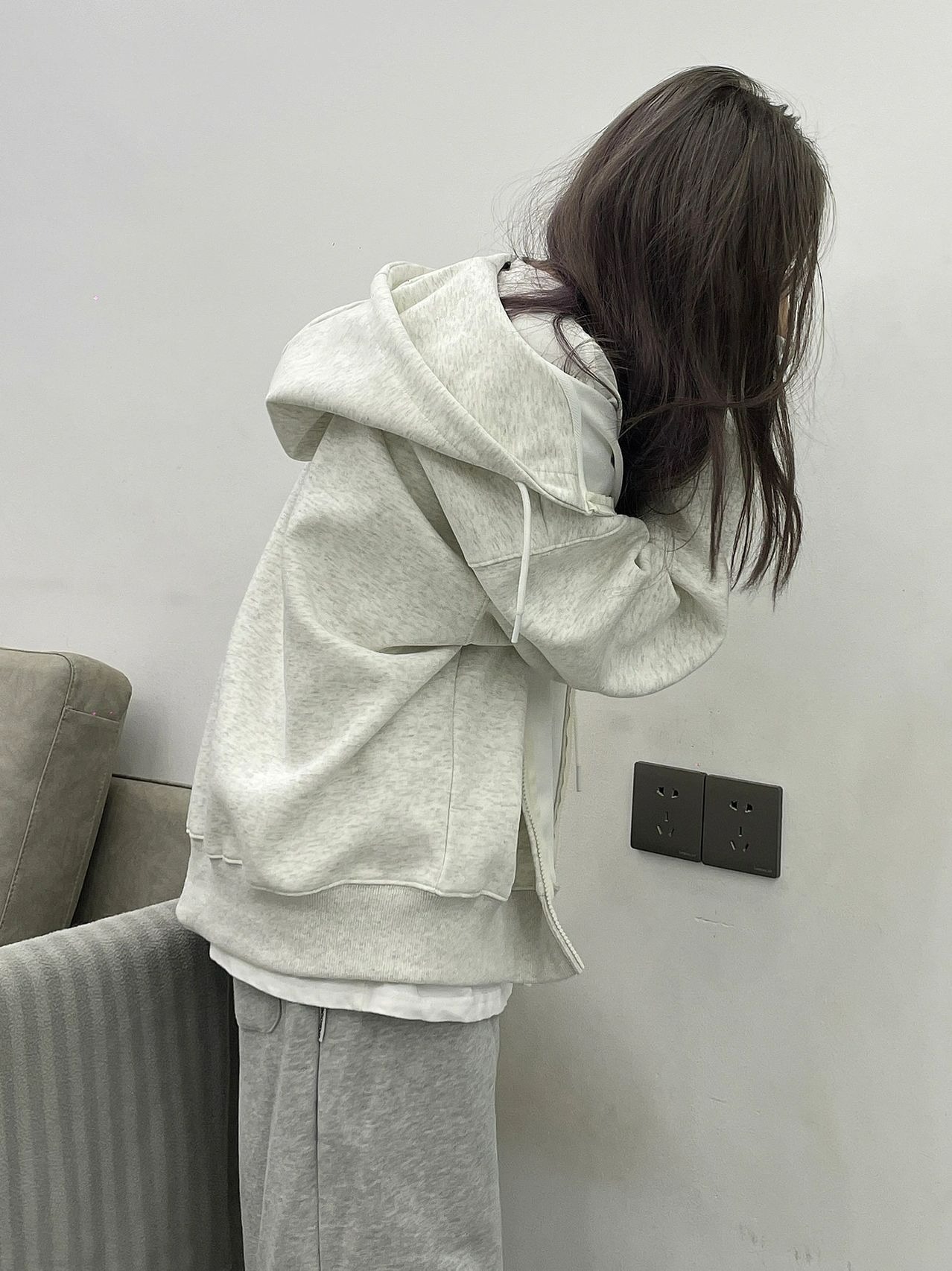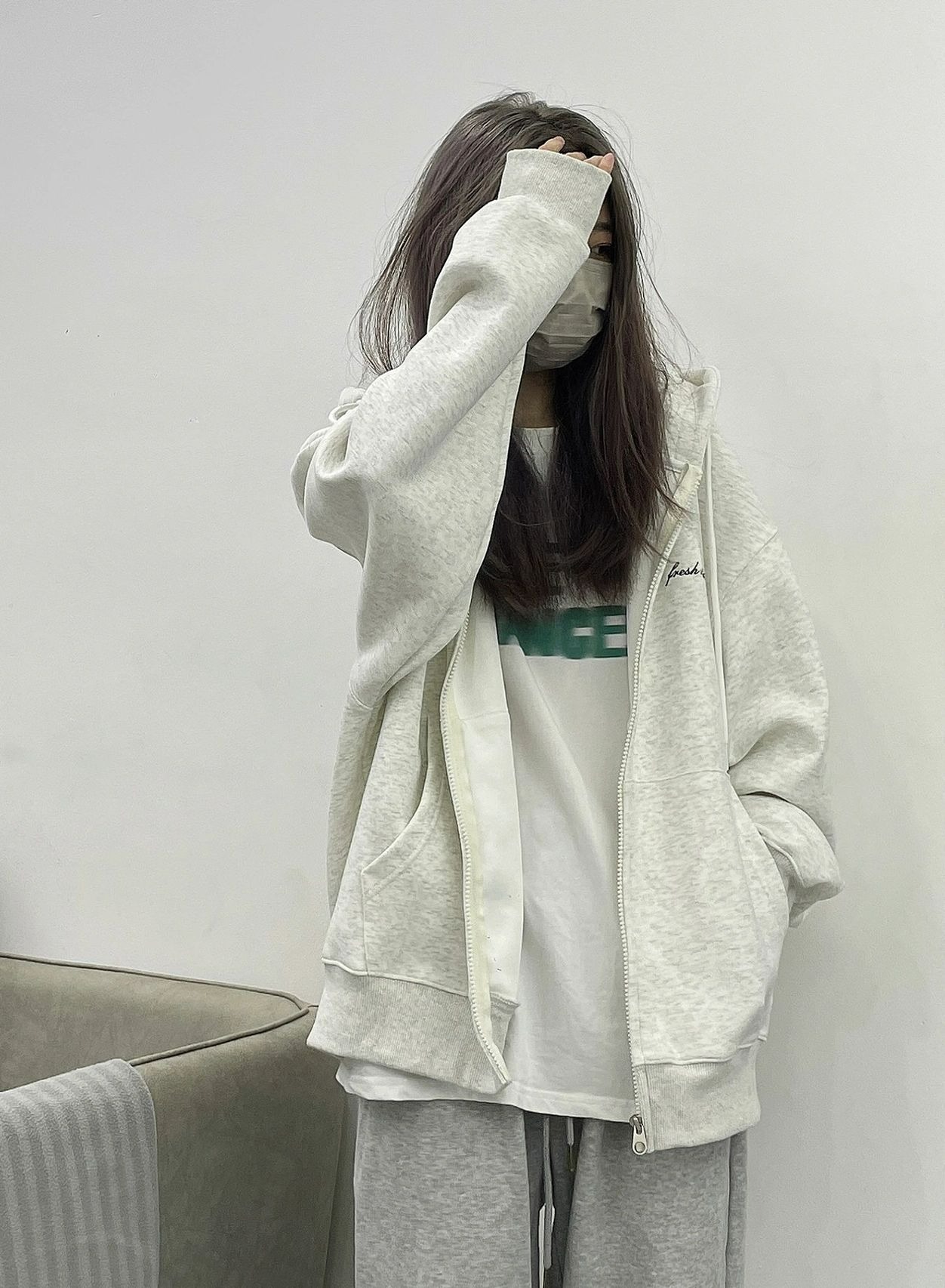 顏色分類 花灰色字母款,灰色純色款,【奶fufu外套/藝術生奶乖/連帽/高級感】,【奶系穿搭/歐貨/漂亮/今年流行/超好看】,【連帽/日系/奶糯風/小個子/初秋/奶甜】