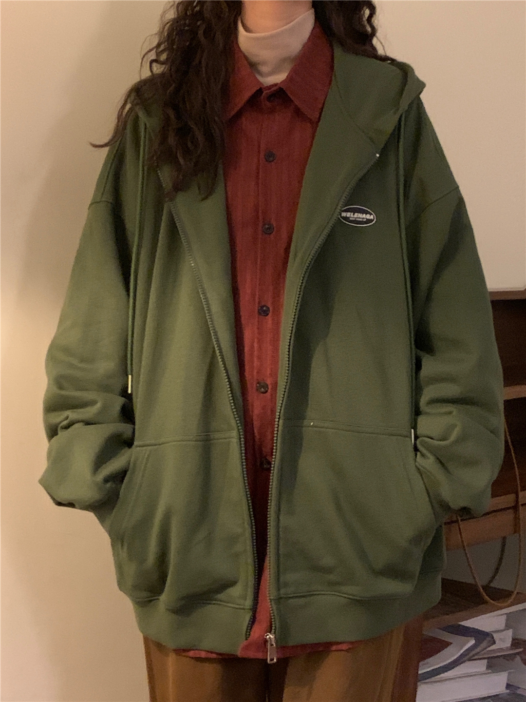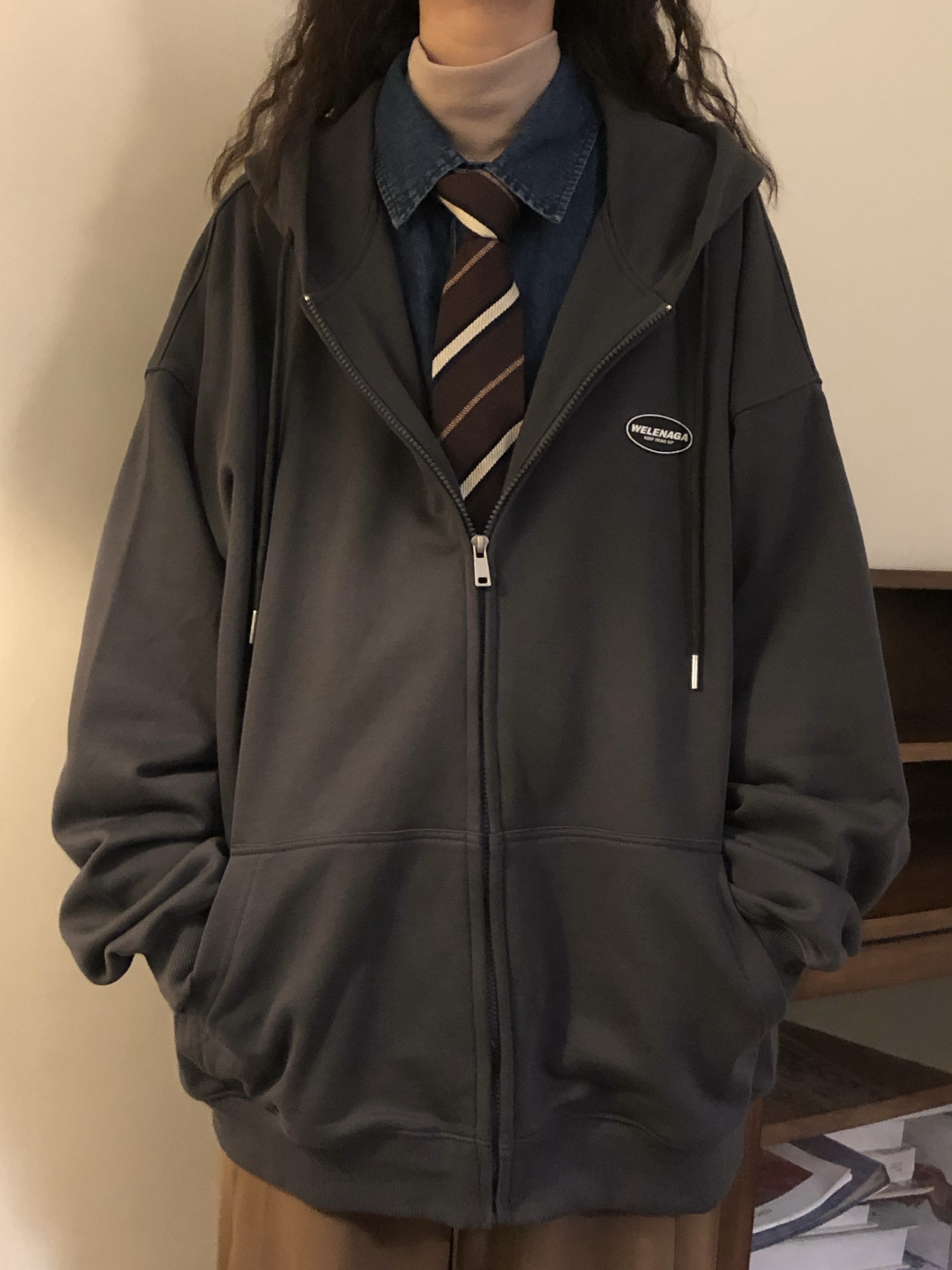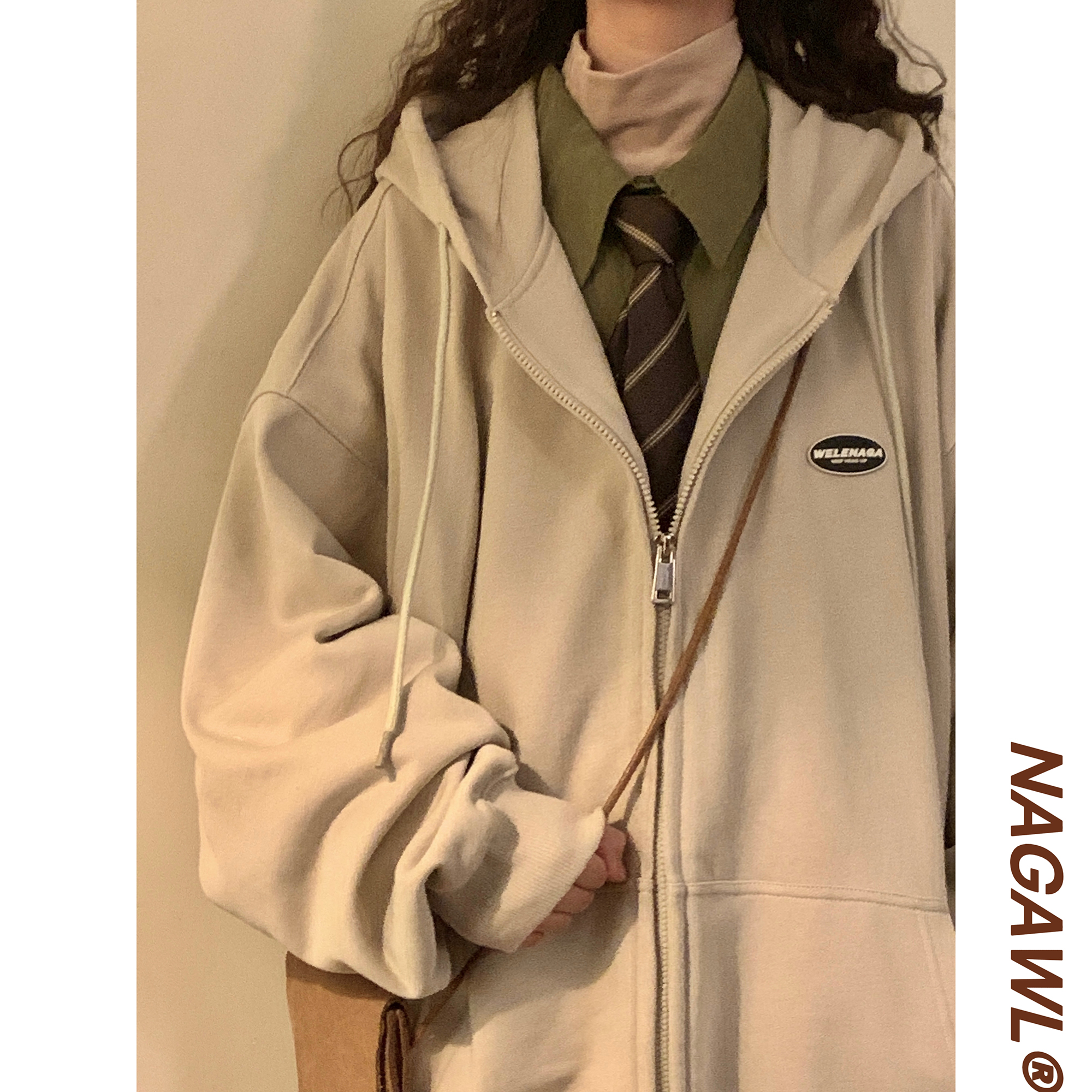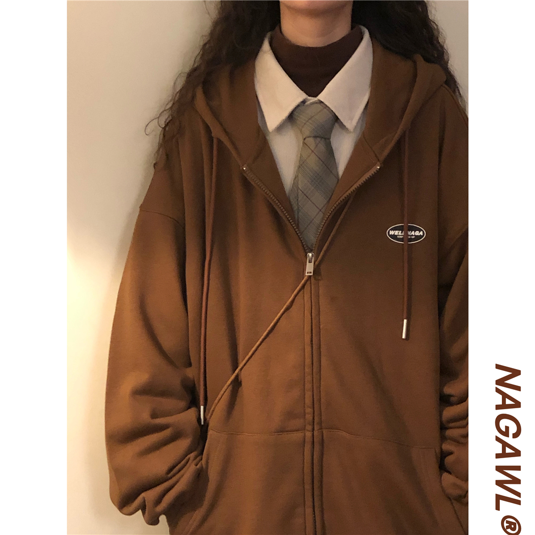naga自制秋冬寬鬆美式復古cityboy日系拉鍊開衫厚棉T外套女無性別