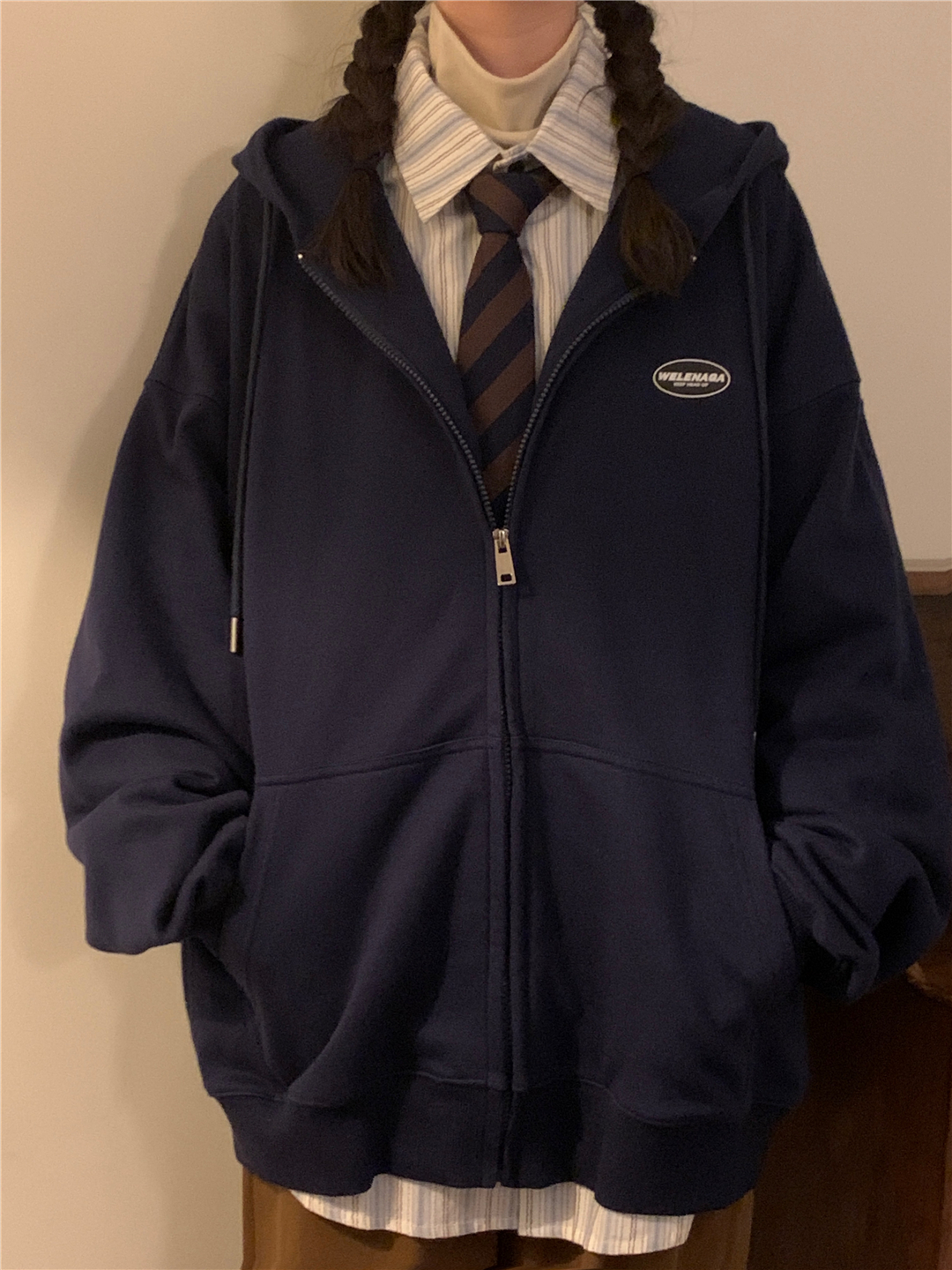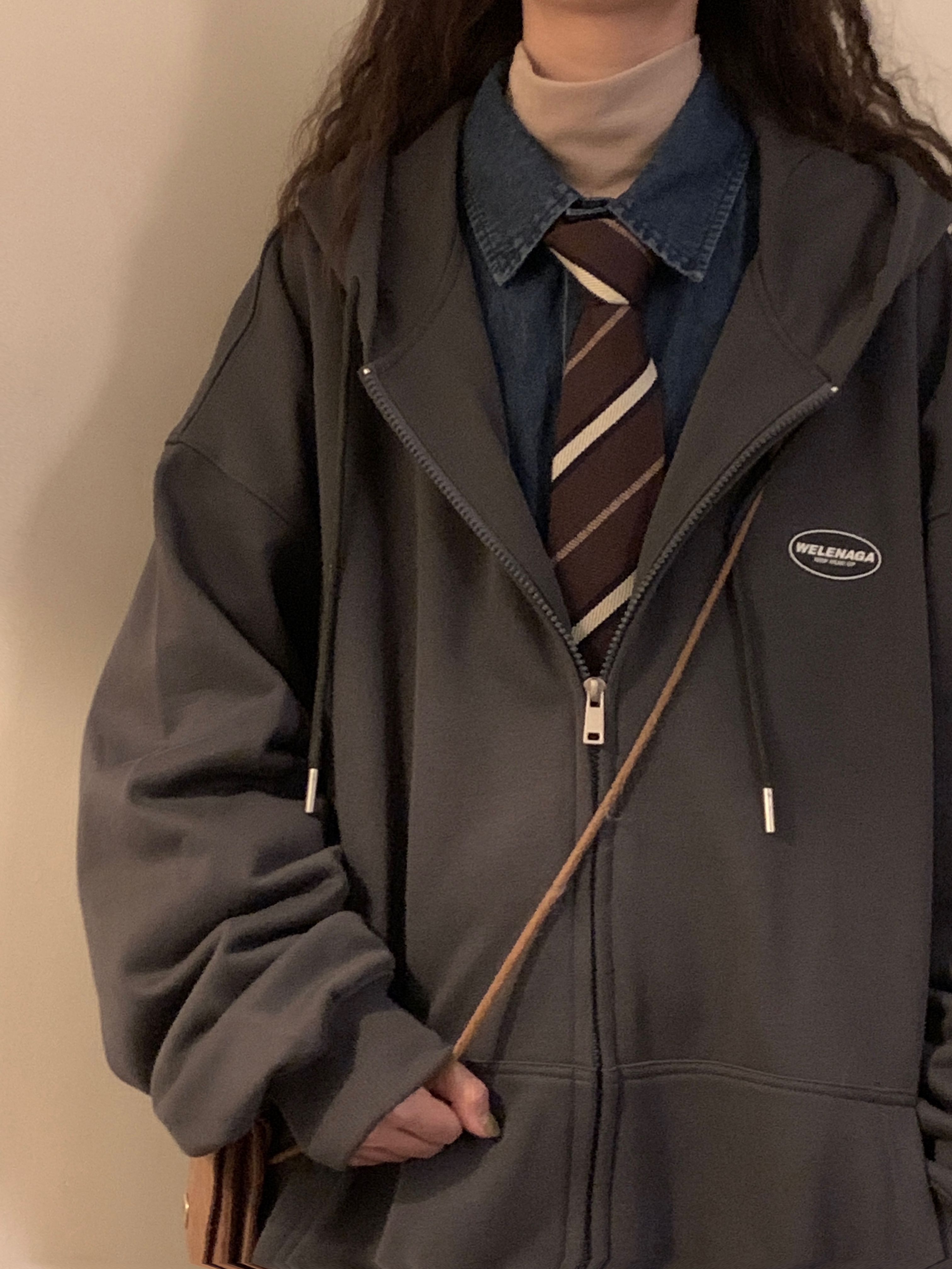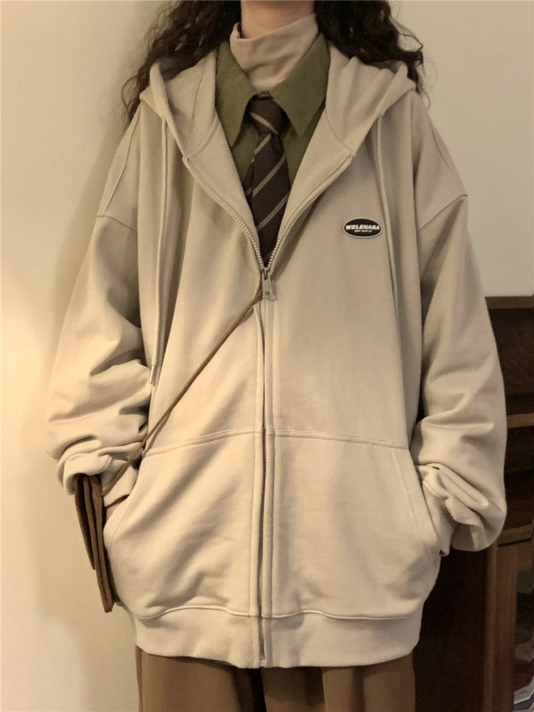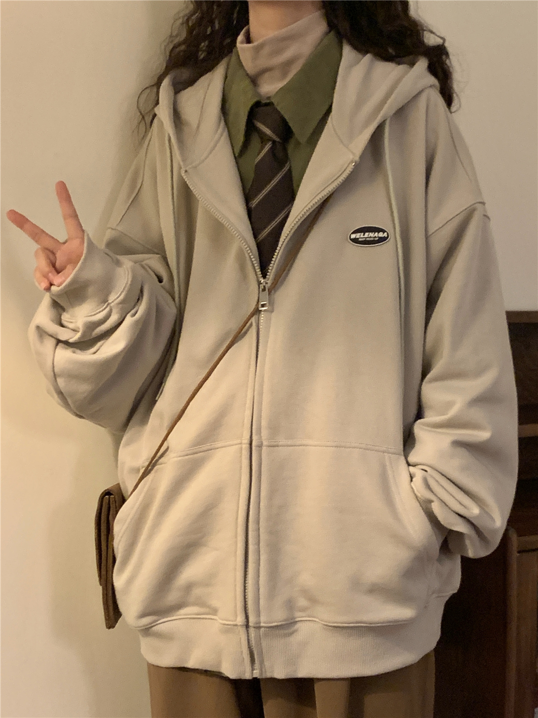 naga自制秋冬寬鬆美式復古cityboy日系拉鍊開衫厚棉T外套女無性別