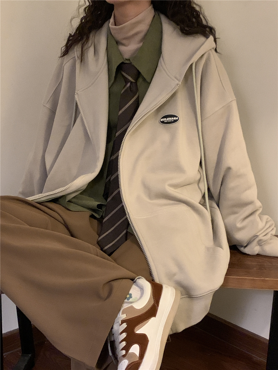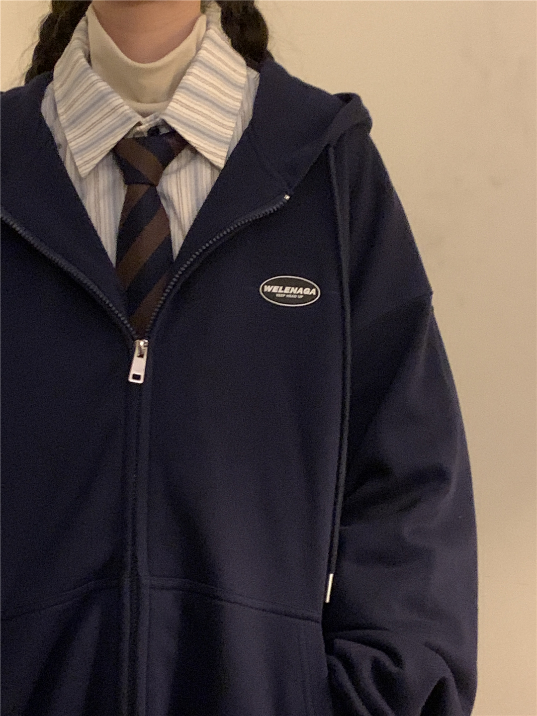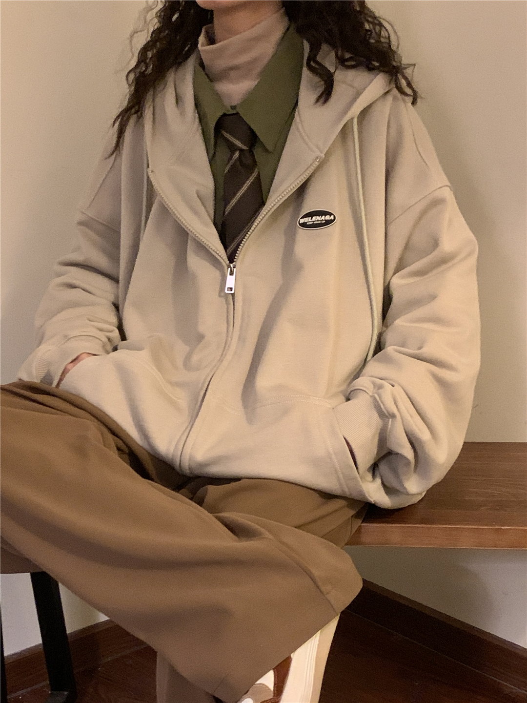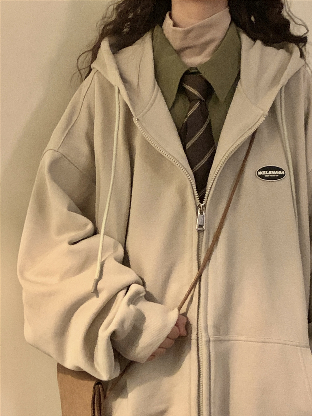 naga自制秋冬寬鬆美式復古cityboy日系拉鍊開衫厚棉T外套女無性別