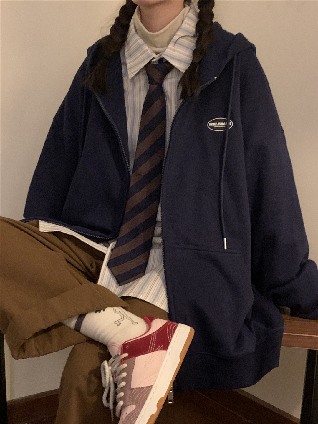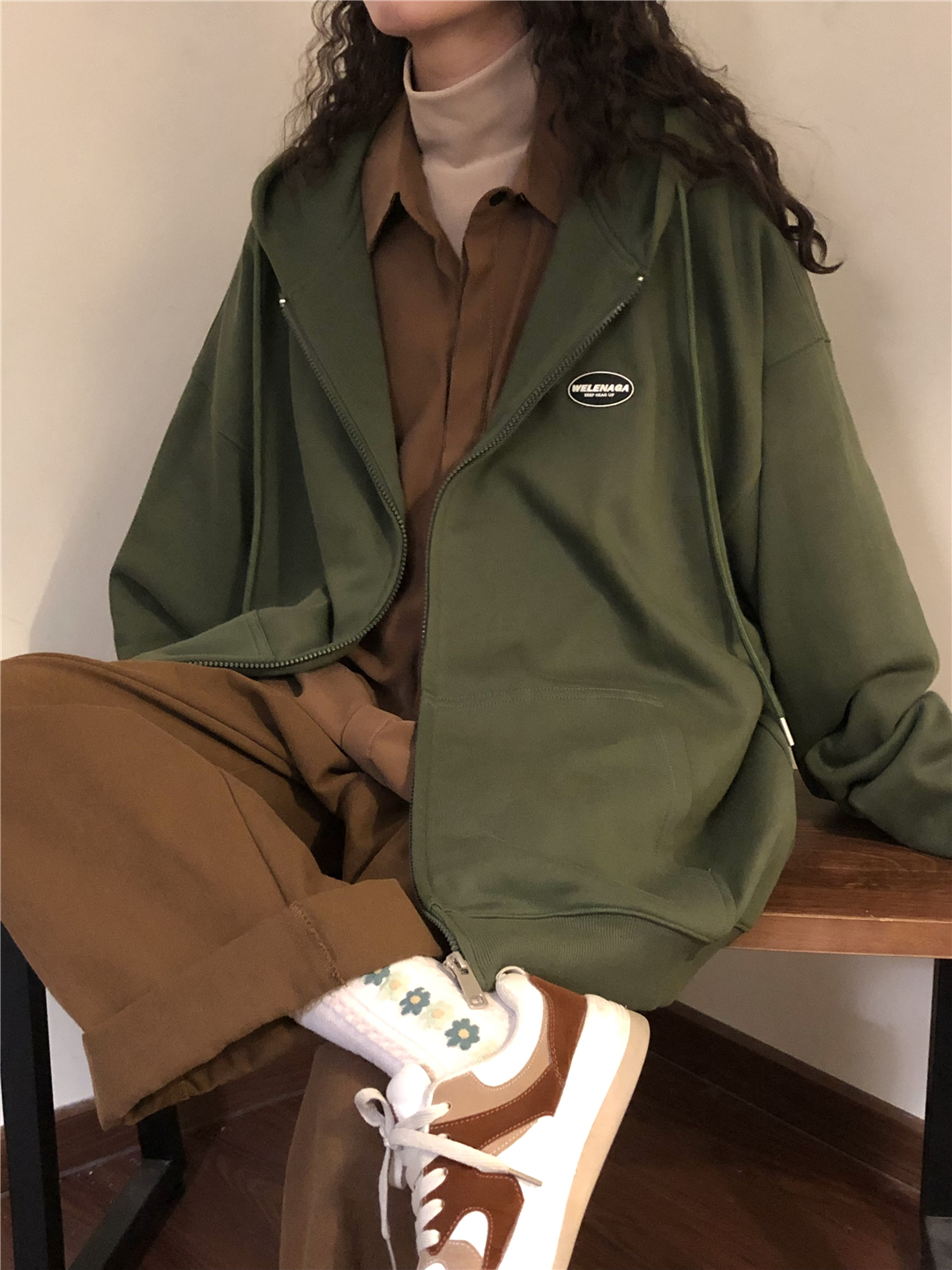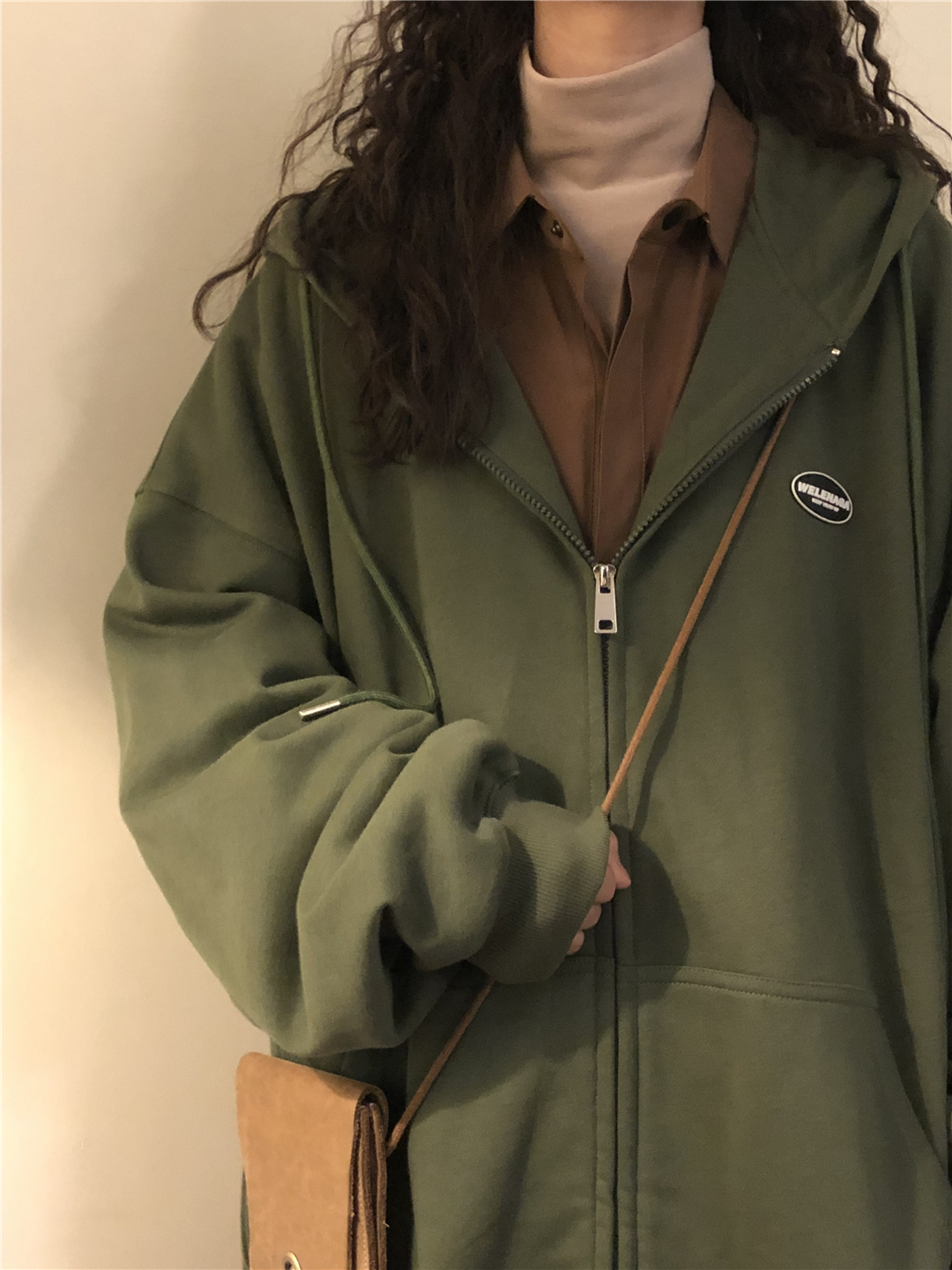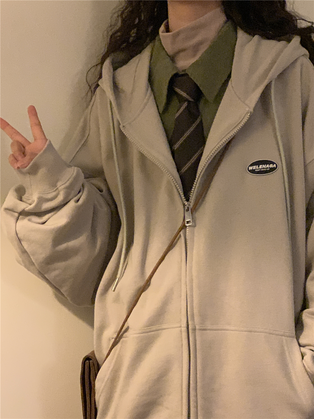 naga自制秋冬寬鬆美式復古cityboy日系拉鍊開衫厚棉T外套女無性別