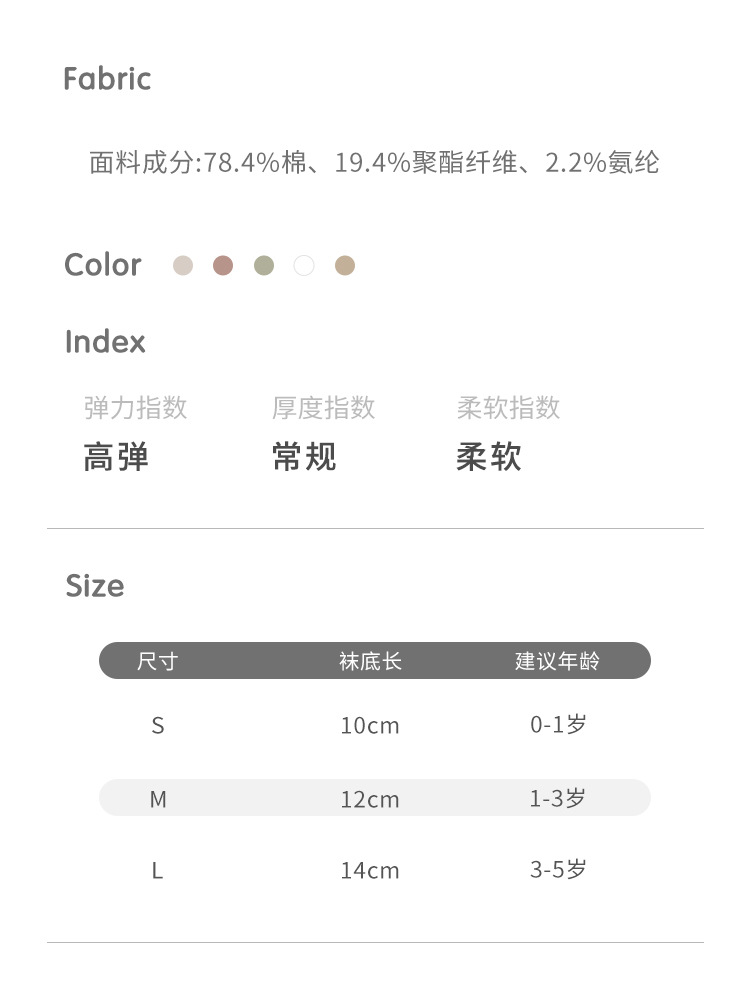 童袜尺码 S码0-1岁,M码1-3岁,L码3-5岁