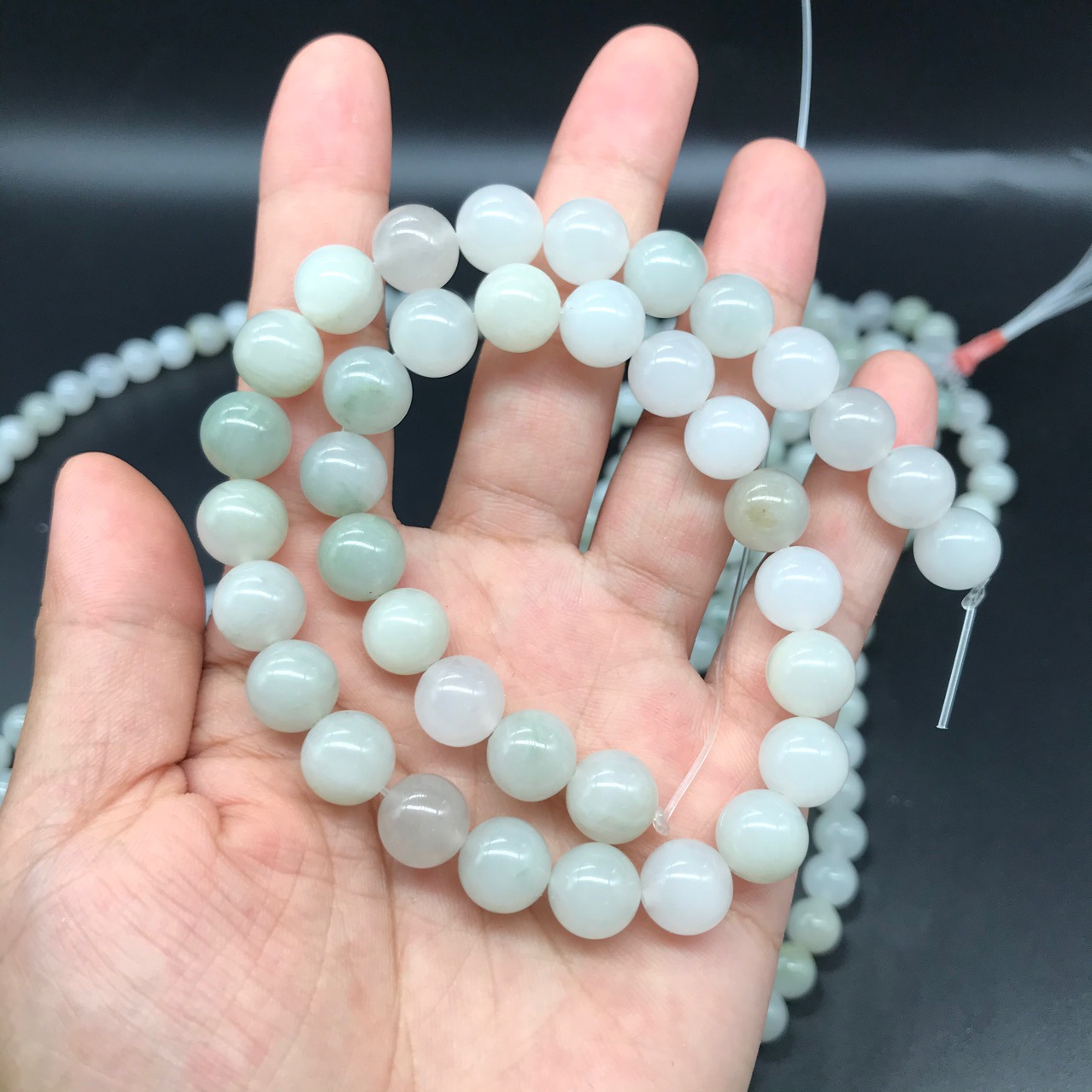 【产品名称】新疆天山翠散珠批发 圆珠冰翠玉珠 老型珠桶珠半成品DIY配件手链
