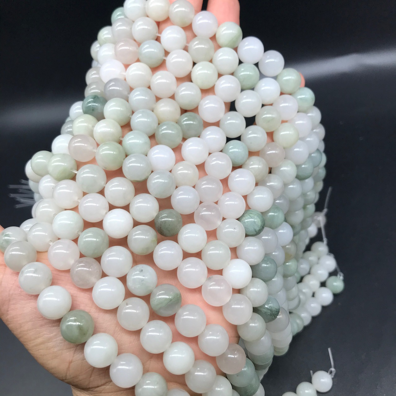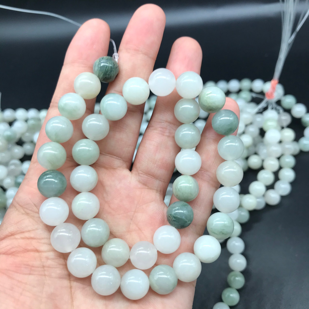 新疆天山翠散珠批发 圆珠冰翠玉珠 老型珠桶珠半成品DIY配件手链