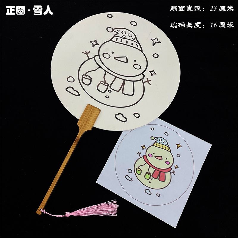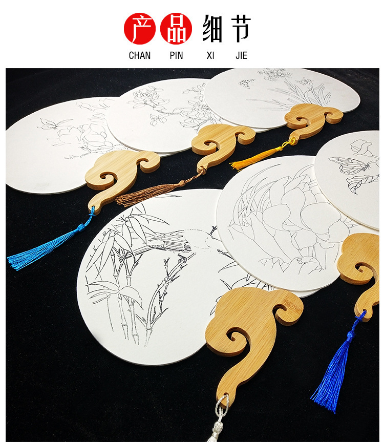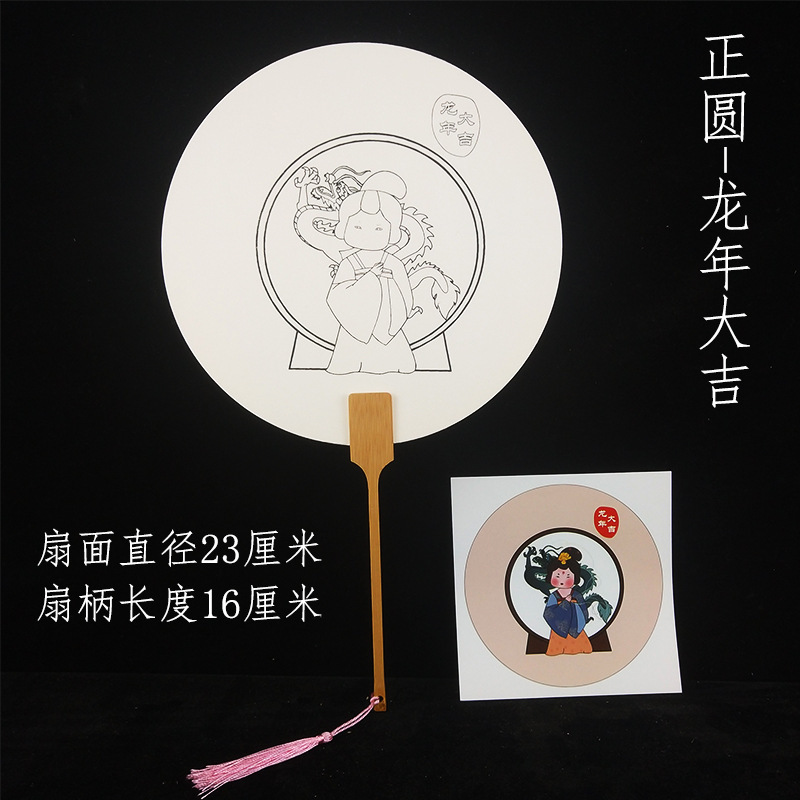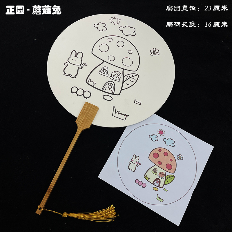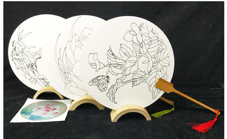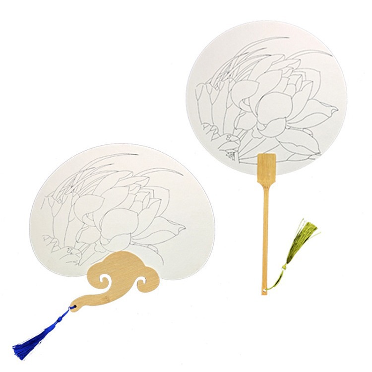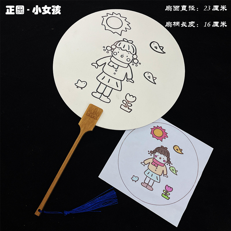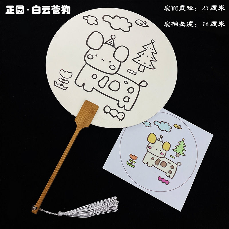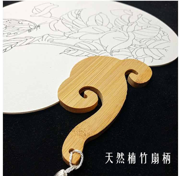 宣纸团扇白描底稿填色扇子 亲子活动儿童DIY涂鸦绘画涂色扇面批发