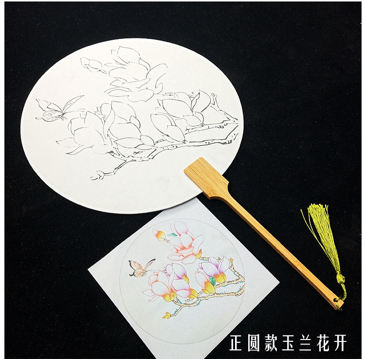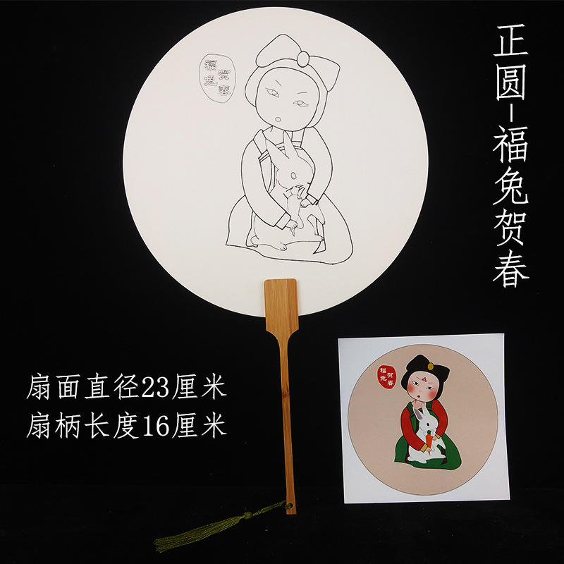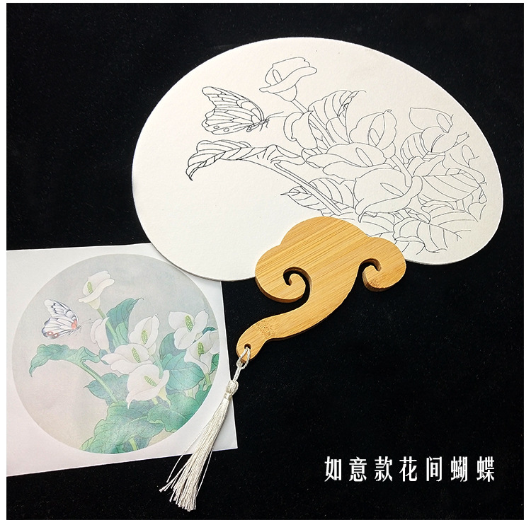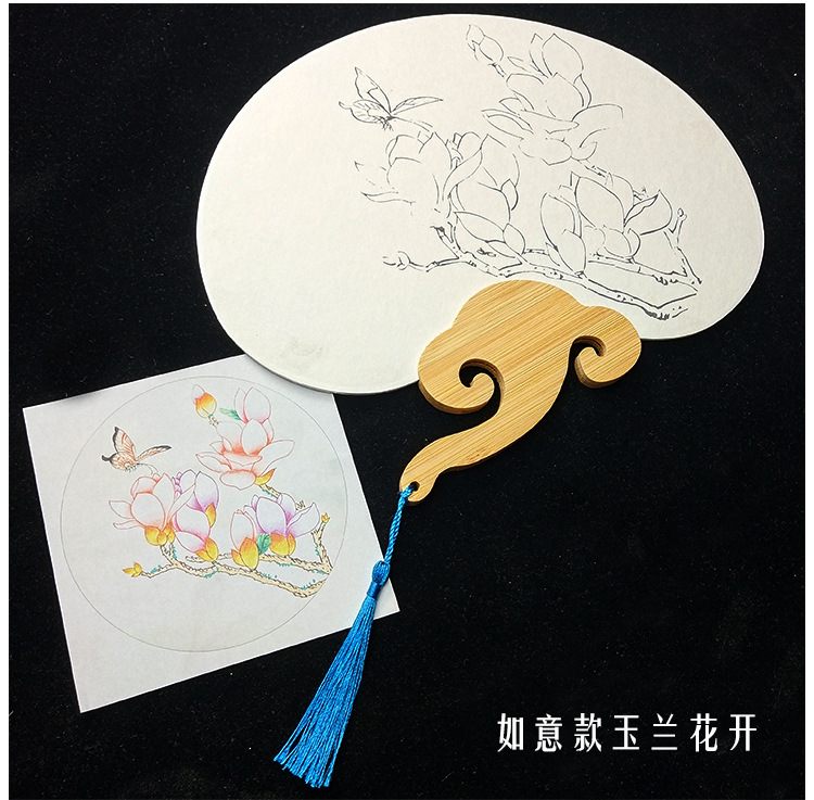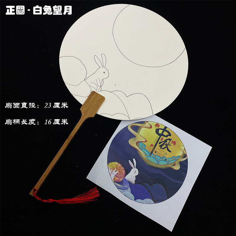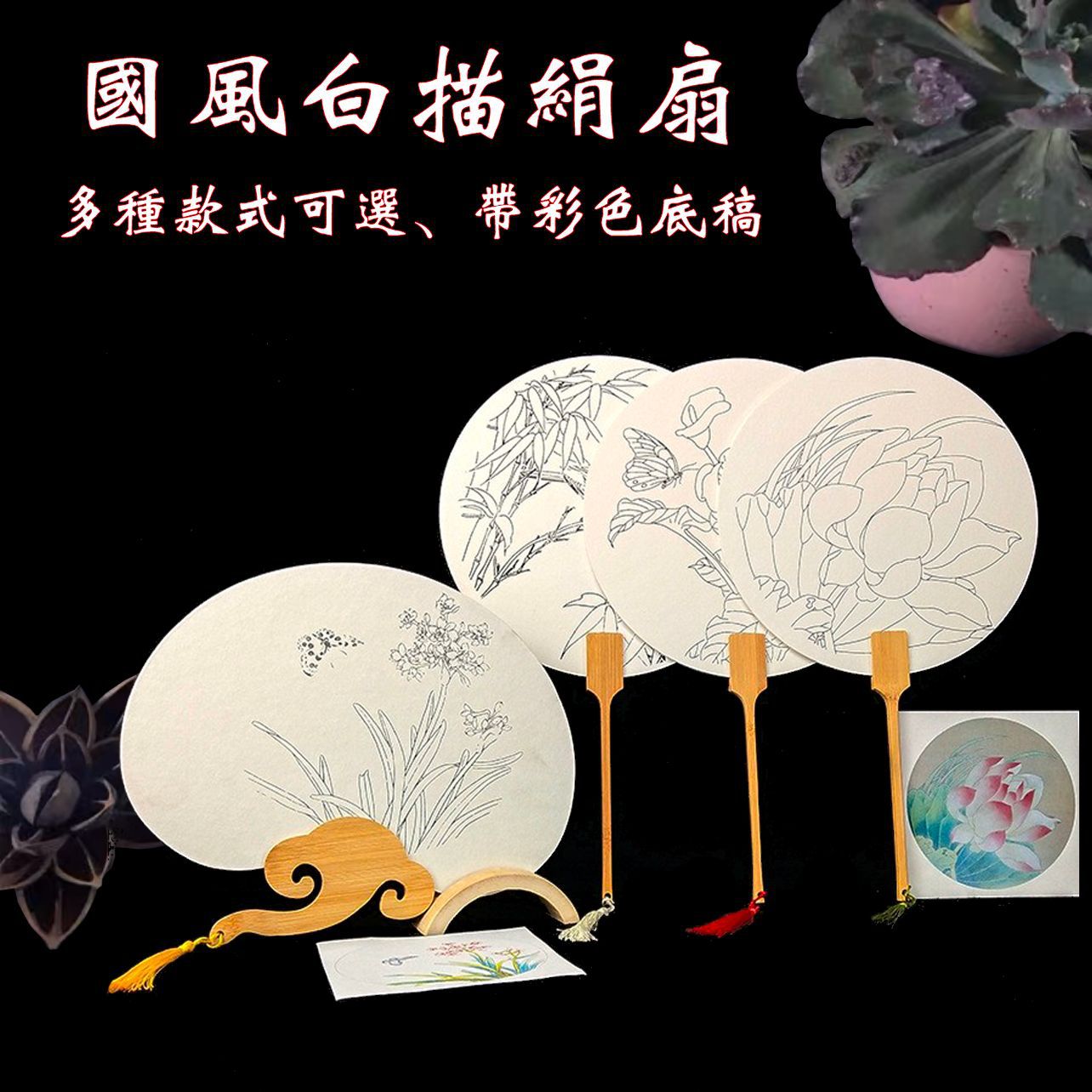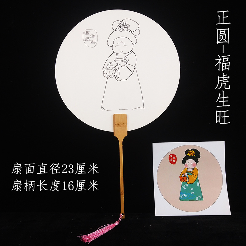 宣纸团扇白描底稿填色扇子 亲子活动儿童DIY涂鸦绘画涂色扇面批发