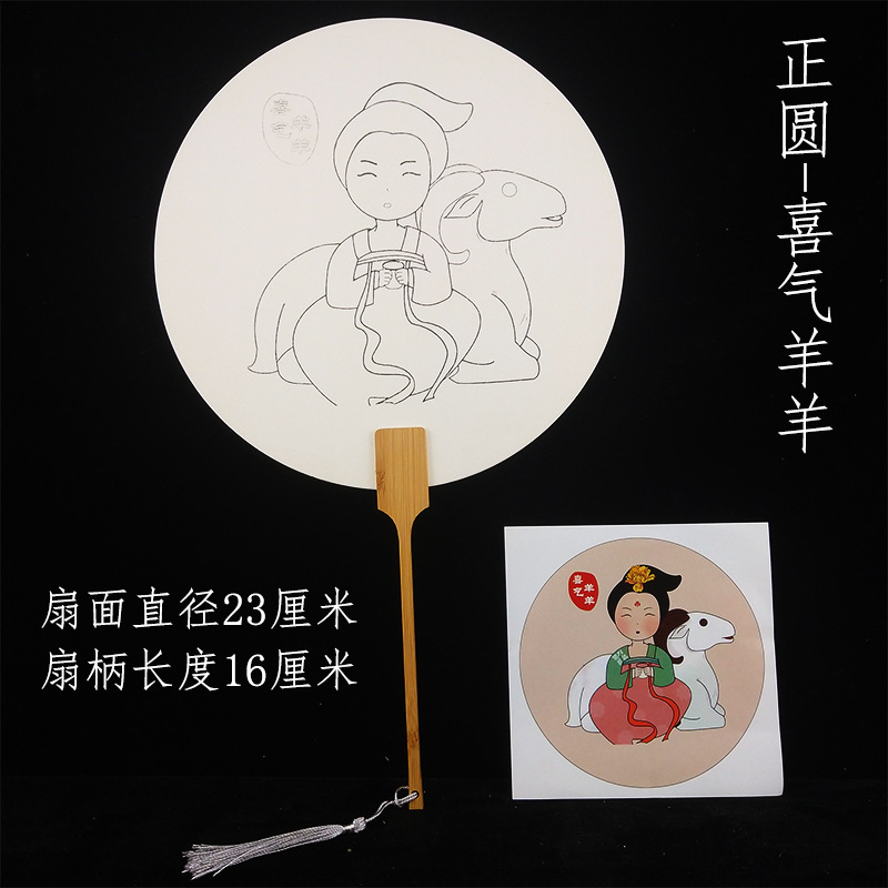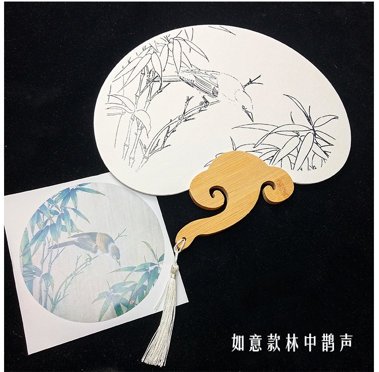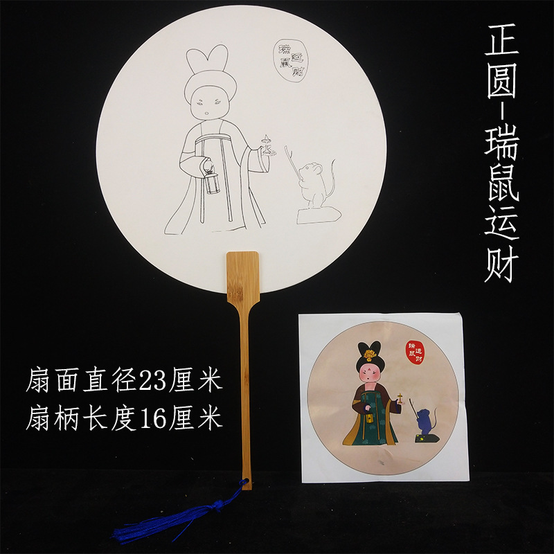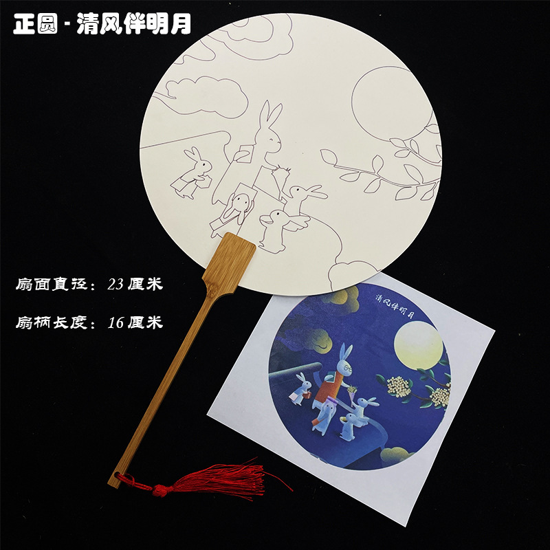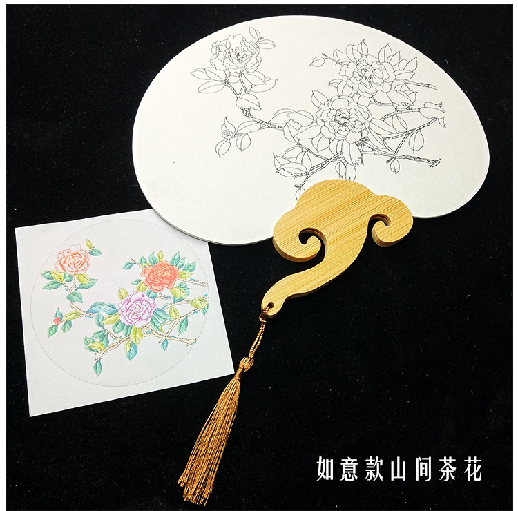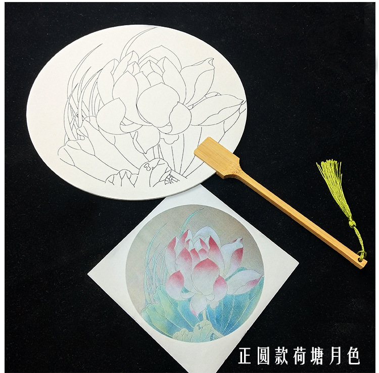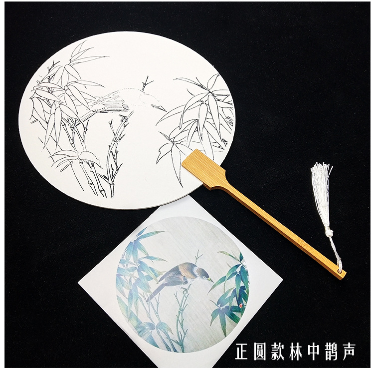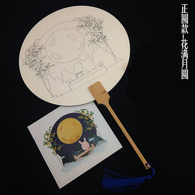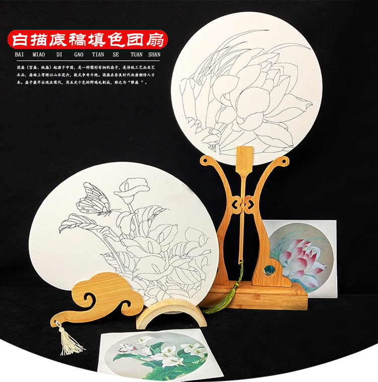 宣纸团扇白描底稿填色扇子 亲子活动儿童DIY涂鸦绘画涂色扇面批发