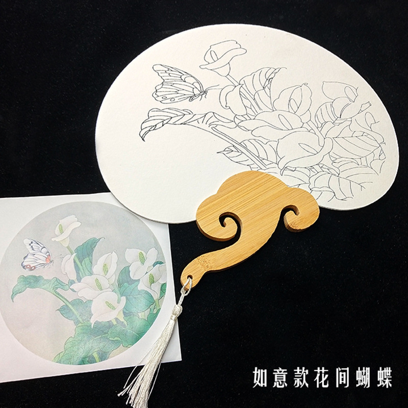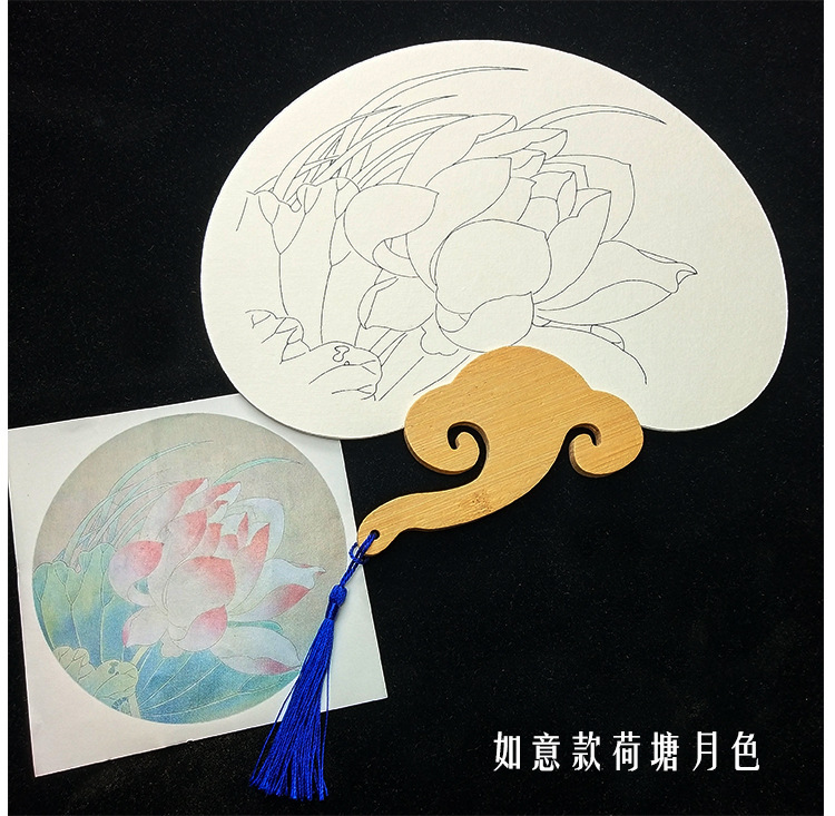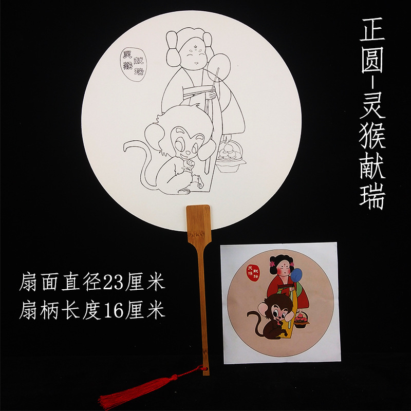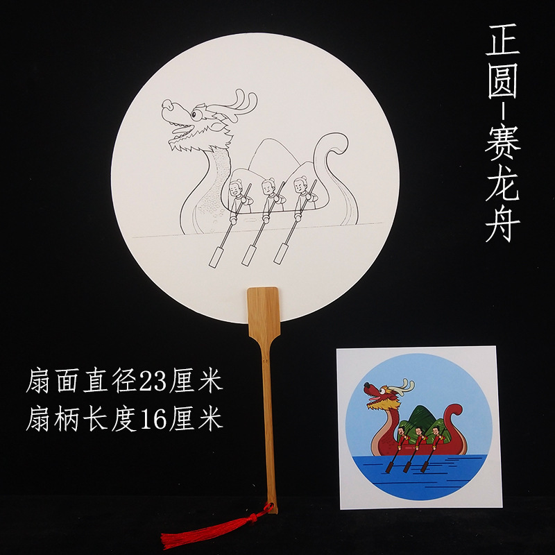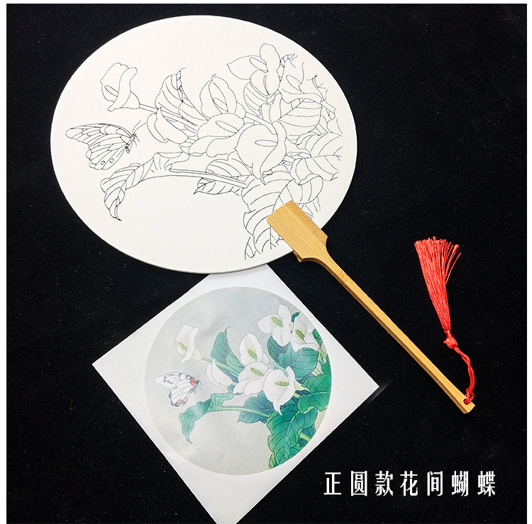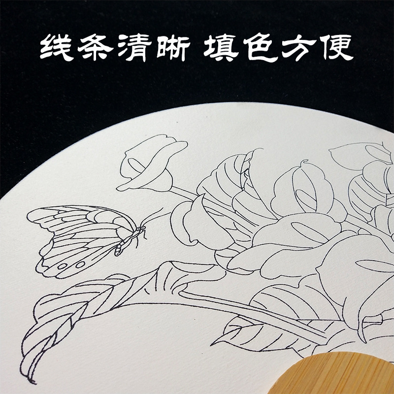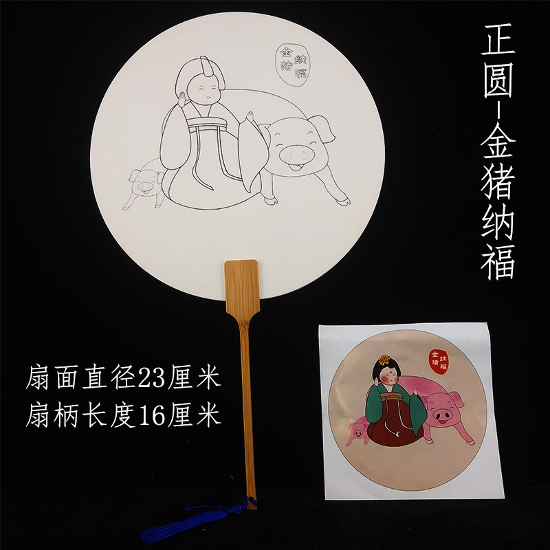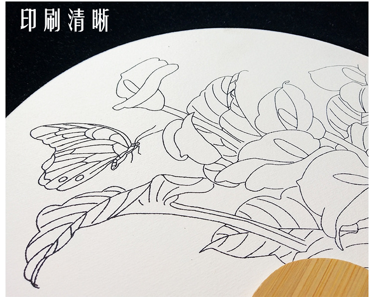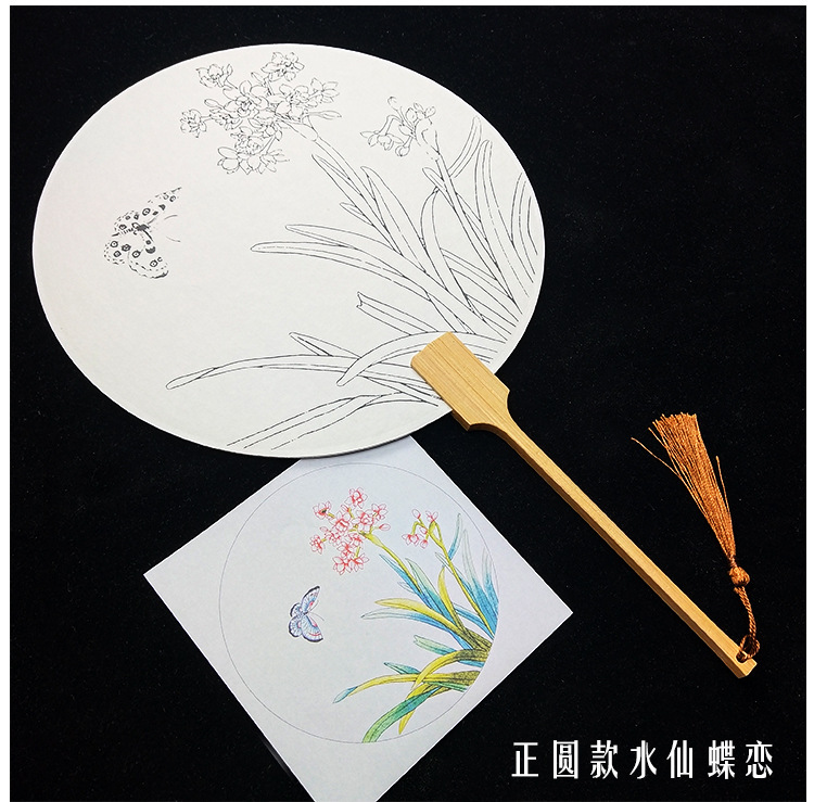 宣纸团扇白描底稿填色扇子 亲子活动儿童DIY涂鸦绘画涂色扇面批发