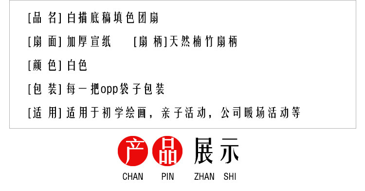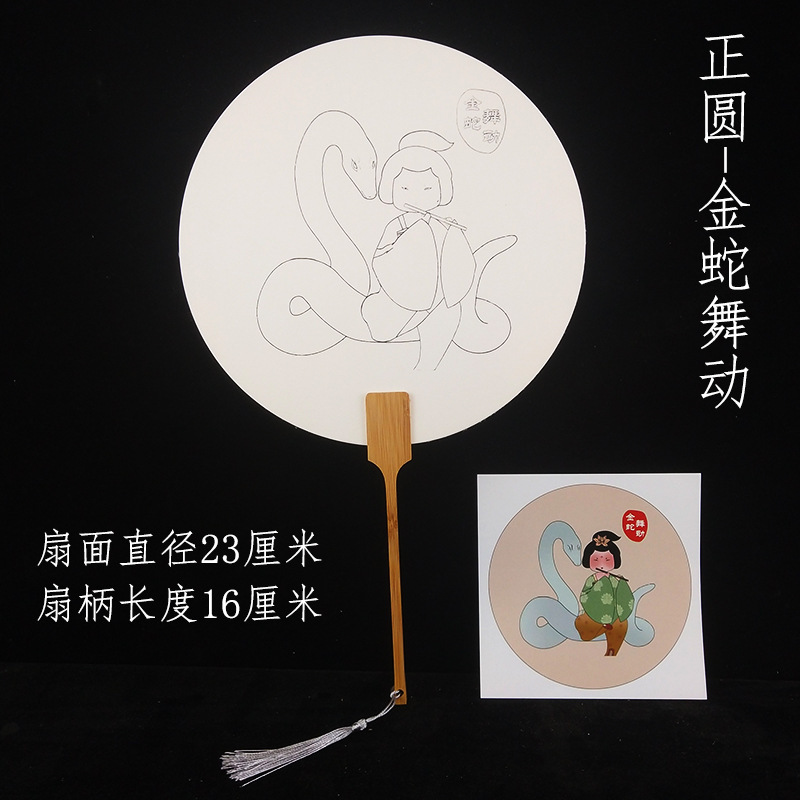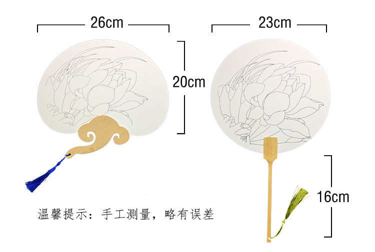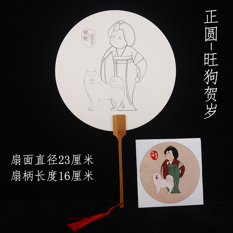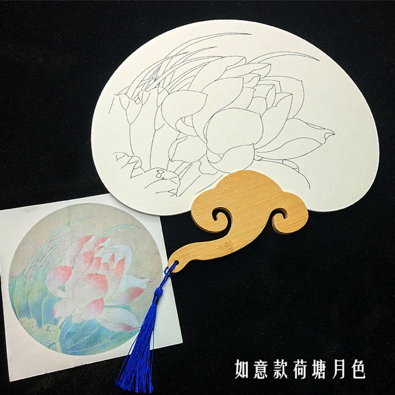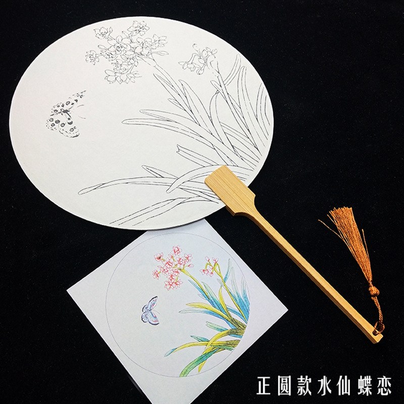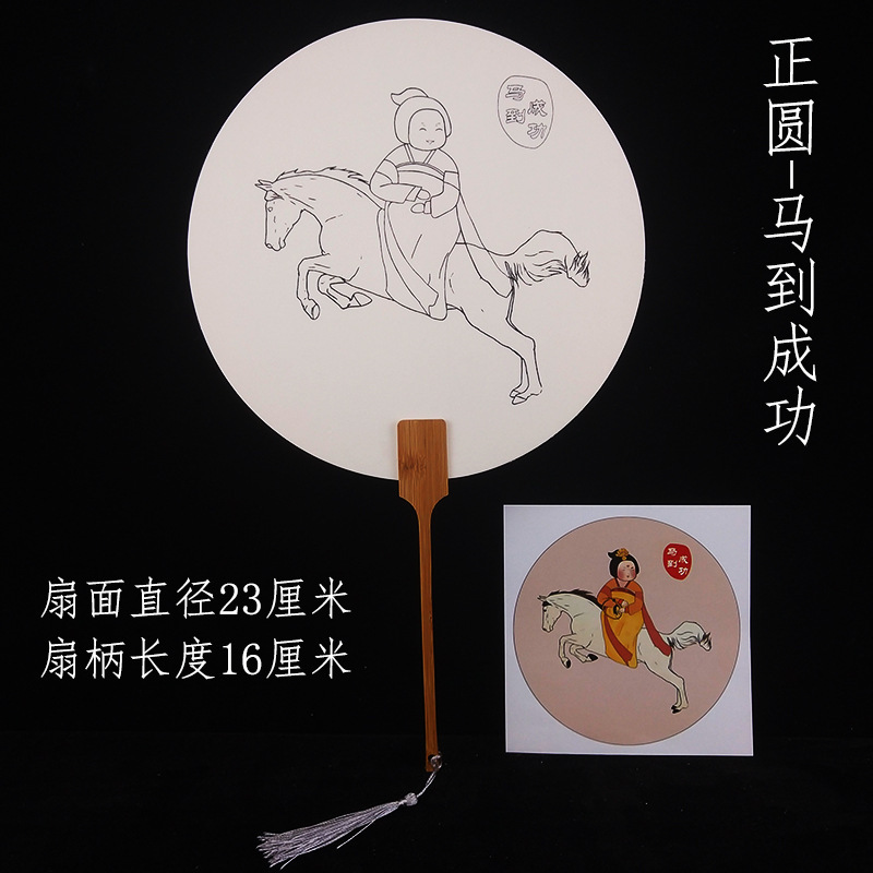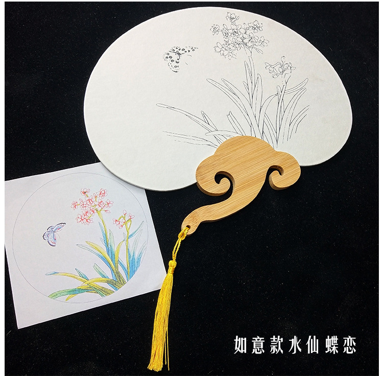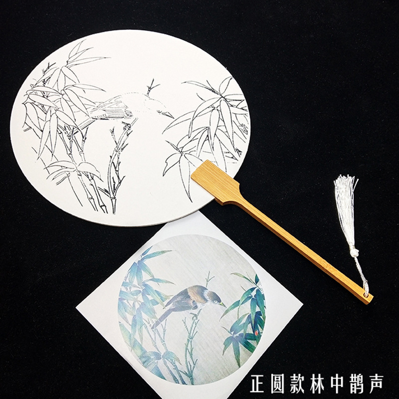 宣纸团扇白描底稿填色扇子 亲子活动儿童DIY涂鸦绘画涂色扇面批发