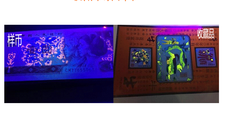 【收藏用途】主要用于鉴定观察现在比较流行的三四五版荧光纸币如:桃花红 幽灵绿 黄金甲等