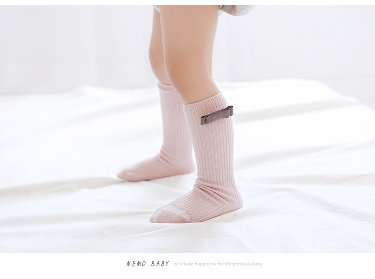 20年新款儿童袜子春秋季韩版蝴蝶结女童无跟长筒袜精梳棉宝宝袜潮