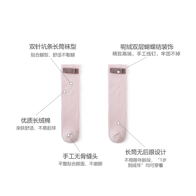 货号 A079绒布蝴蝶结中筒袜