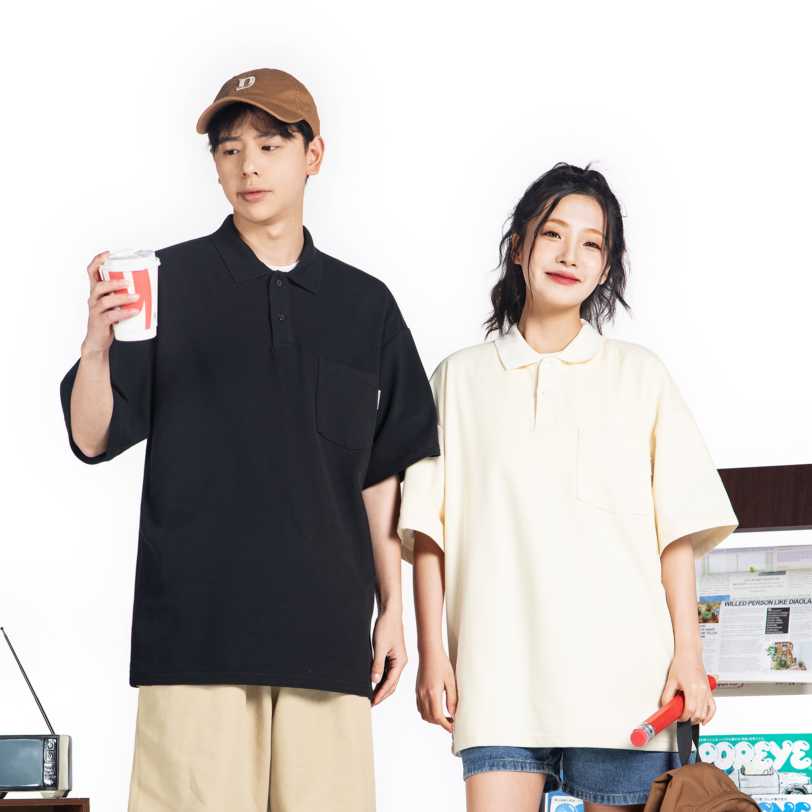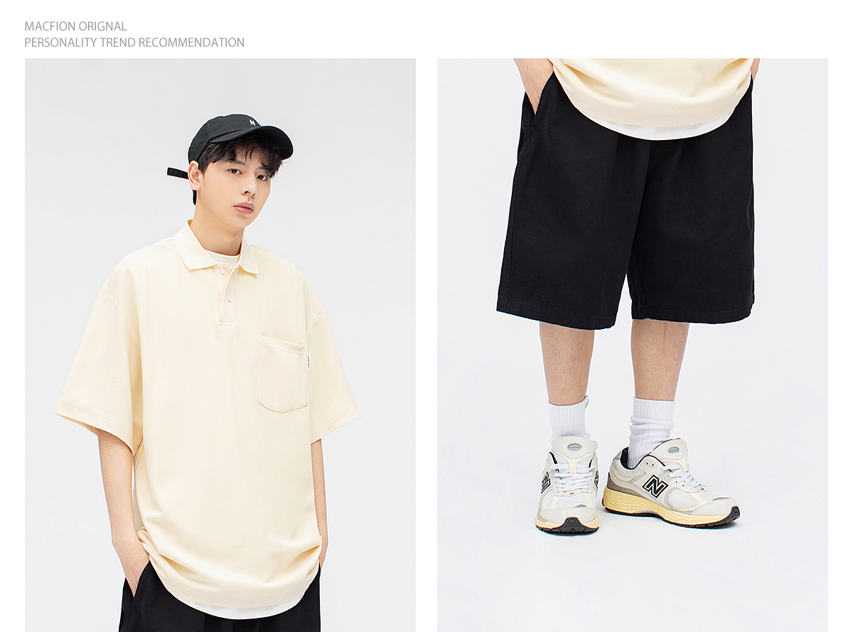 MF工作室 新款夏季CityBoy日系寬鬆廓形休閒polo衫短袖T恤情侶