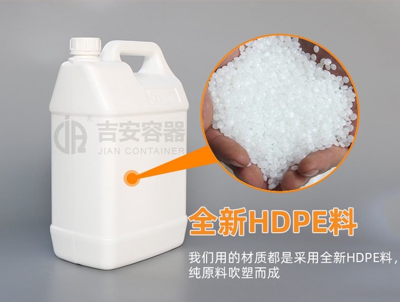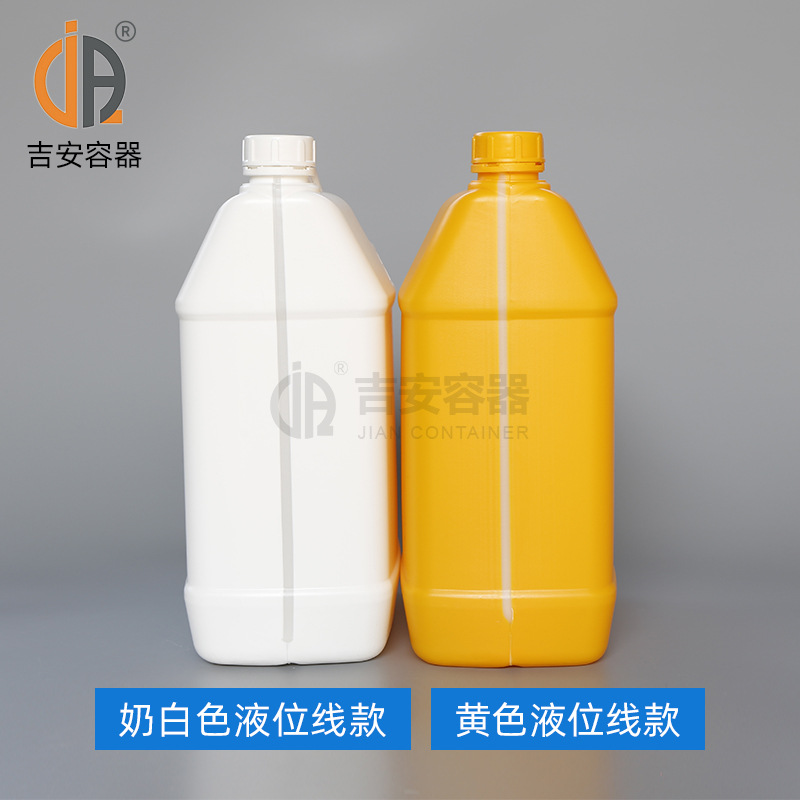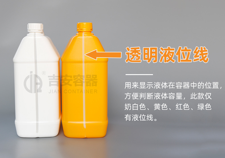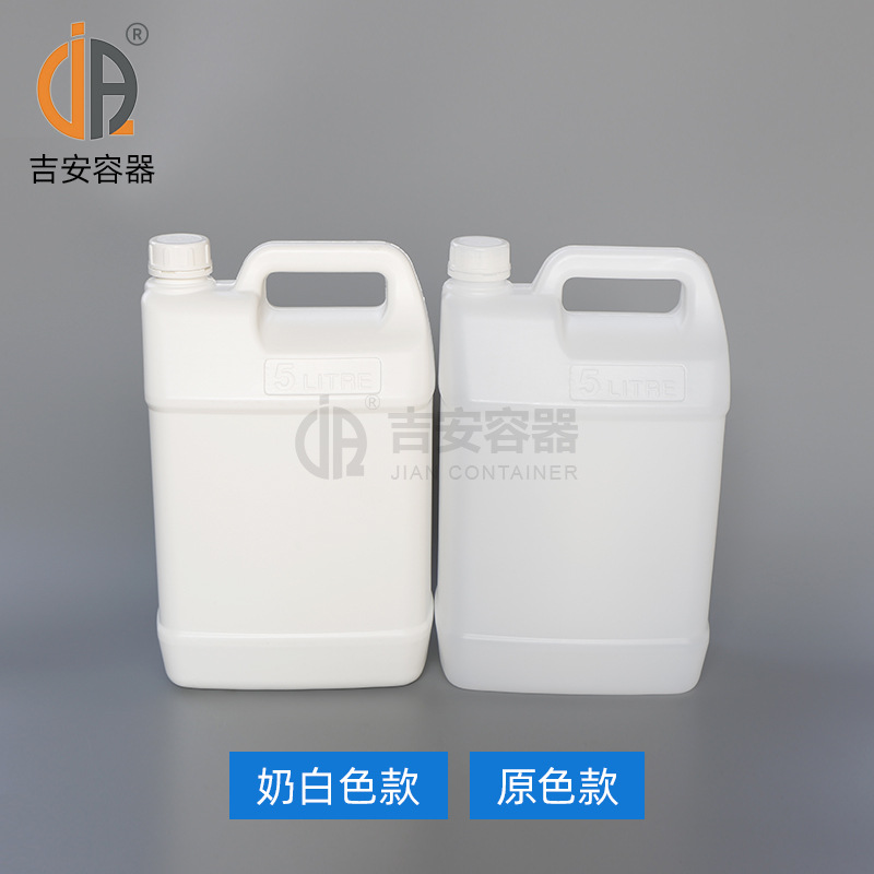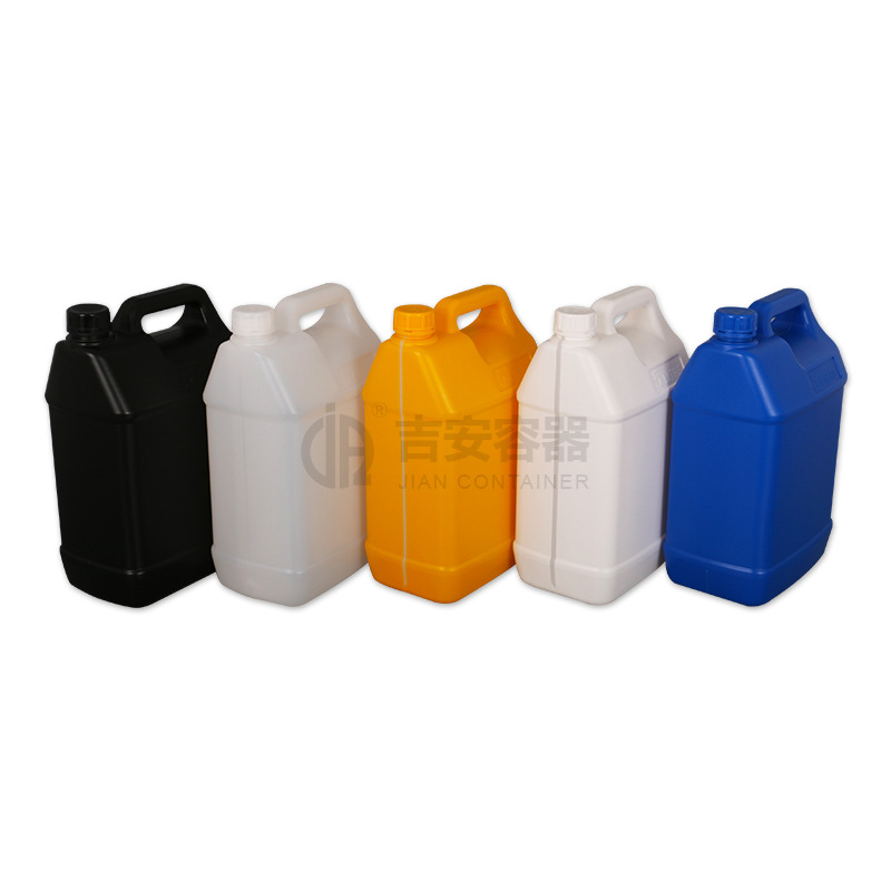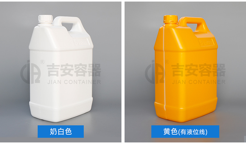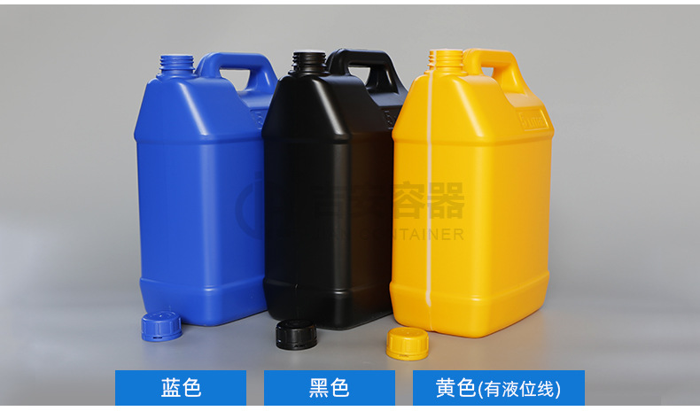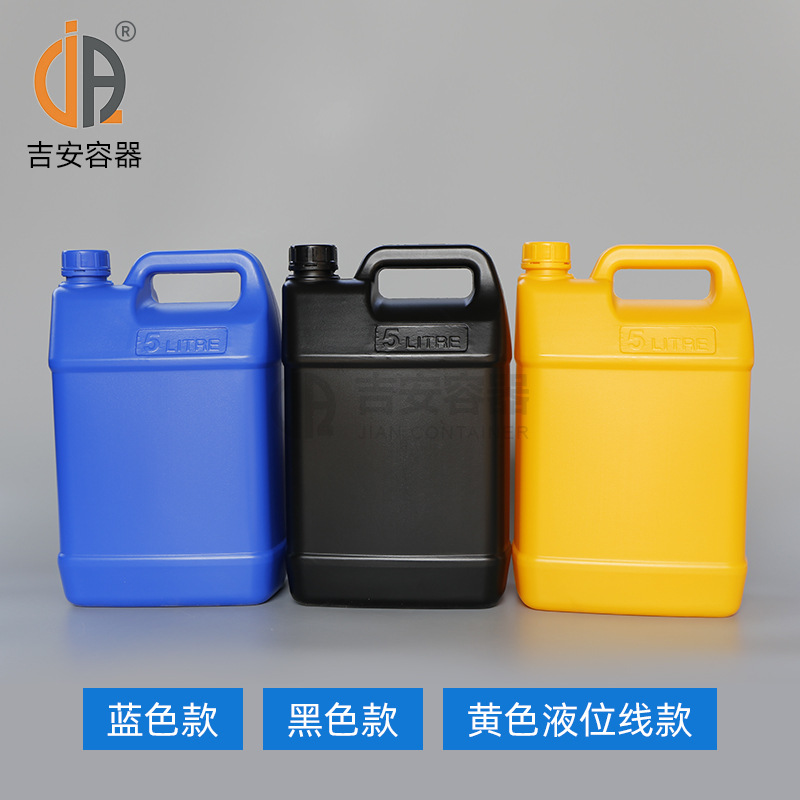 吉安容器批发 化工桶黑白蓝5升化工扁罐5L塑料方形桶带液位线扁壶