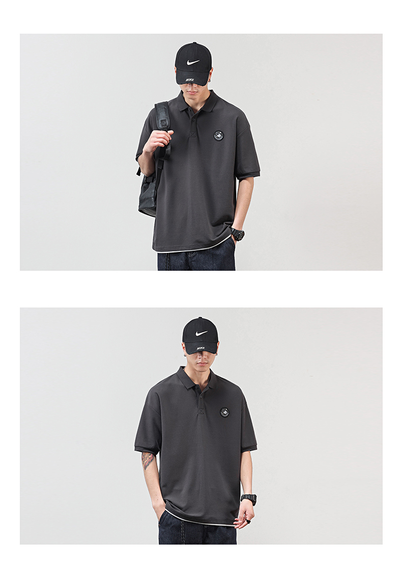 GTRG夏季新款男士polo短袖230克重磅ins潮流個性純色中袖