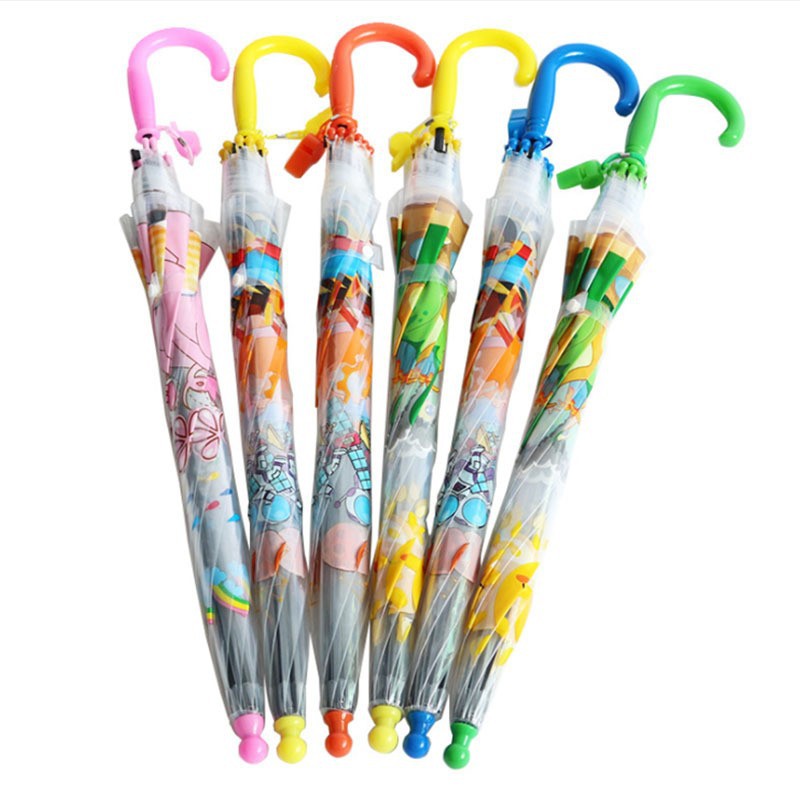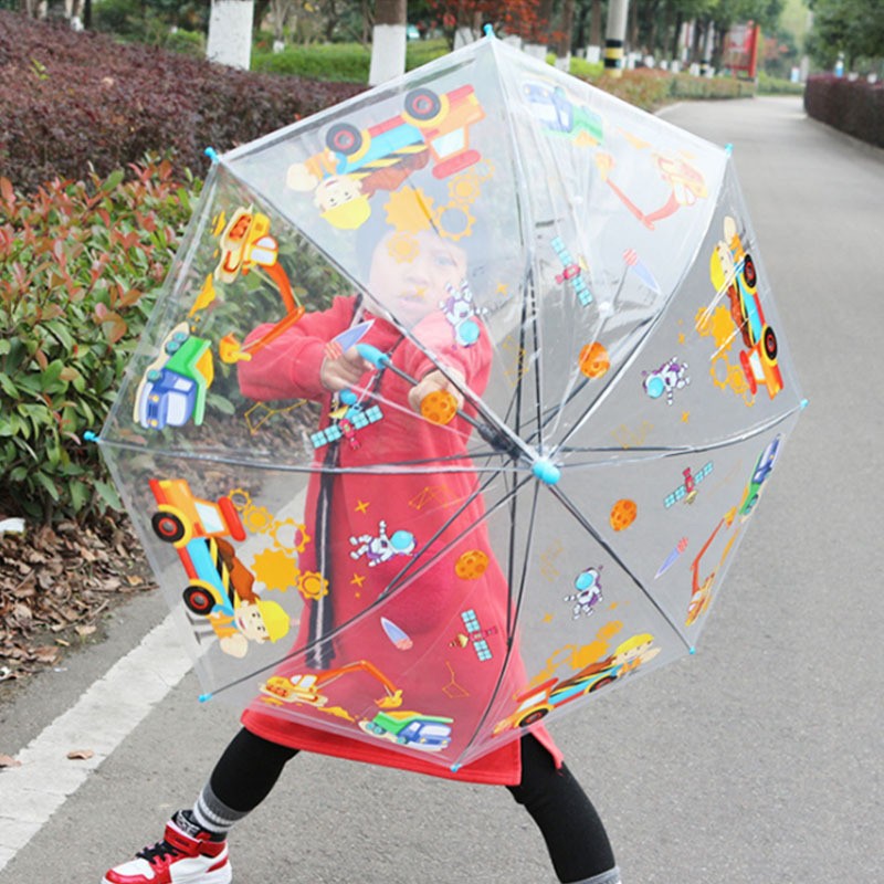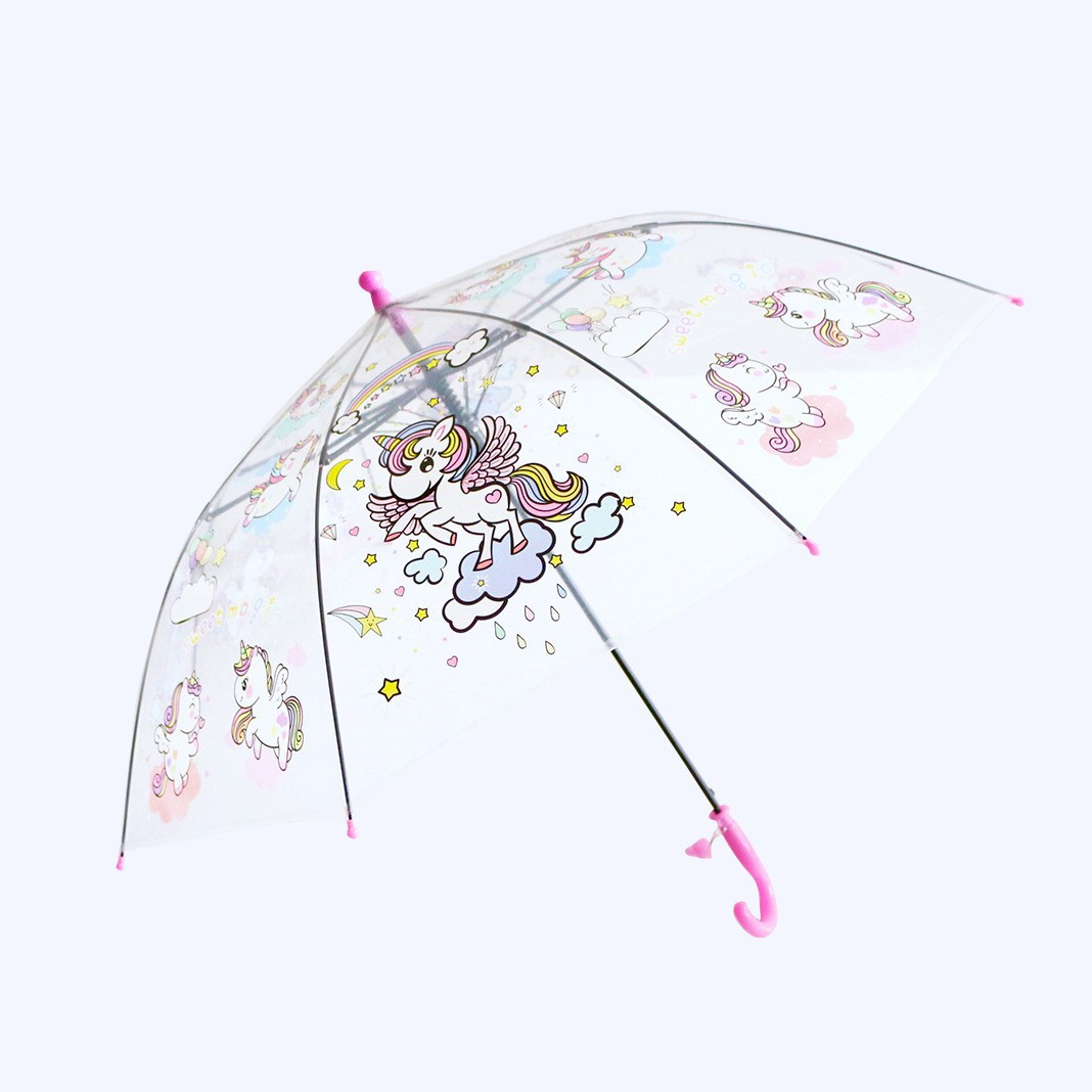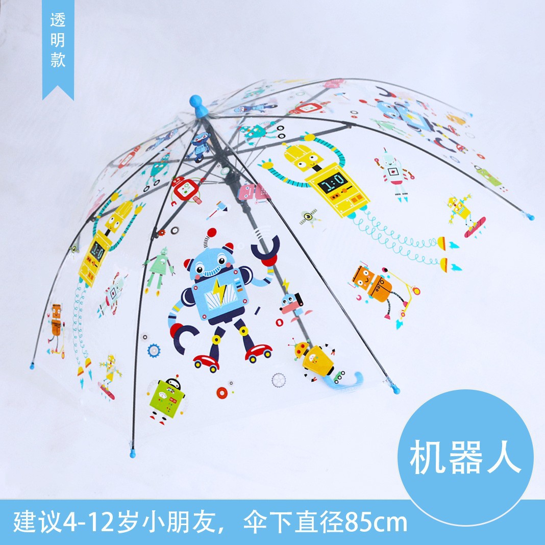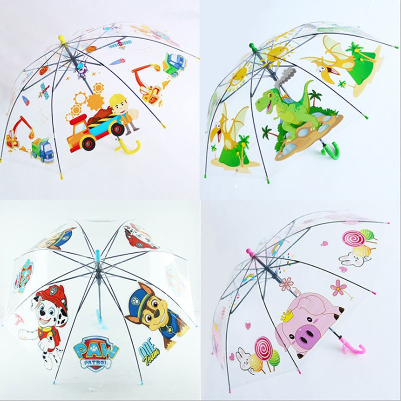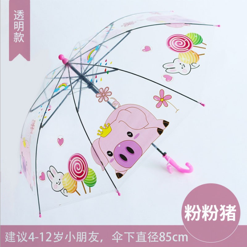 厂价直销POE 19寸儿童透明伞卡通长柄雨伞加印logo 广告透明雨伞