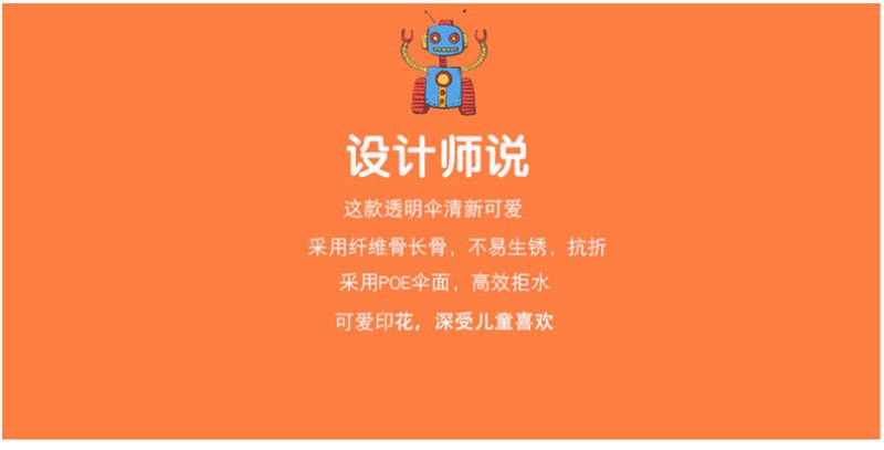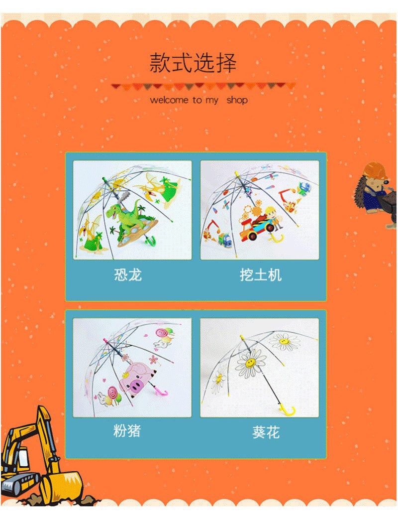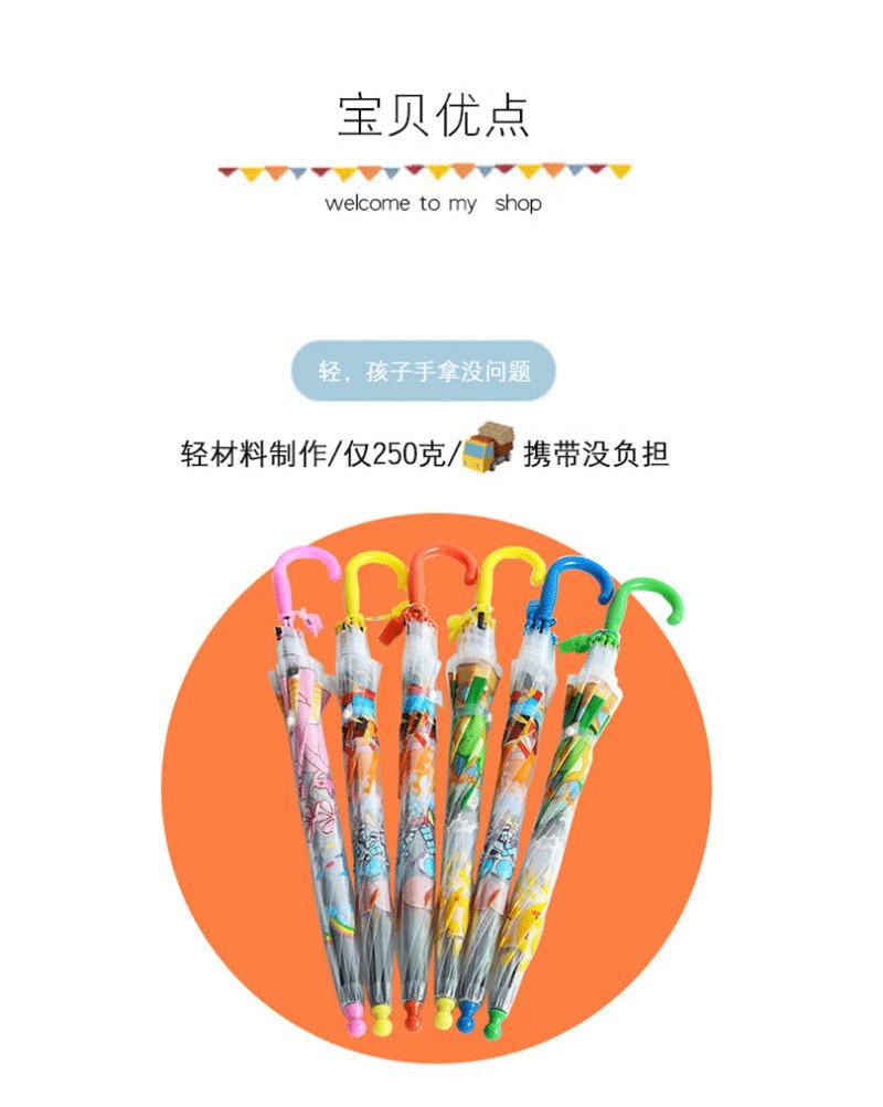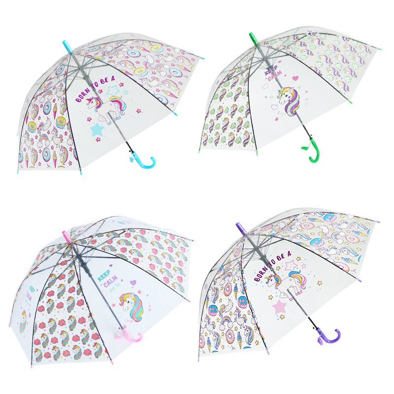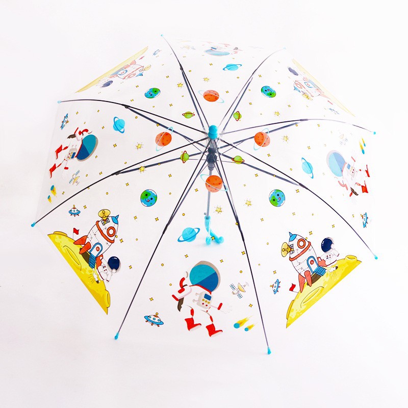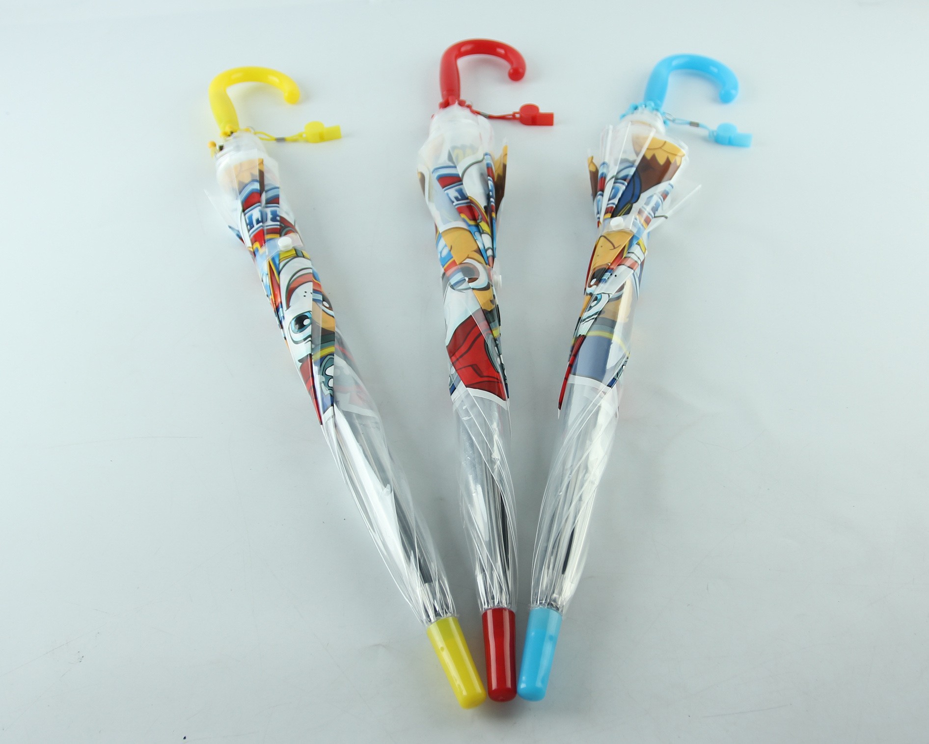 厂价直销POE 19寸儿童透明伞卡通长柄雨伞加印logo 广告透明雨伞