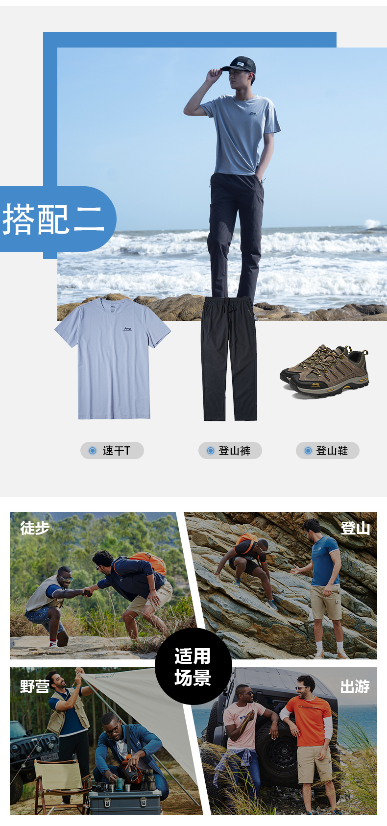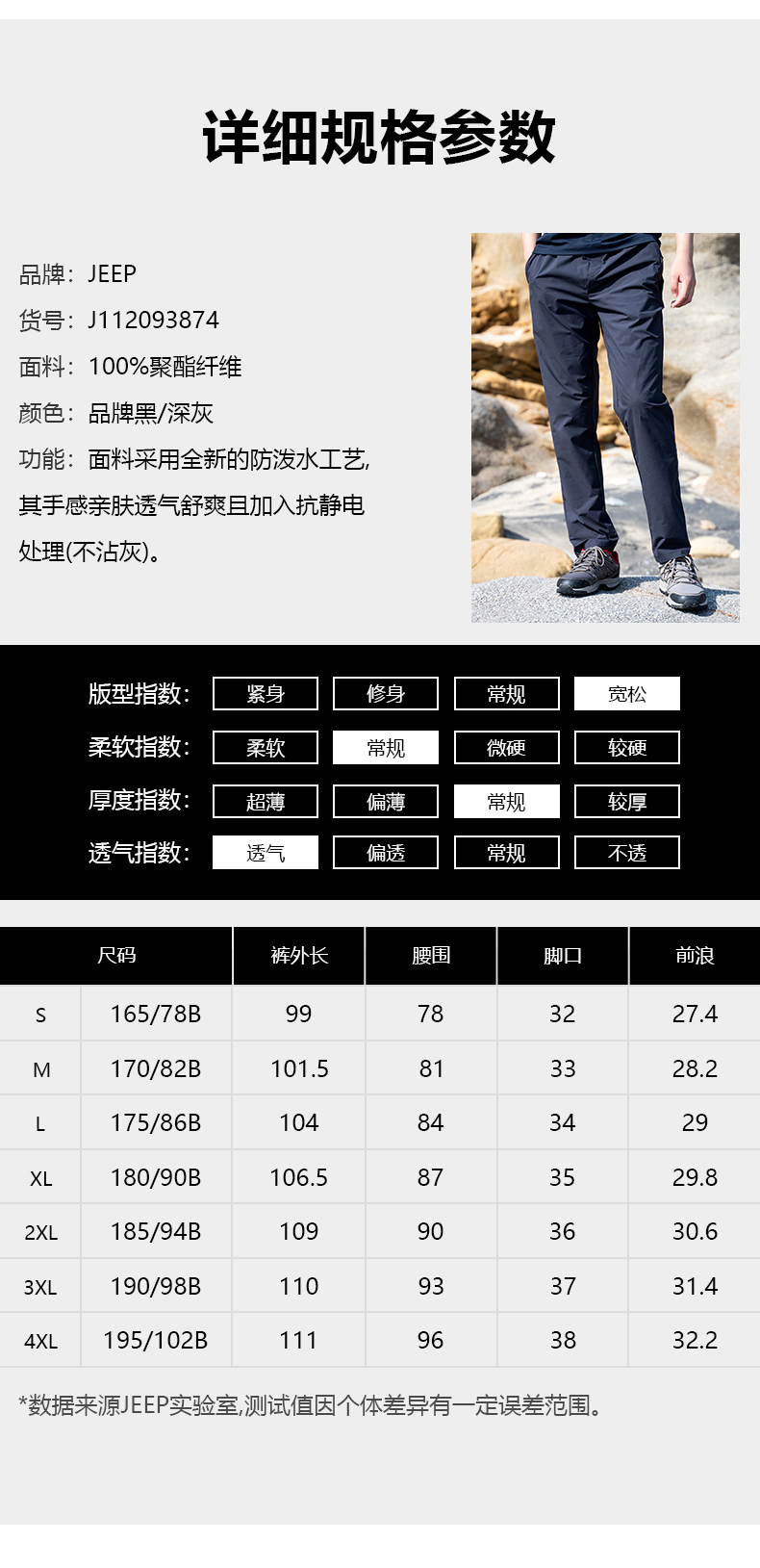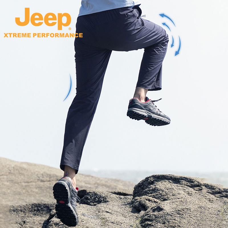 Jeep吉普官方新款透氣速乾褲男戶外吸濕排汗徒步褲防吸水子彈力運動褲