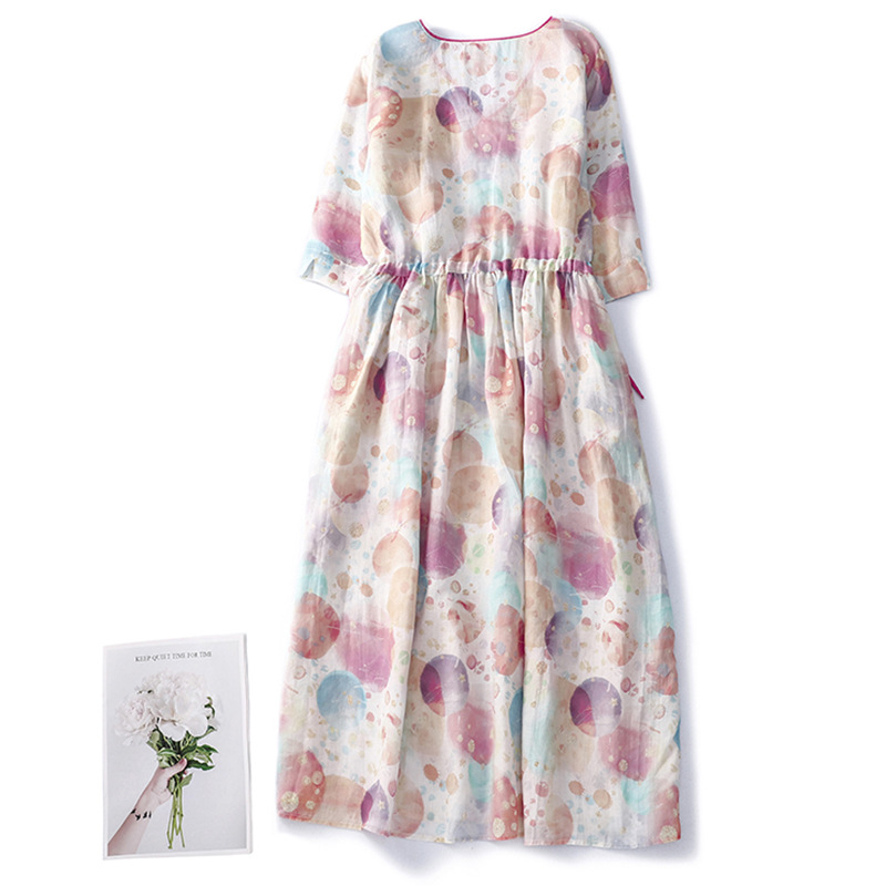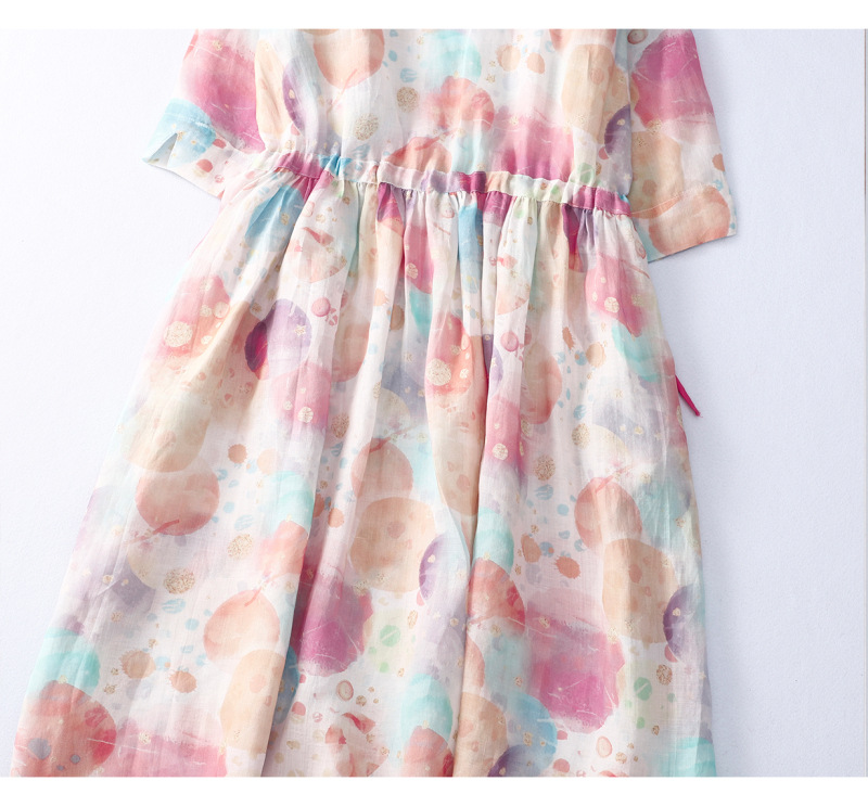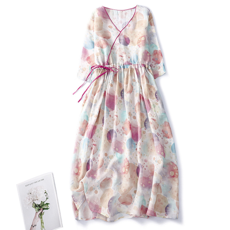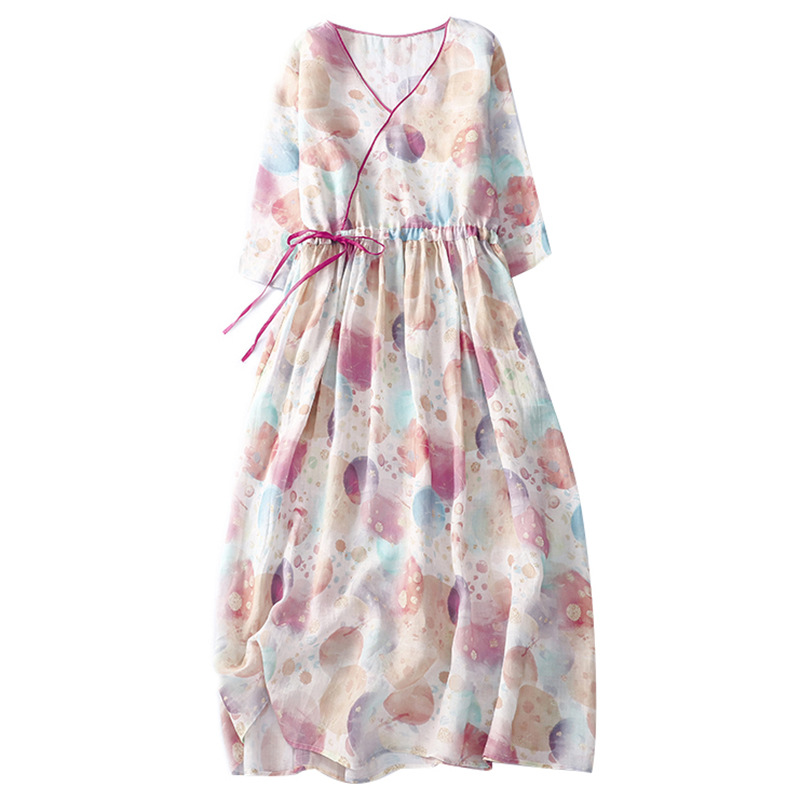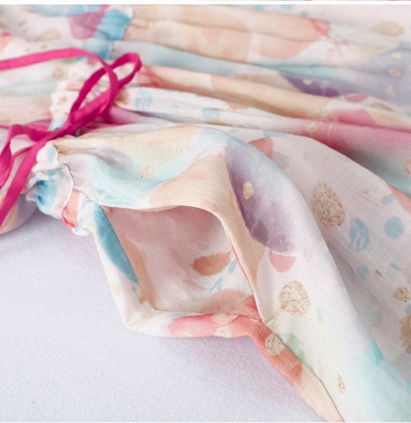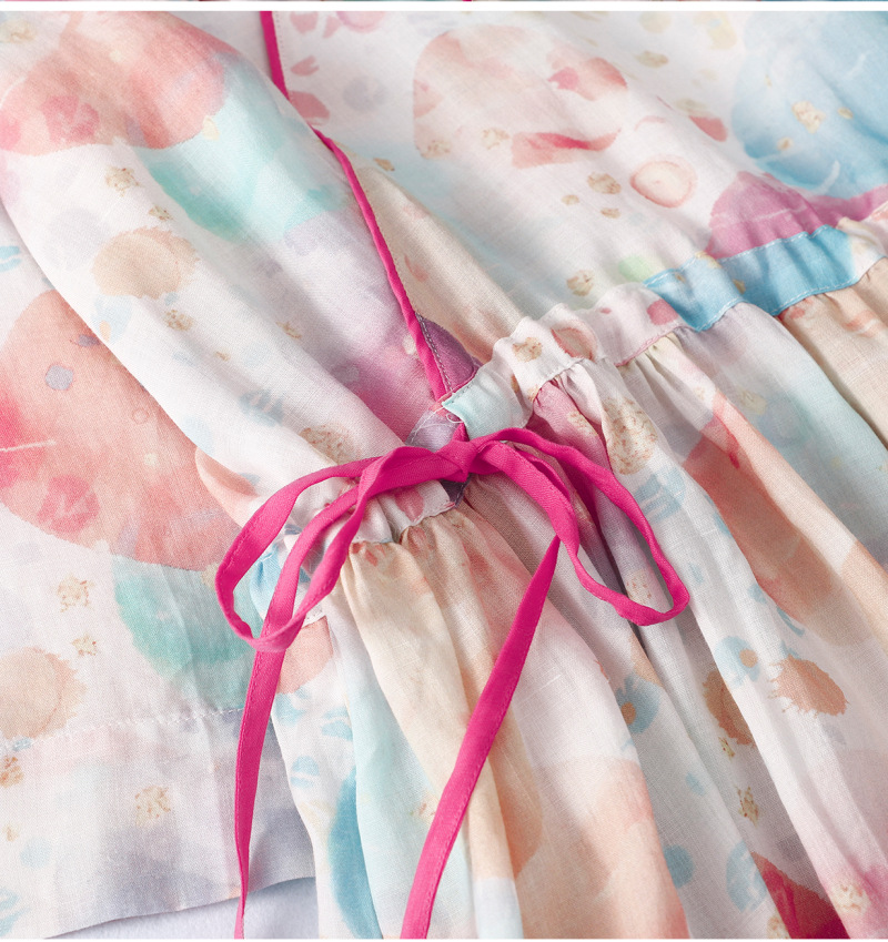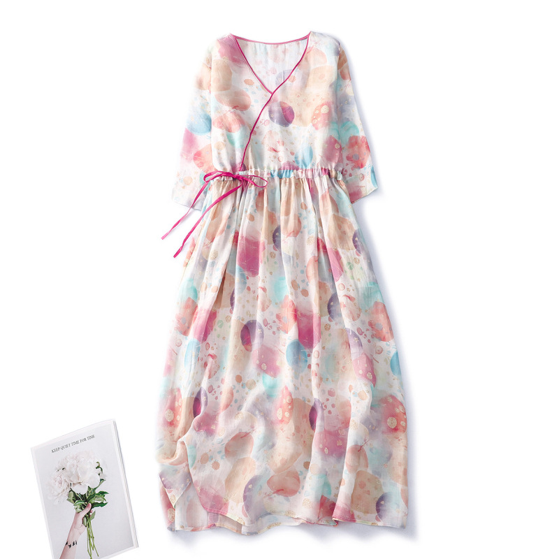 2023夏新款实拍棉麻印花文艺复古袍子收腰系带显瘦碎花大摆连衣裙
