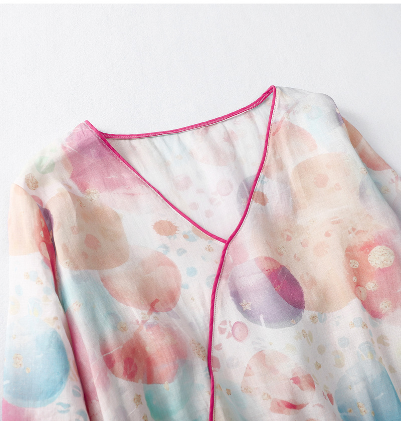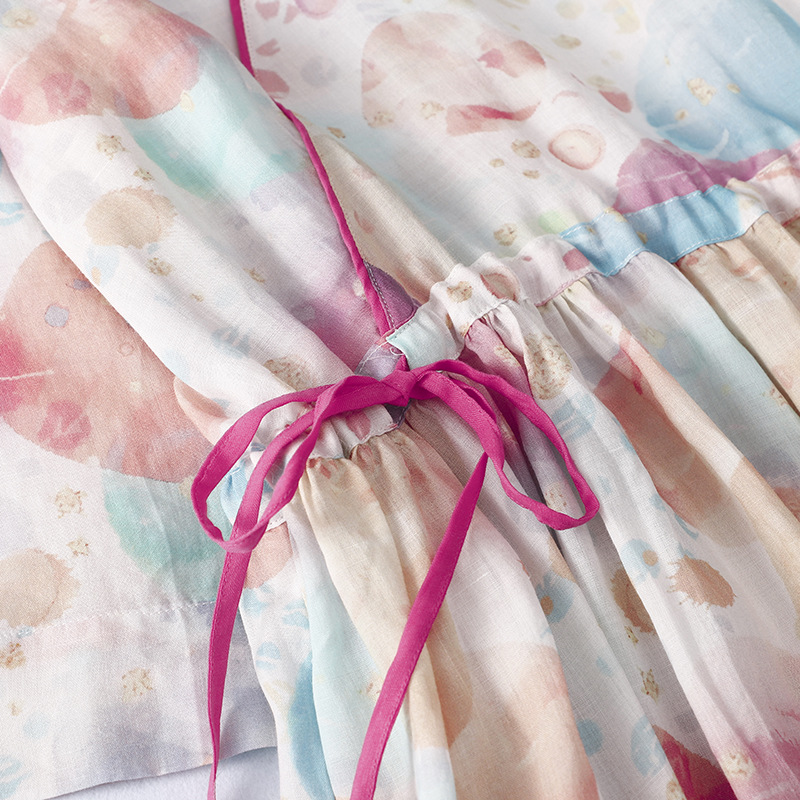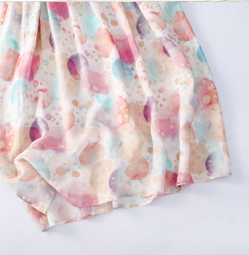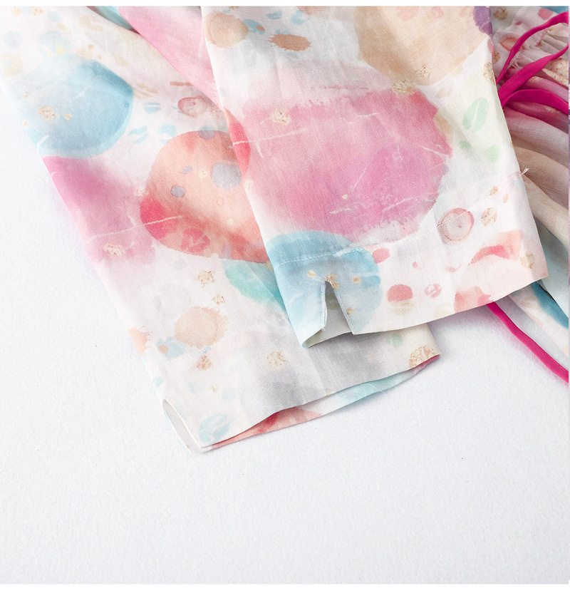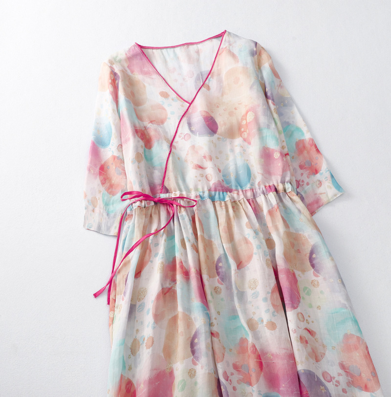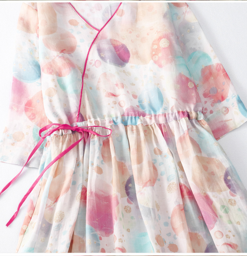 2023夏新款实拍棉麻印花文艺复古袍子收腰系带显瘦碎花大摆连衣裙