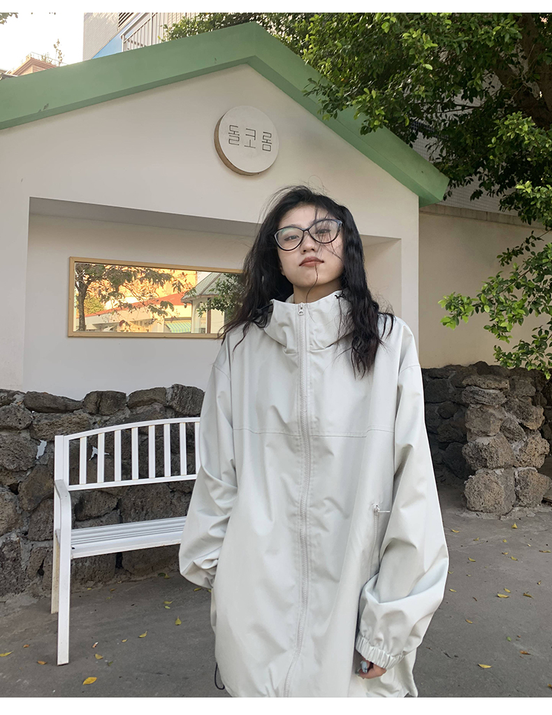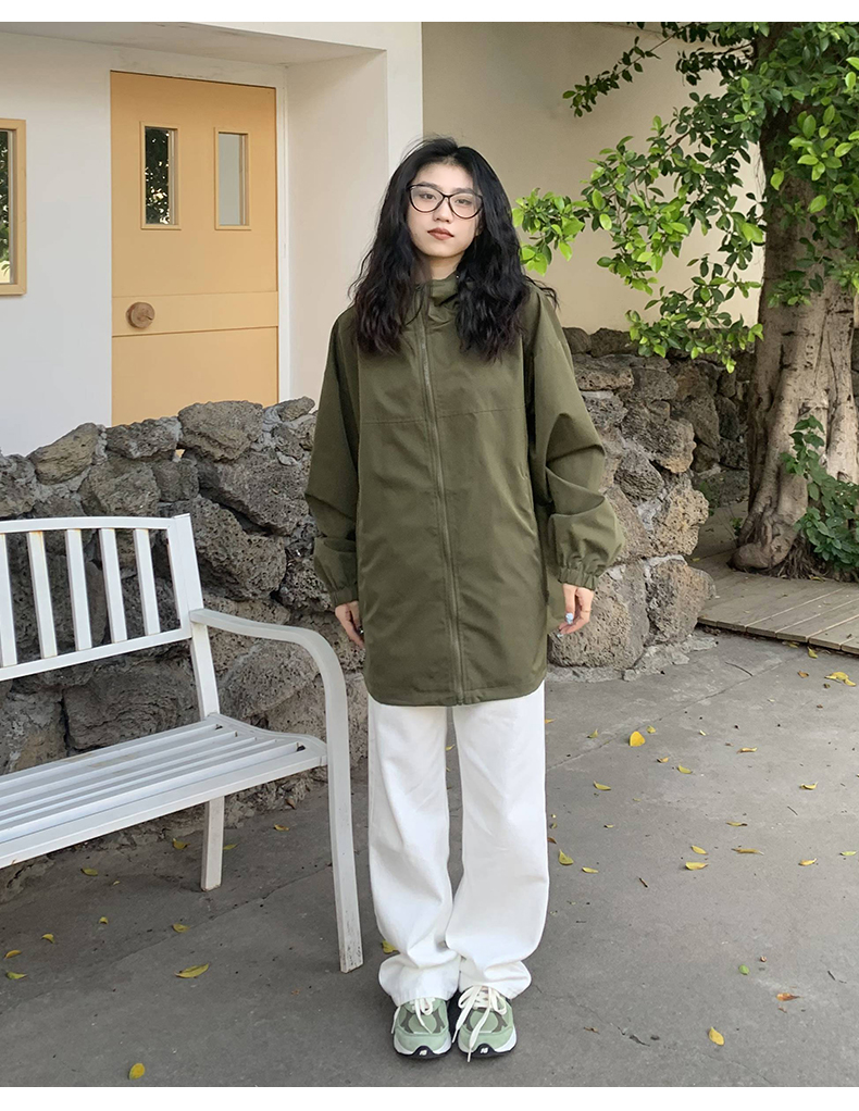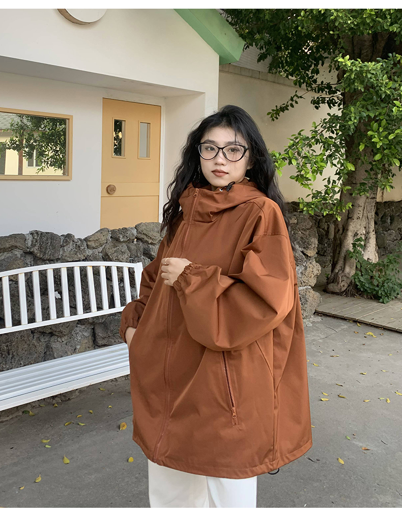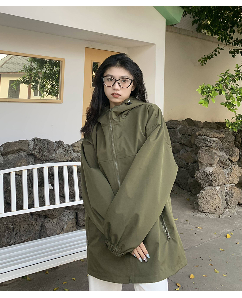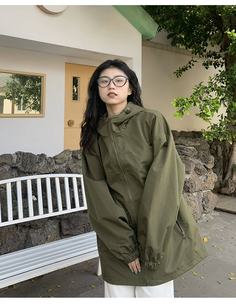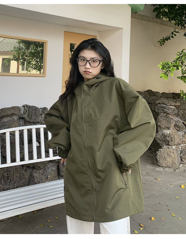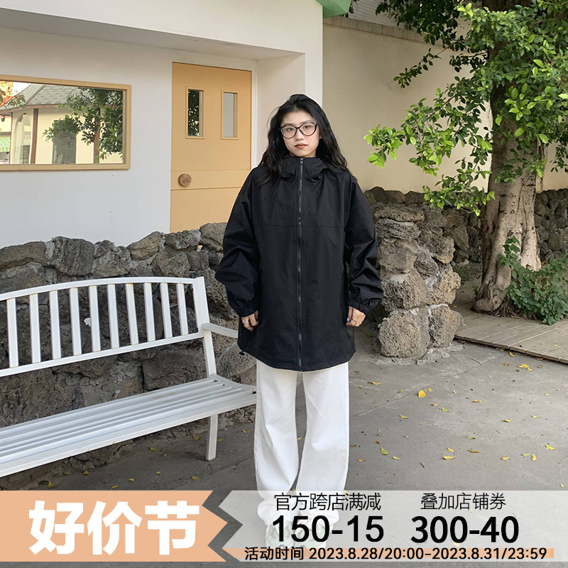 橘子樹在哪兒中長版連帽衝鋒衣外套女春秋寬鬆防風山系連帽外衣潮