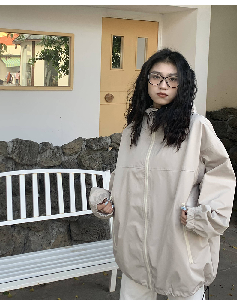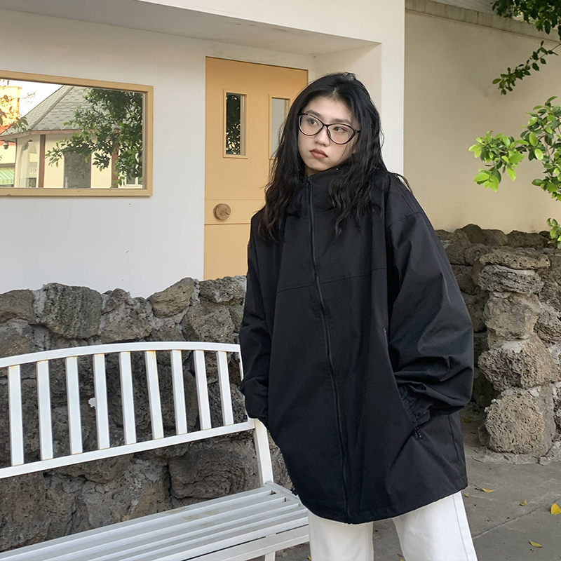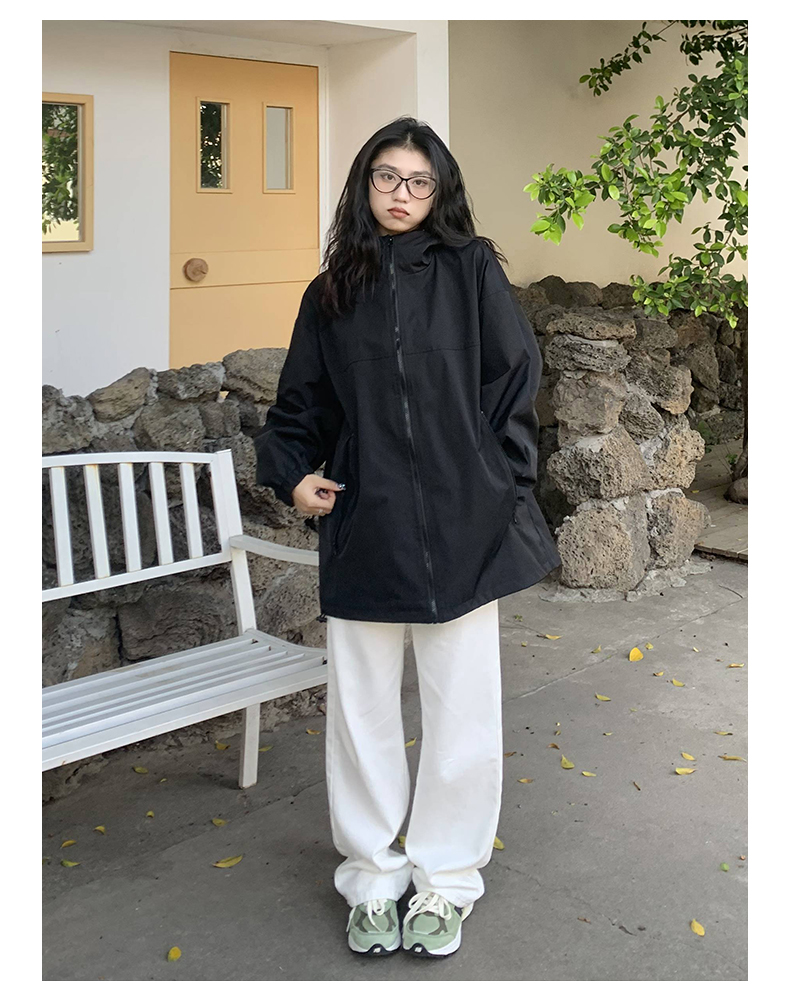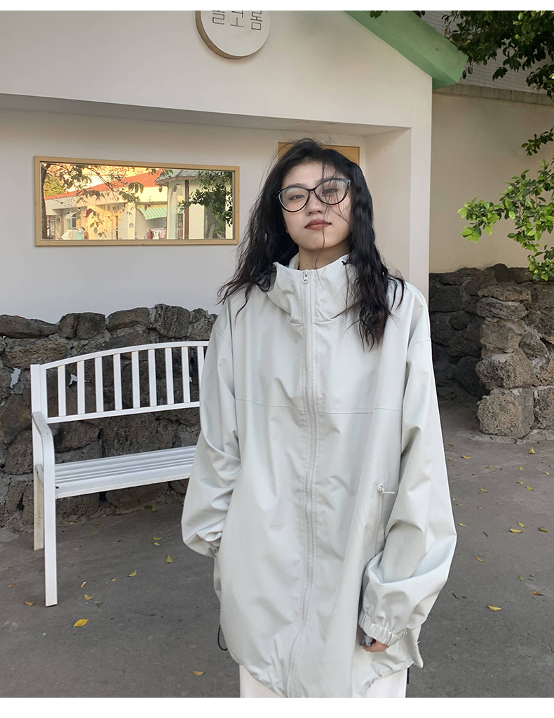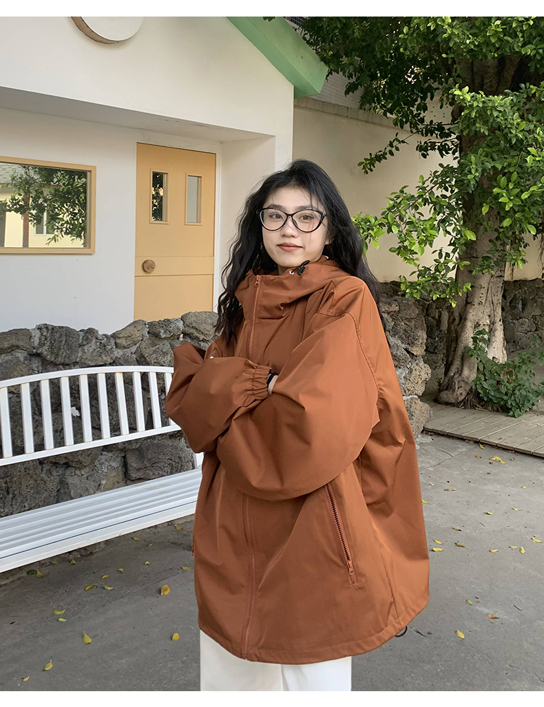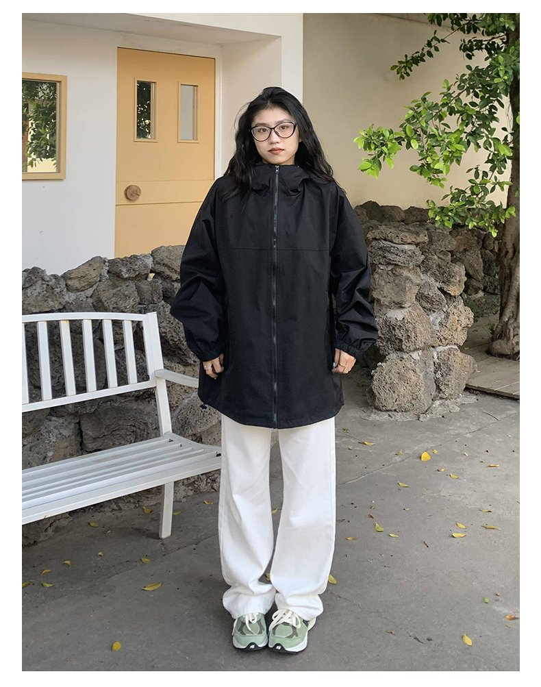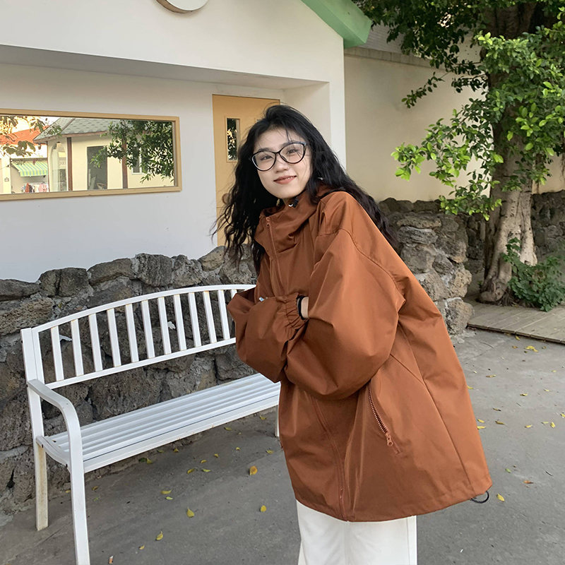 橘子樹在哪兒中長版連帽衝鋒衣外套女春秋寬鬆防風山系連帽外衣潮