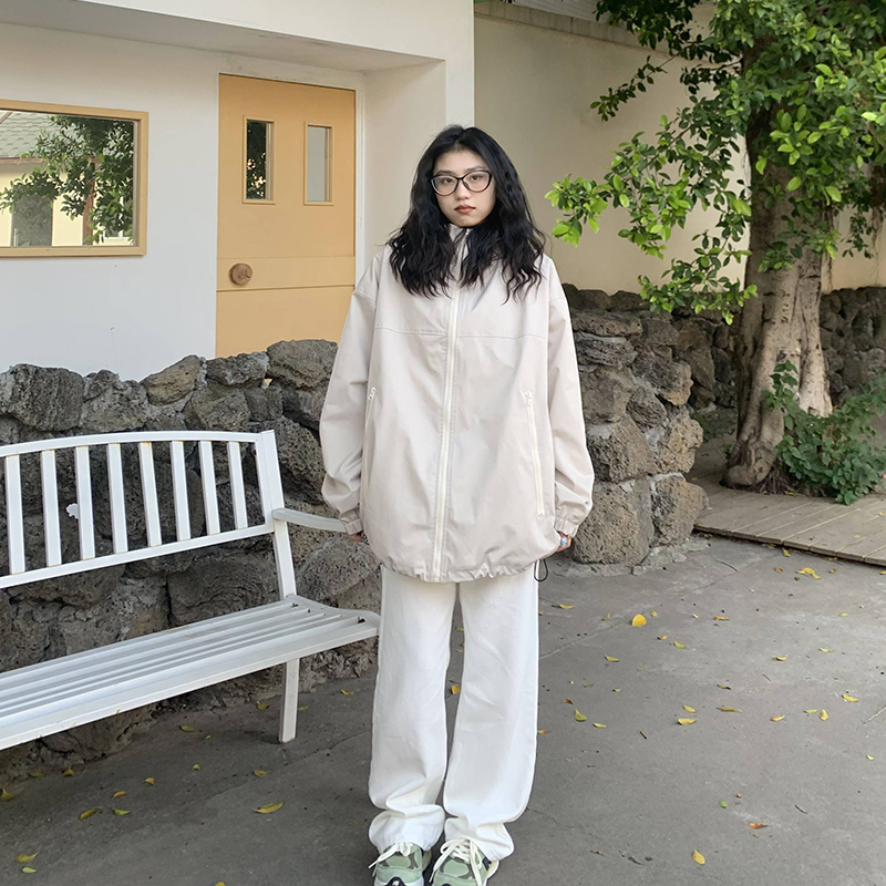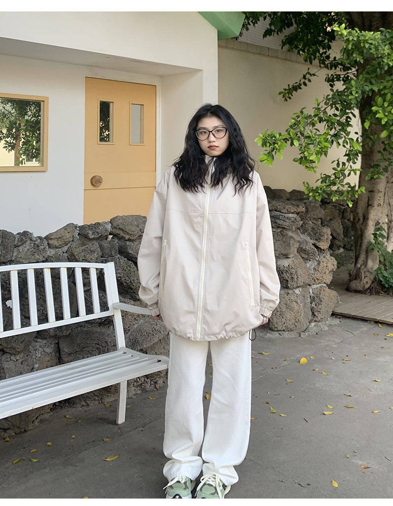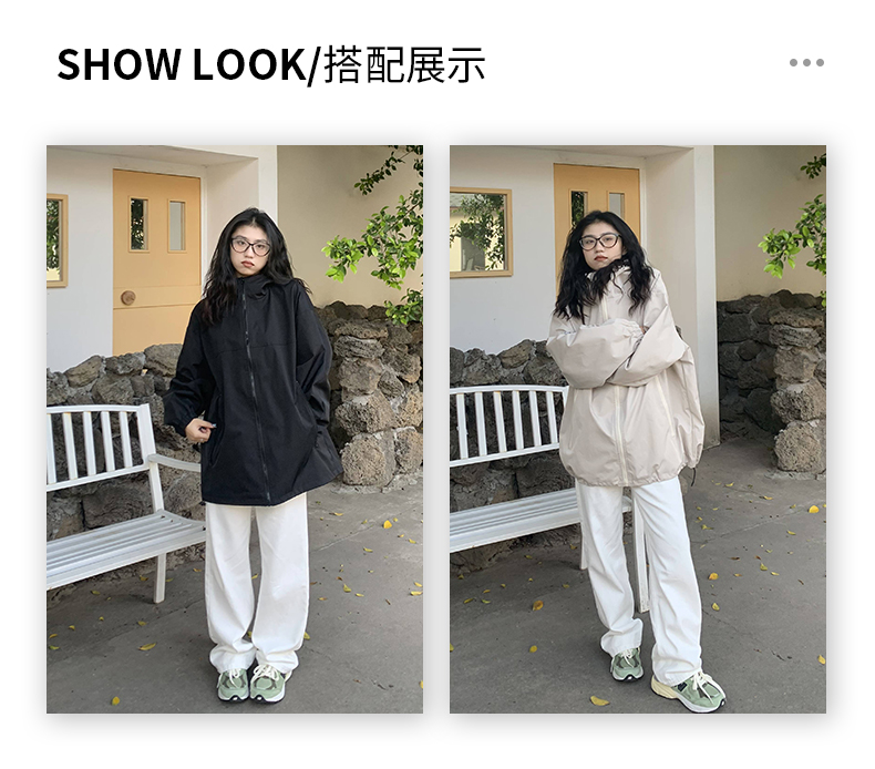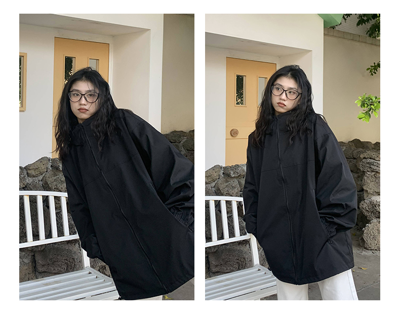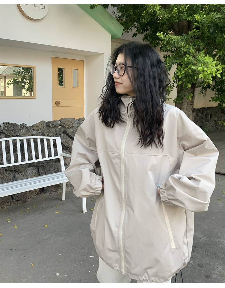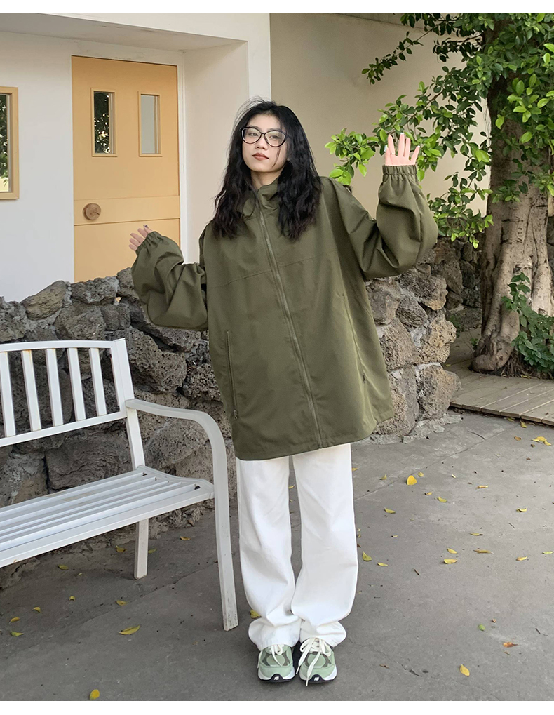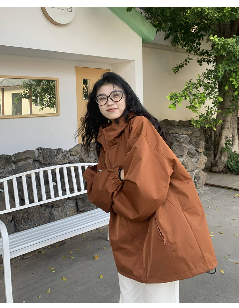 橘子樹在哪兒中長版連帽衝鋒衣外套女春秋寬鬆防風山系連帽外衣潮