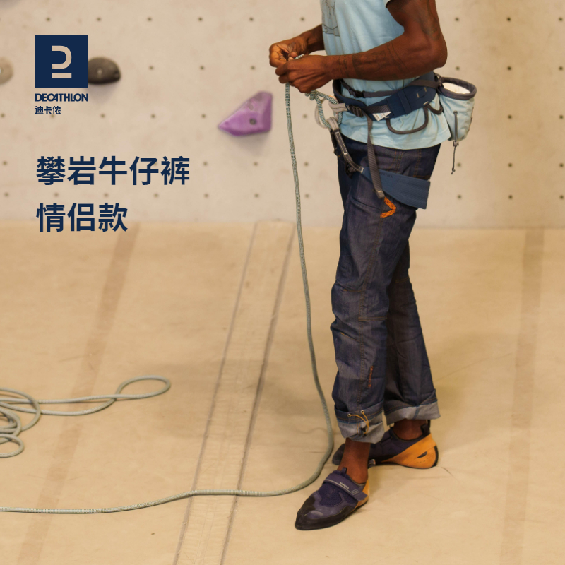 迪卡儂攀巖牛仔褲Simond戶外褲牛仔男女彈性城市旅行運動褲OVC1