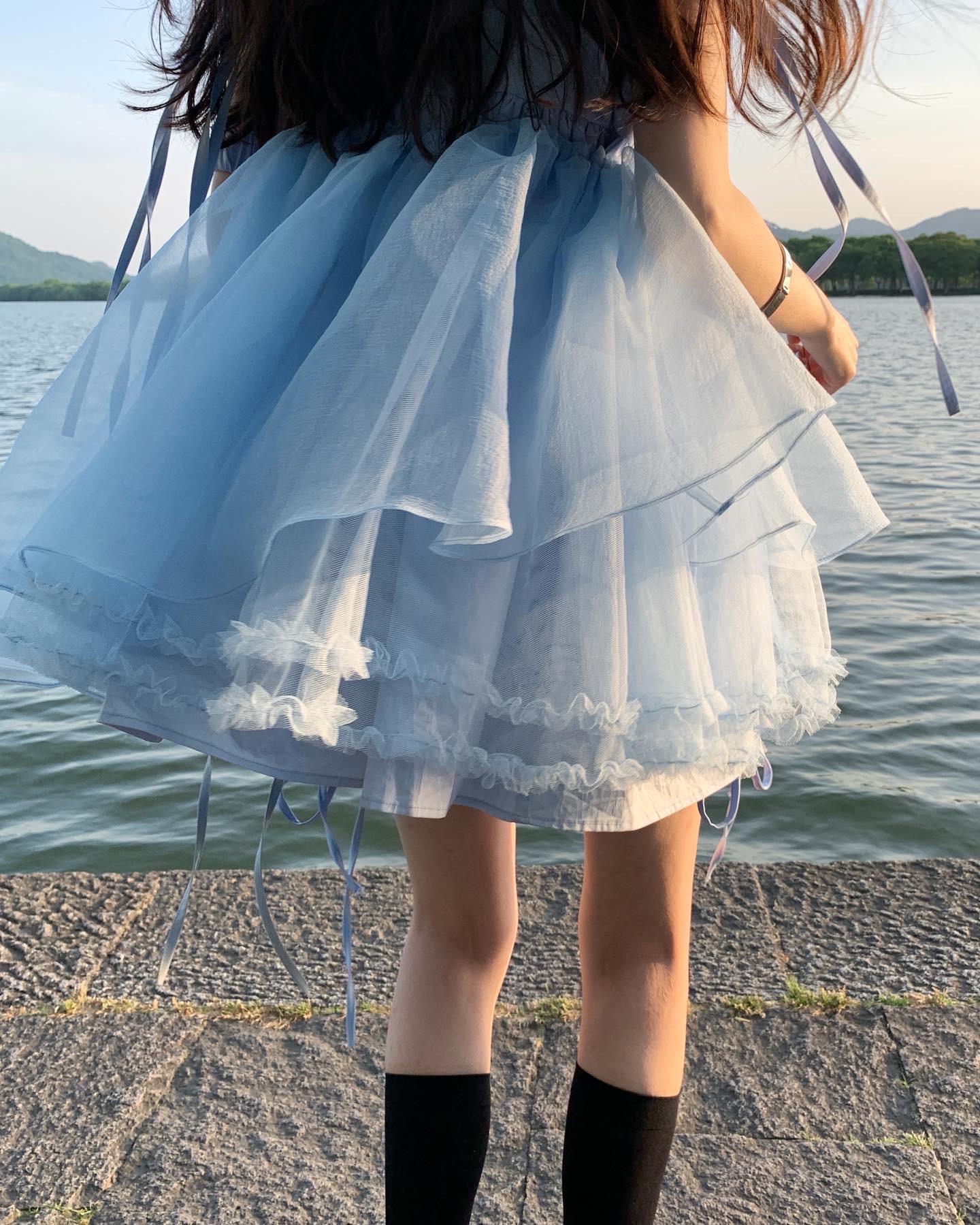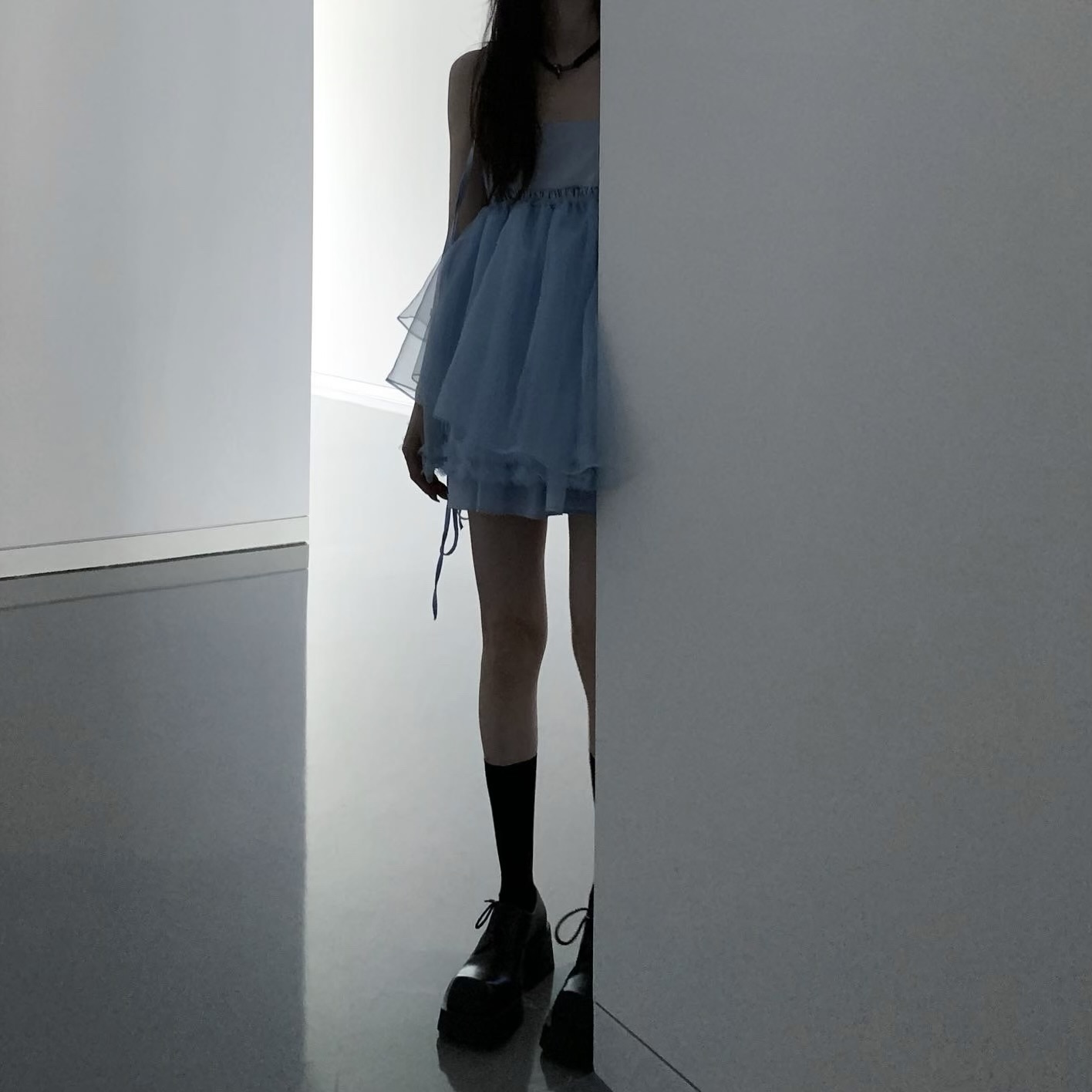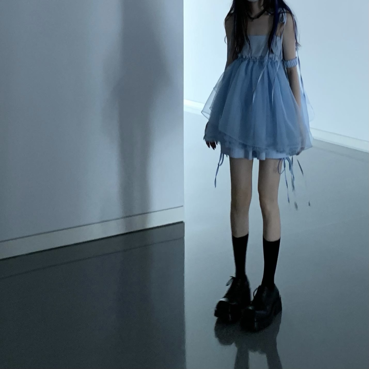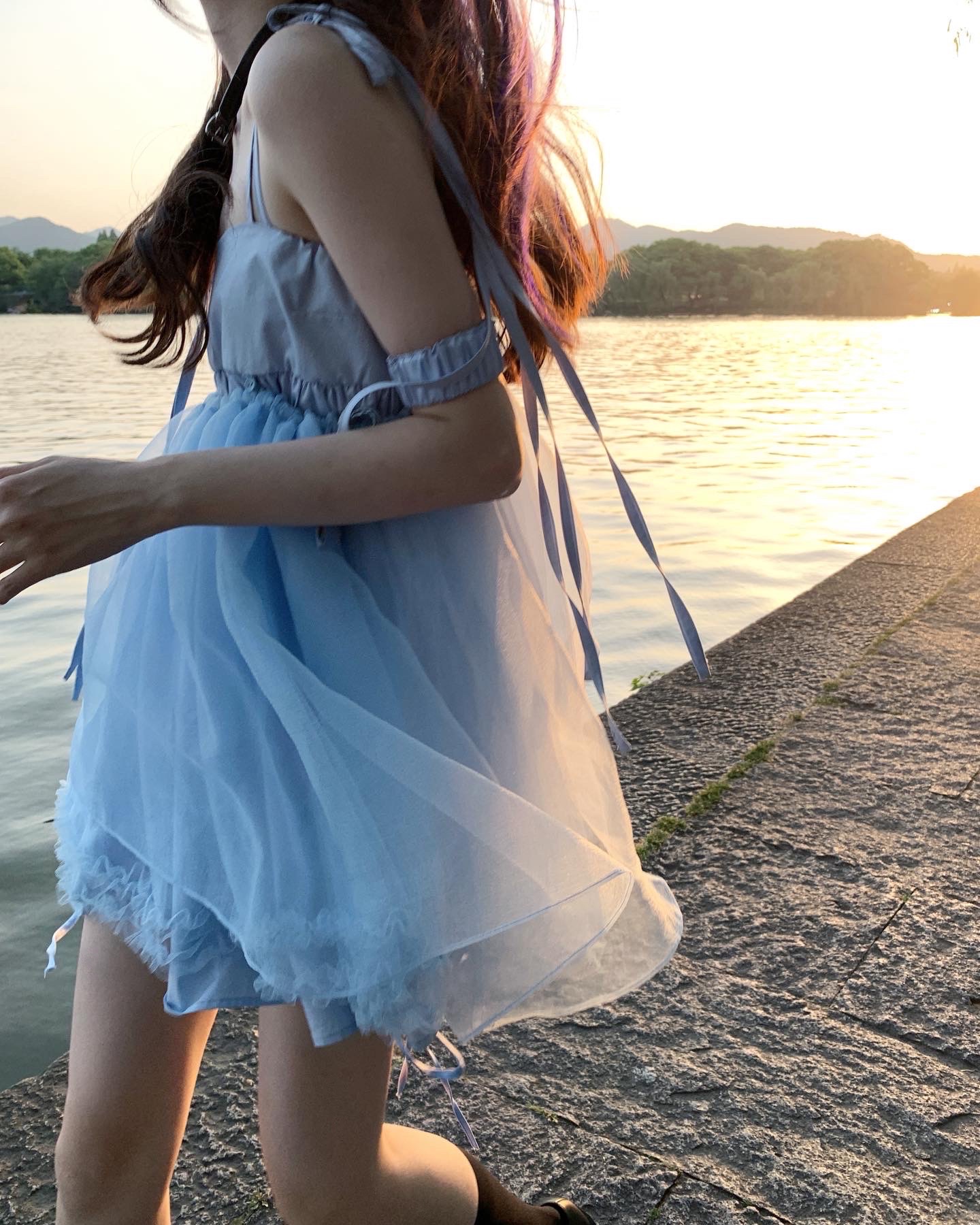 20thmoments 22ss 自制 淺藍色吊帶蓬蓬裙 紗裙不對稱可拆 三件套