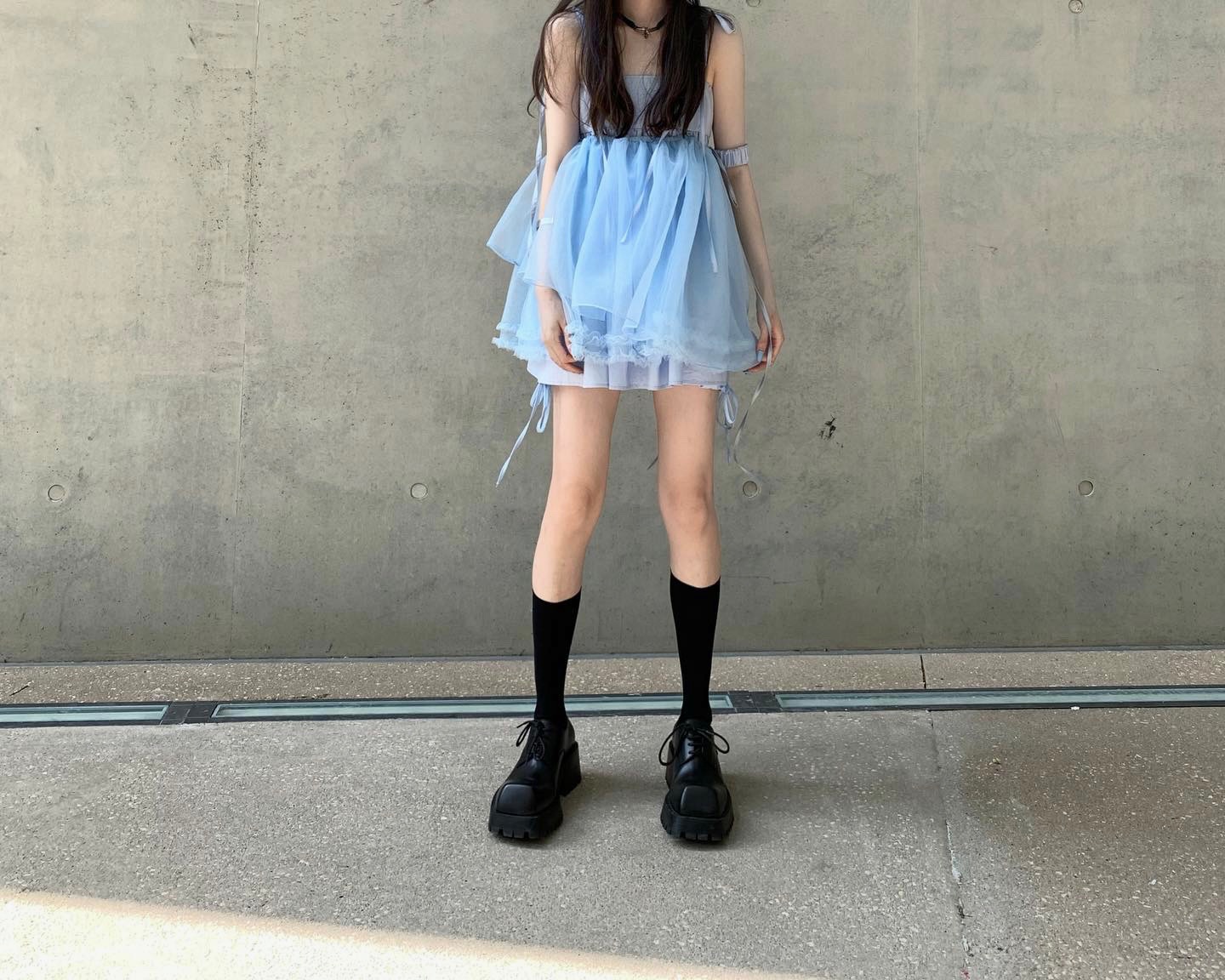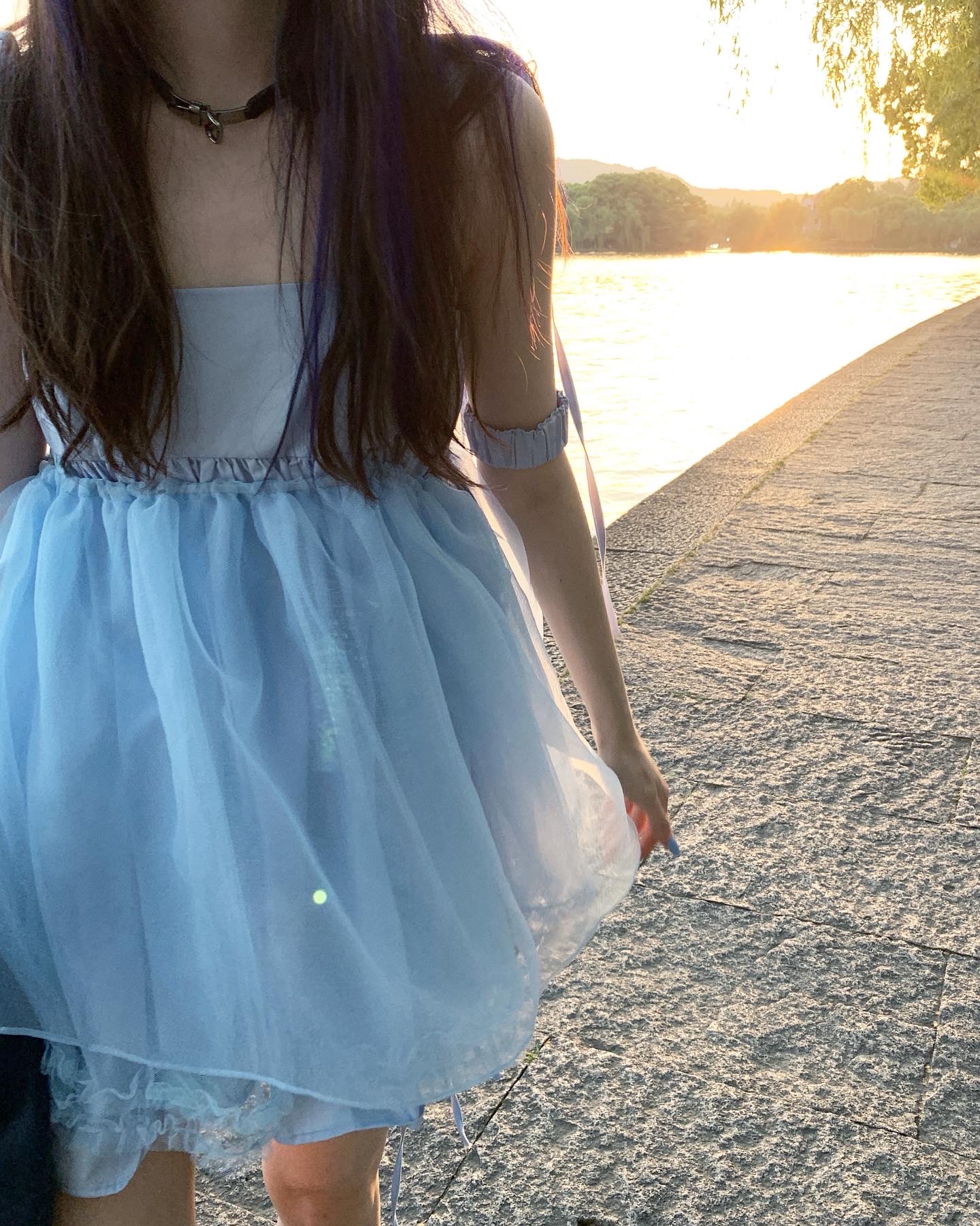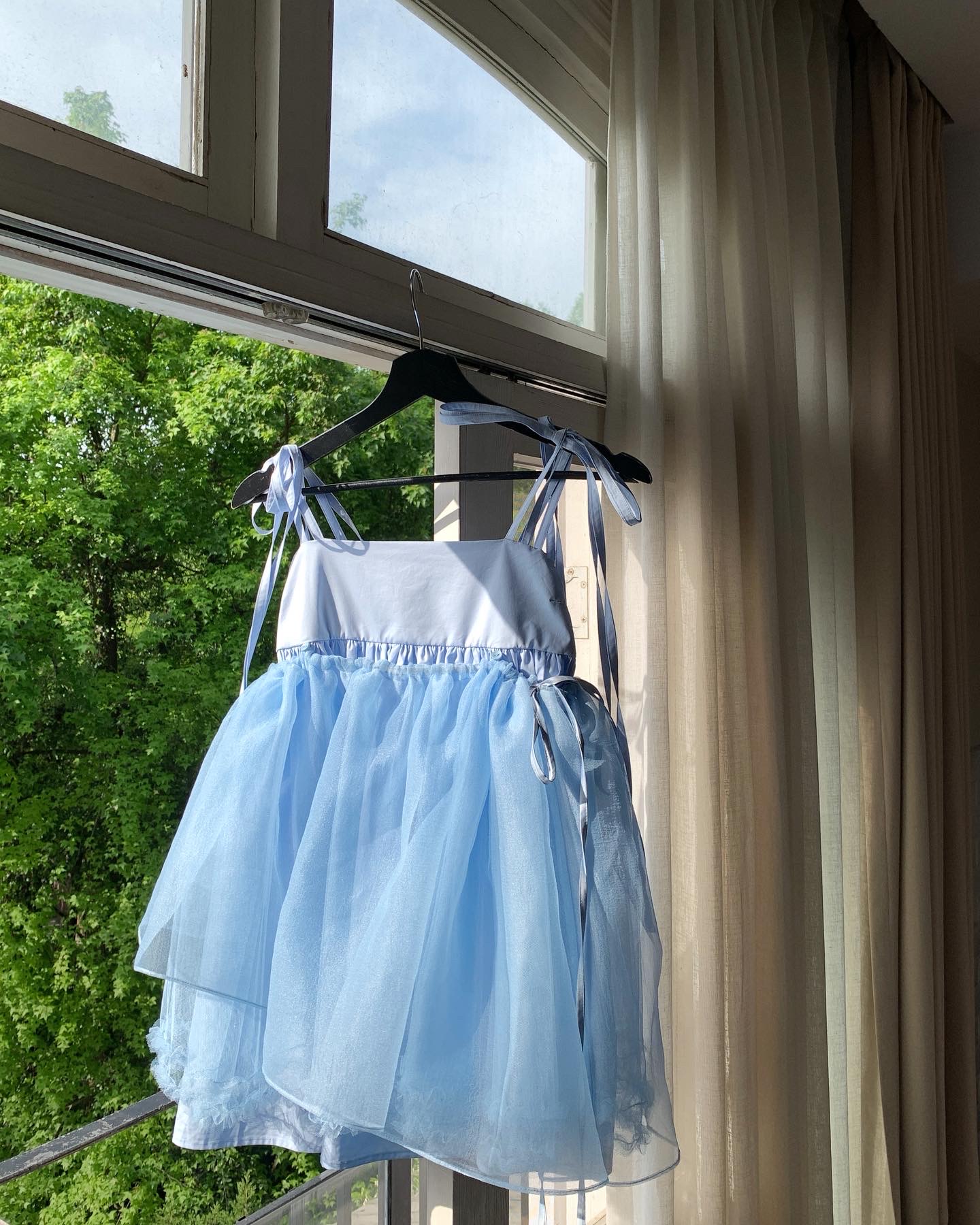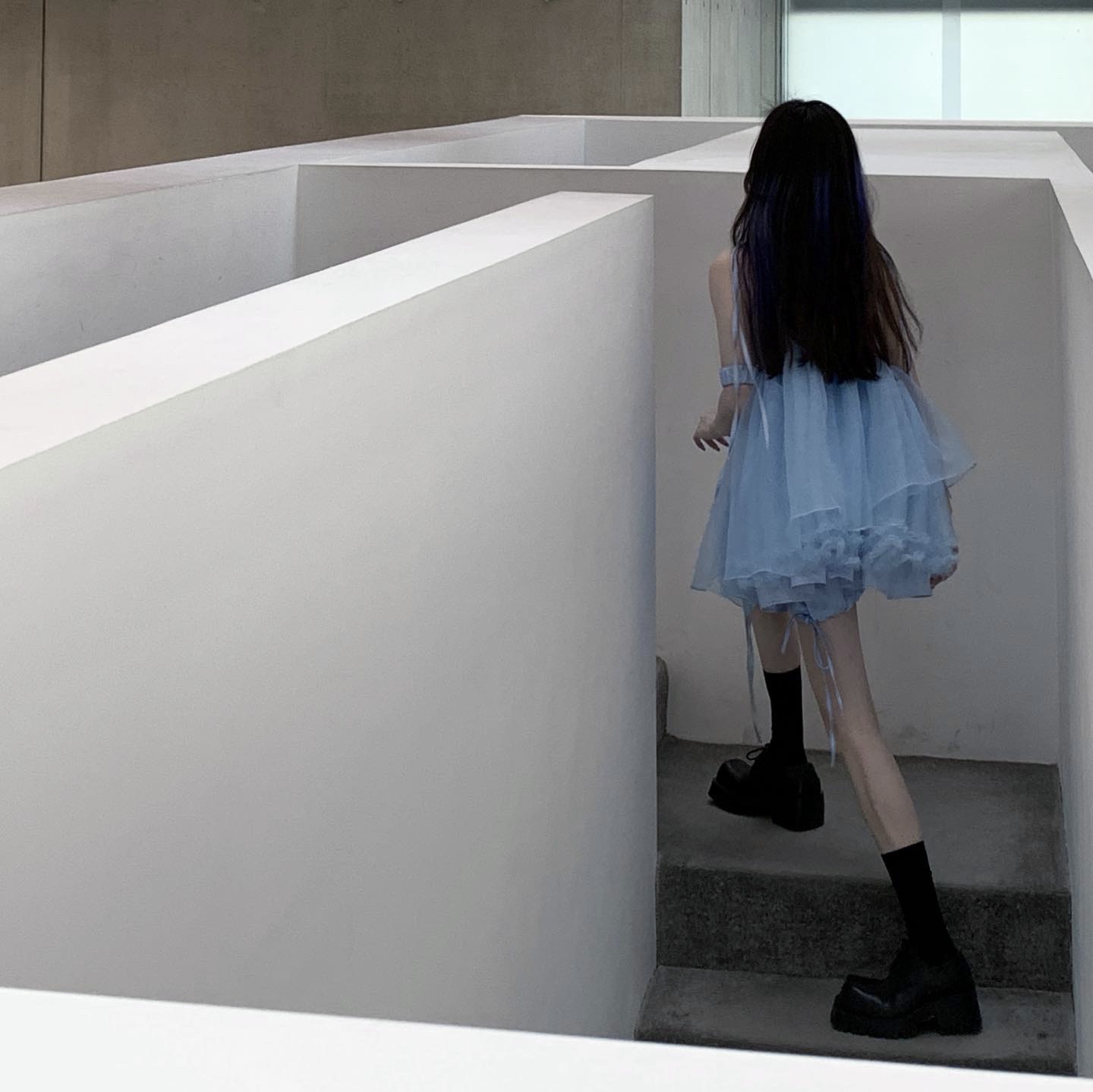 20thmoments 22ss 自制 淺藍色吊帶蓬蓬裙 紗裙不對稱可拆 三件套