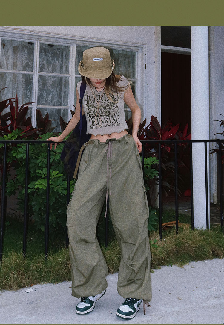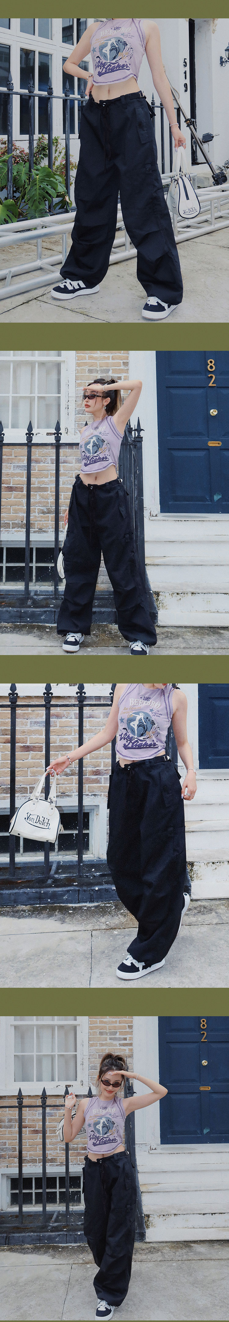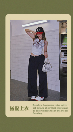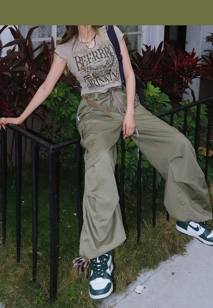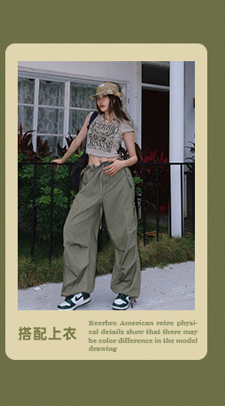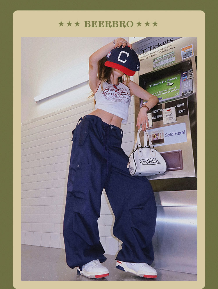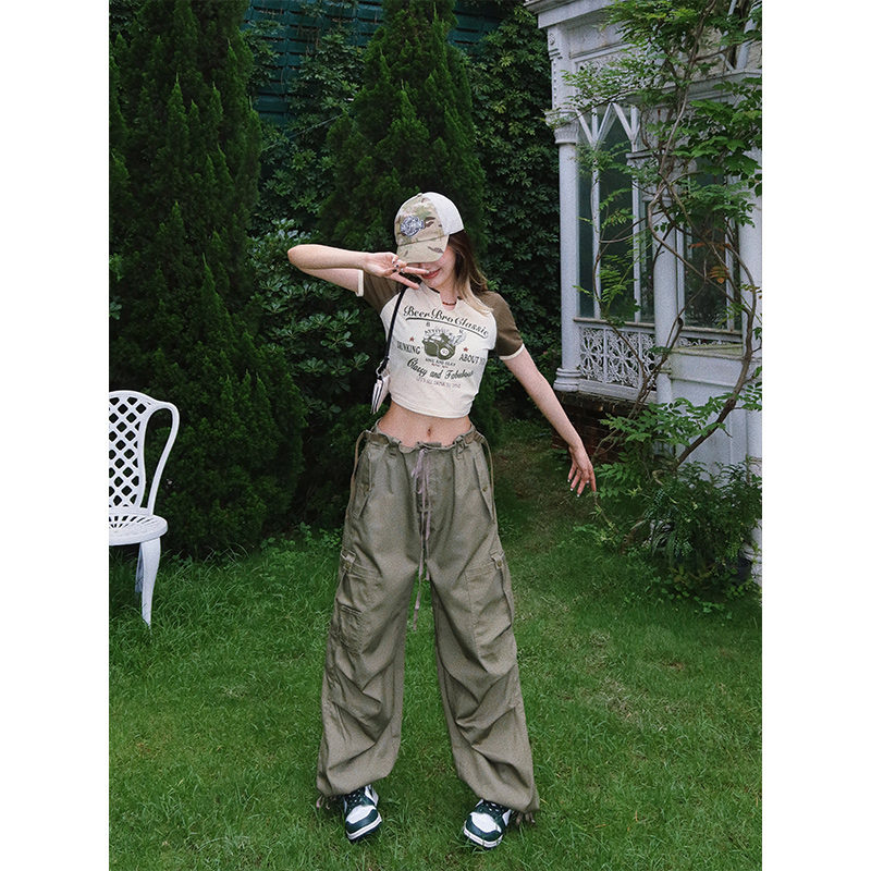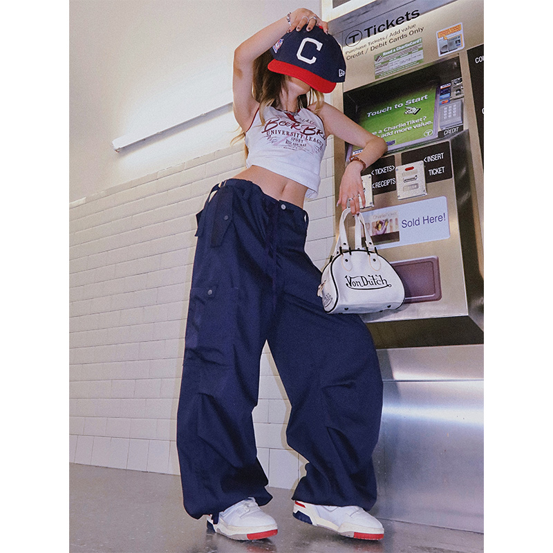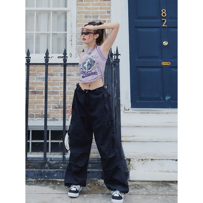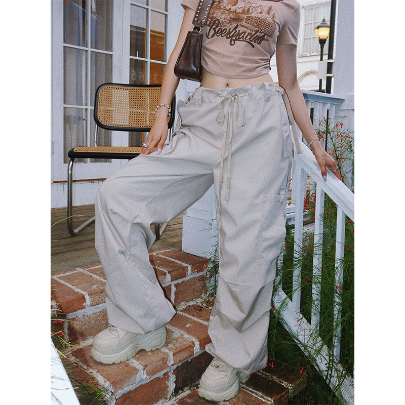 BeerBro 美式復古街頭高街辣妹工裝褲女設計感降落傘褲束腳休閒褲