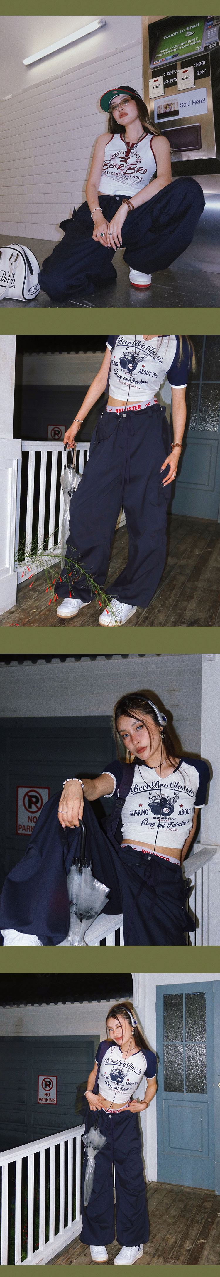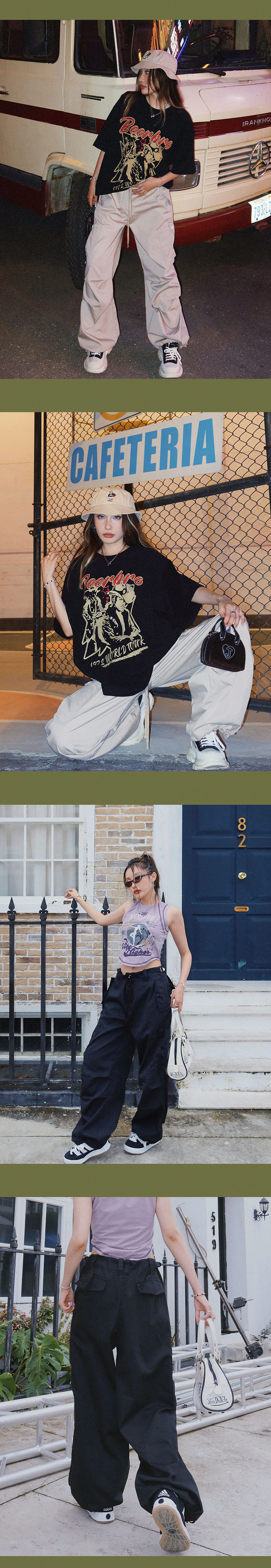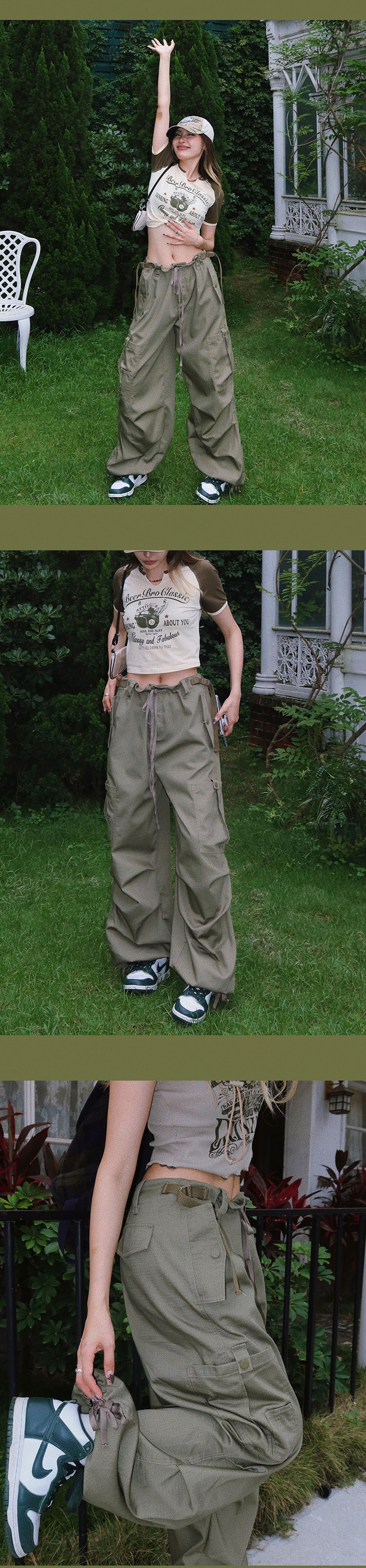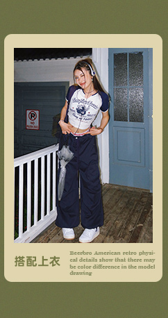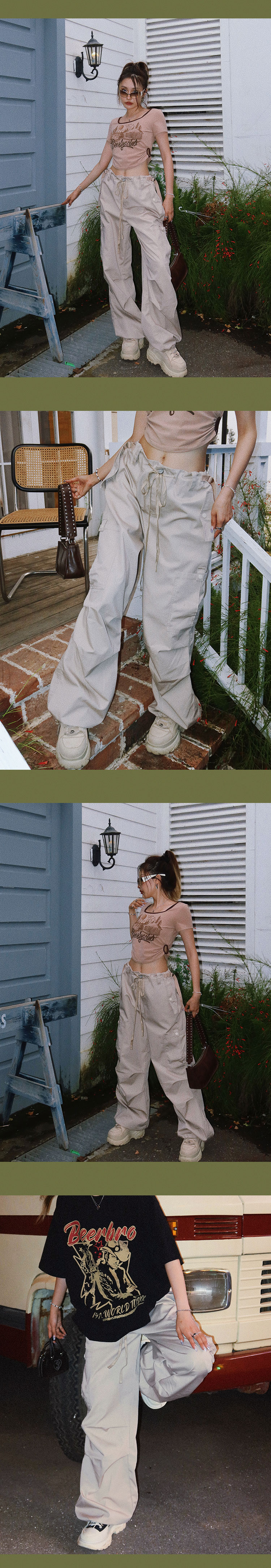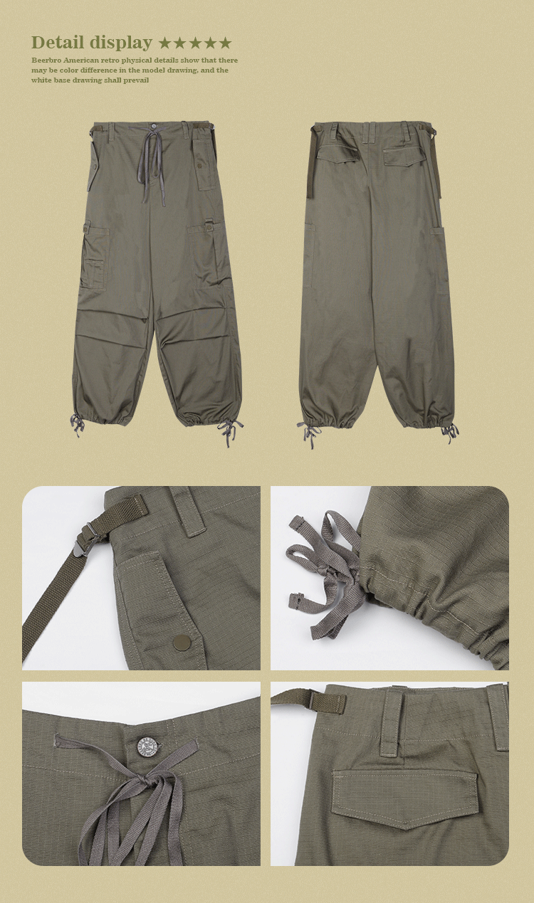 BeerBro 美式復古街頭高街辣妹工裝褲女設計感降落傘褲束腳休閒褲