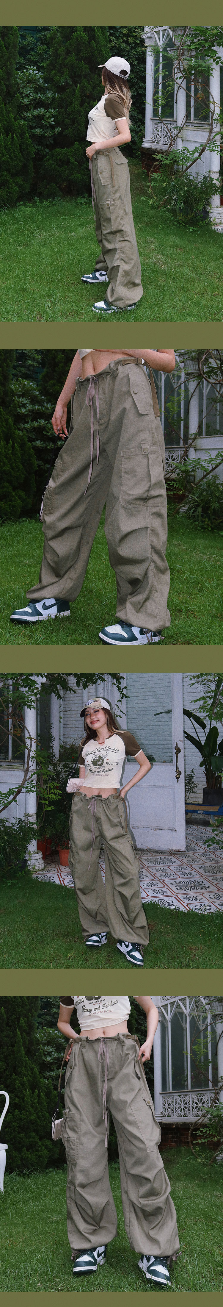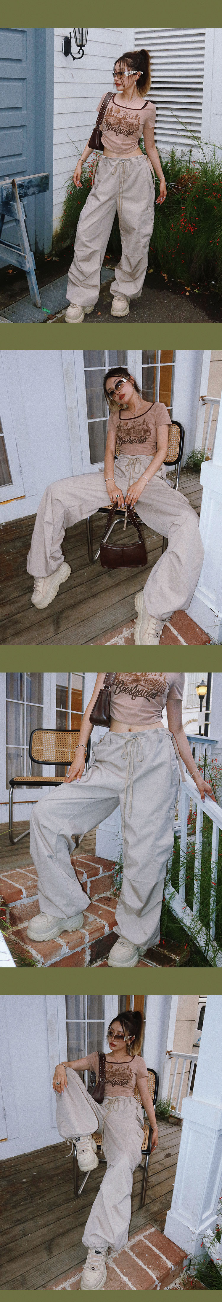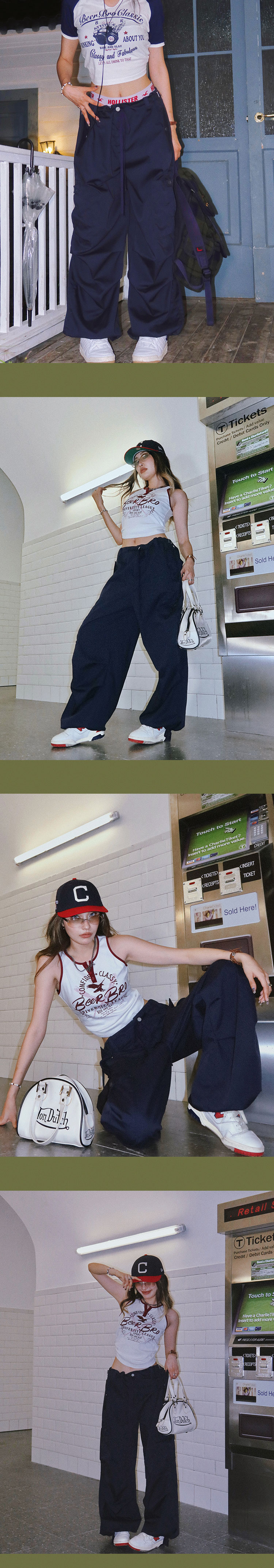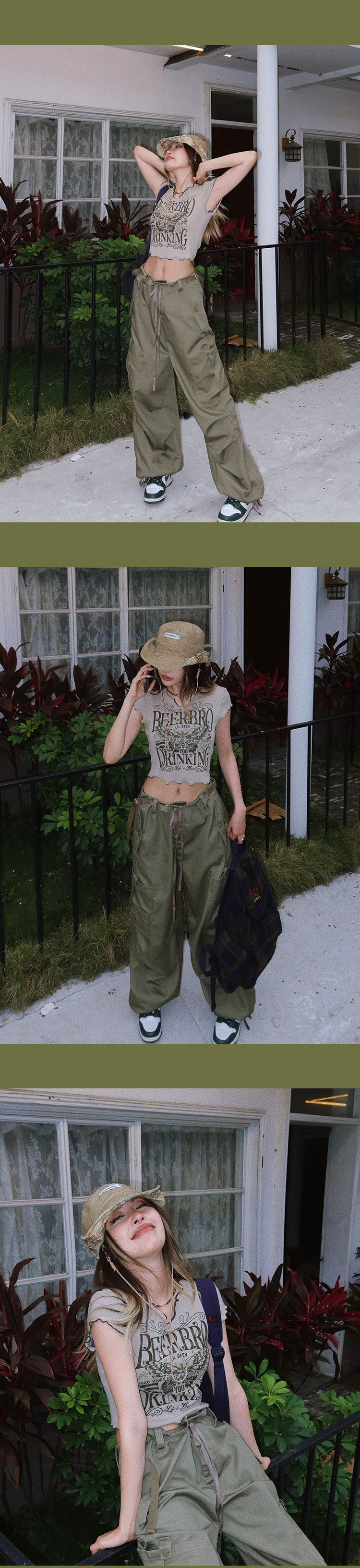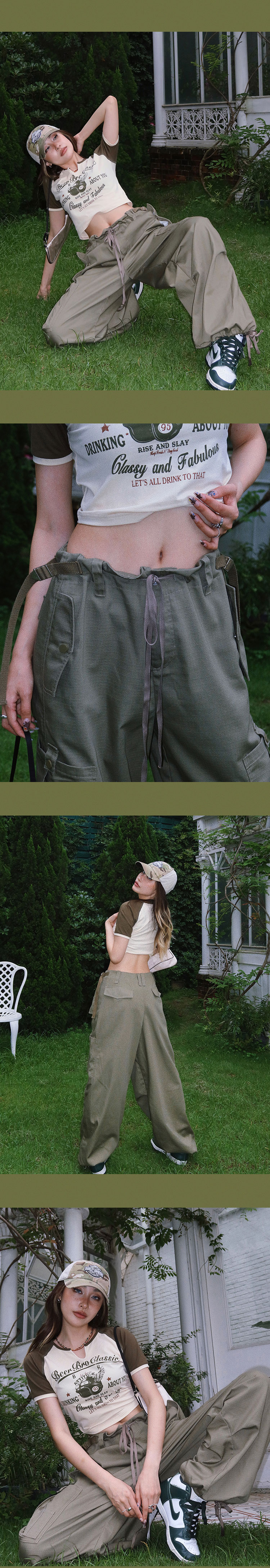 BeerBro 美式復古街頭高街辣妹工裝褲女設計感降落傘褲束腳休閒褲