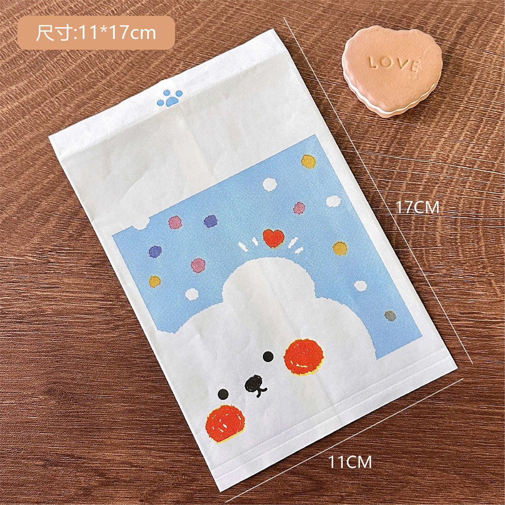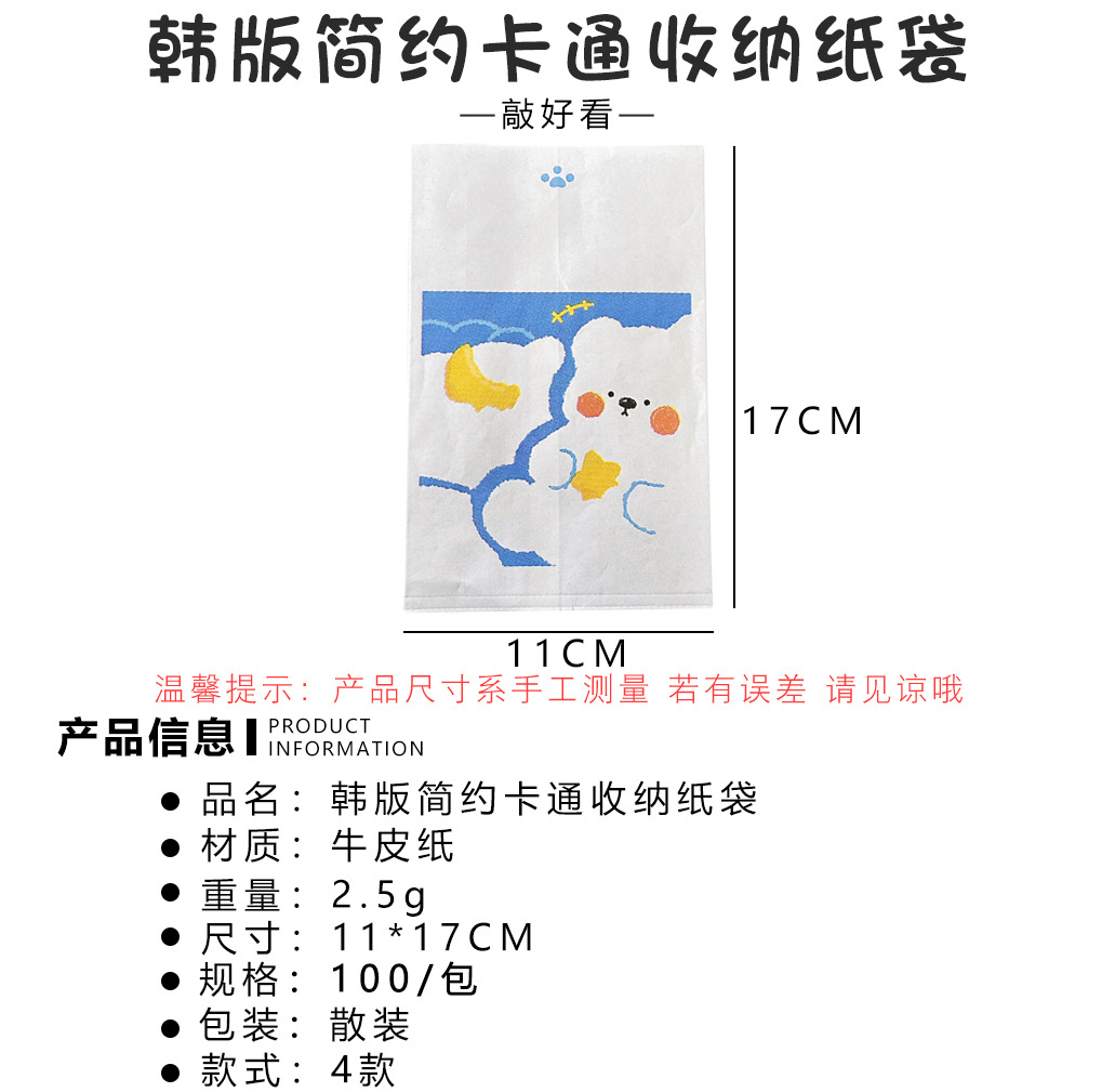 颜色 1#睡睡熊纸袋,2#云海小熊纸袋,3#星月小熊纸袋,4#点点熊纸袋,1#草莓车车,2#啊唔一口,3#草莓芯芯,4#草莓头套,1#可爱泰迪熊,2#草莓天使,3#美味烘焙,4#庆祝拉拉队,1#软萌女孩,2#甜品女孩,3#蛋糕女孩,4#虎皮铜锣烧,1#可爱郁金香,2#幸运的一天,3#幸运小狗,4#小狗屁屁,1#蓝色云朵,2#黄色小狗,3#粉色云朵,4#蓝色小狗