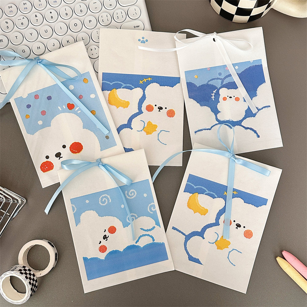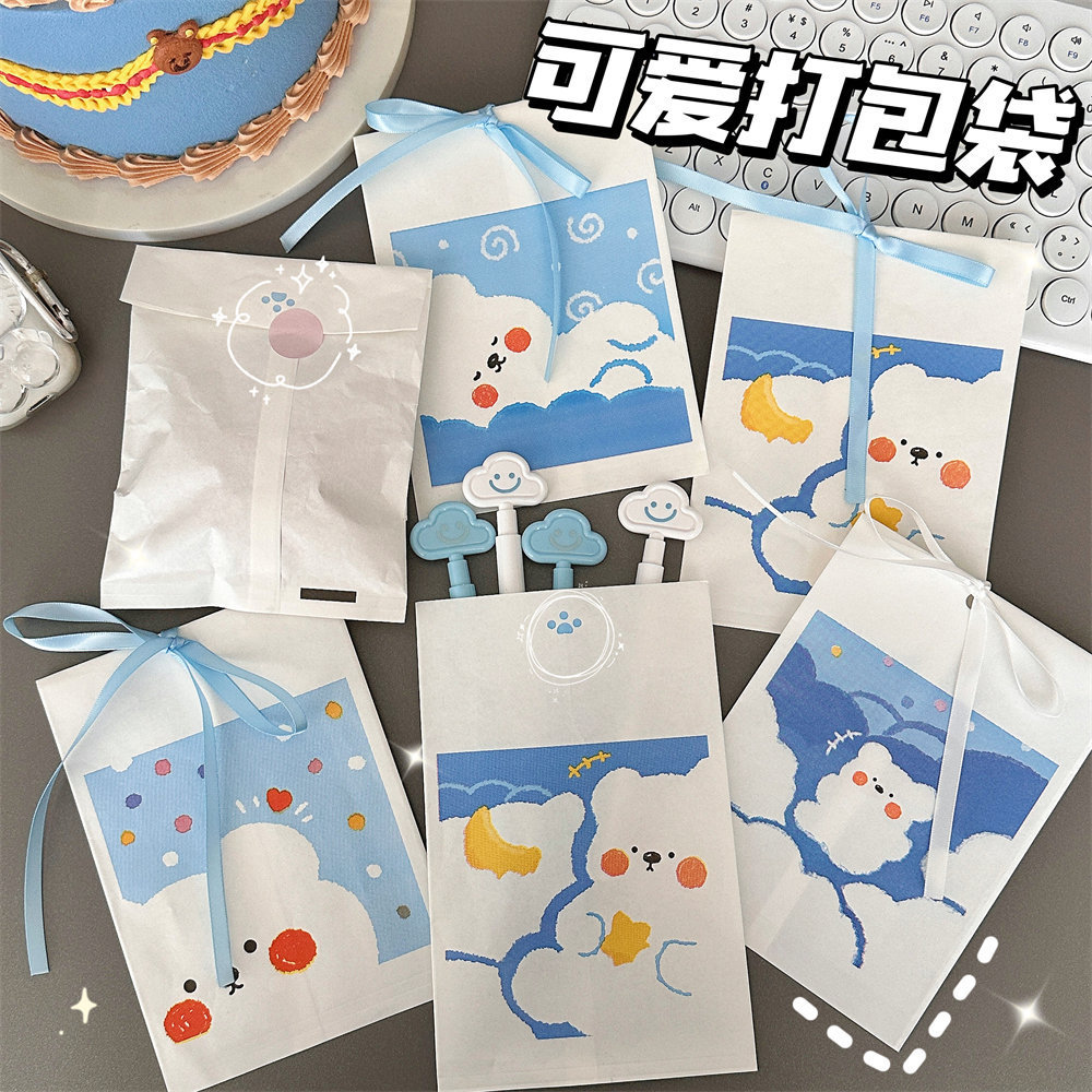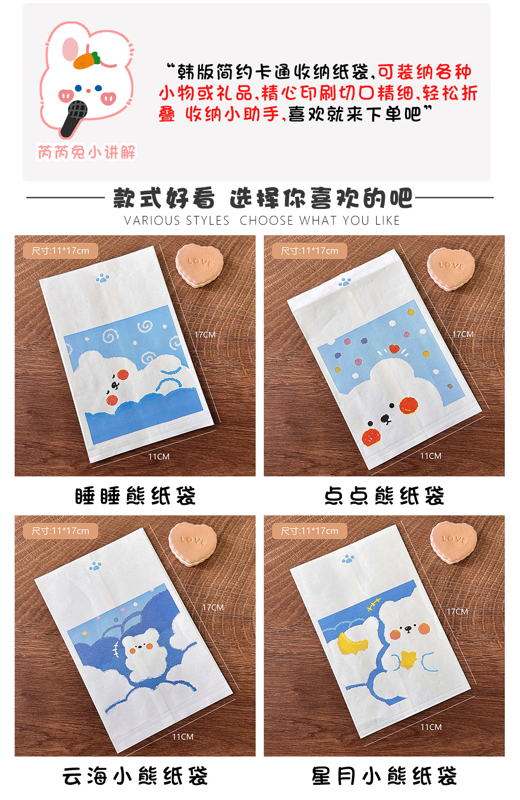 韩版简约ins风纸质收纳袋卡通可爱云朵熊迷你纸袋子摆拍装饰道具