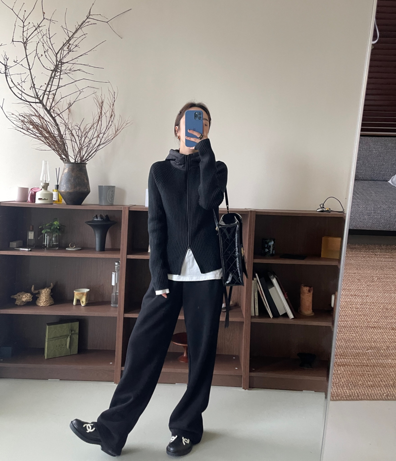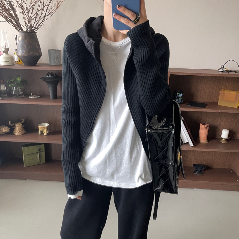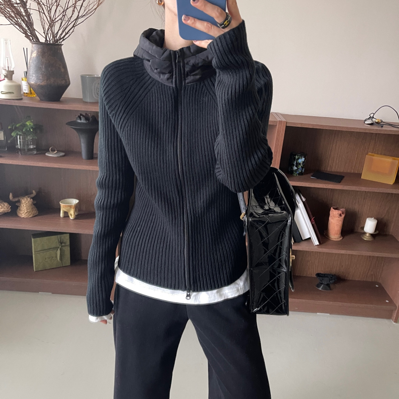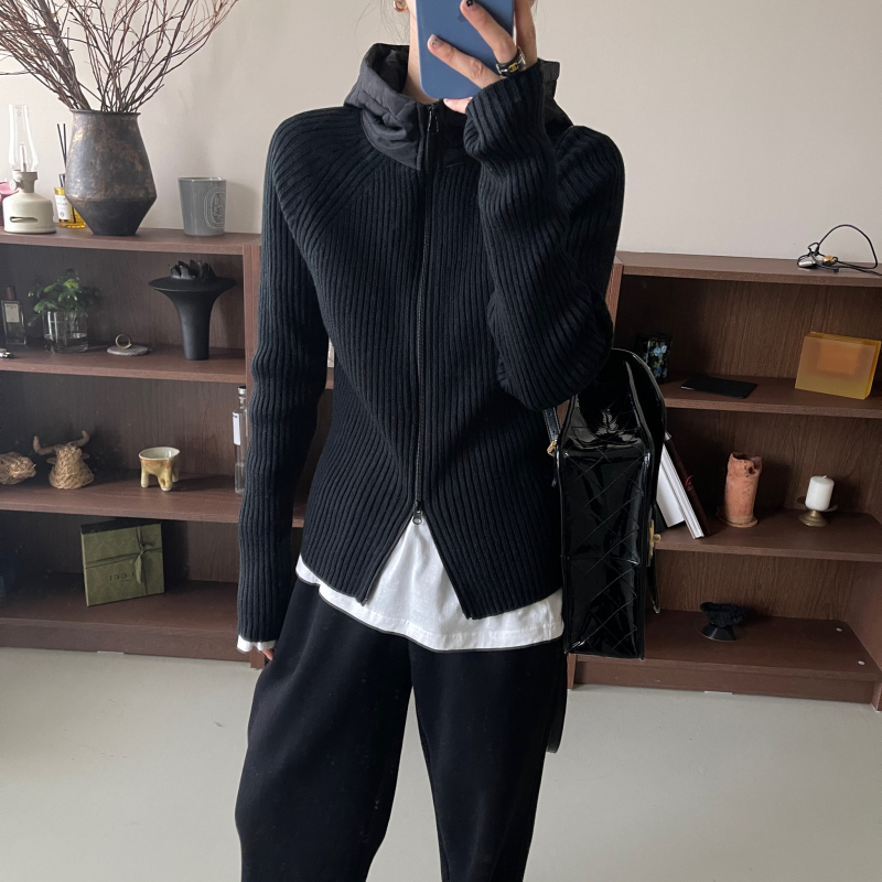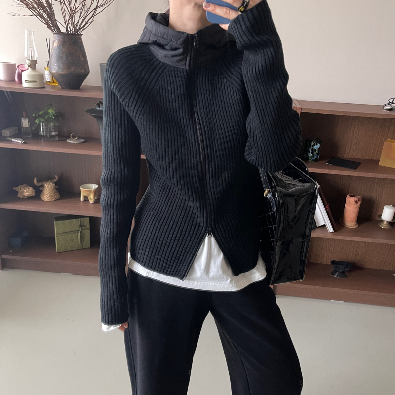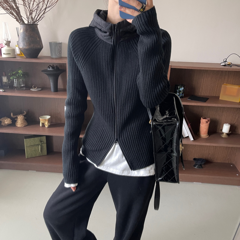 yokidan連帽上衣2023秋冬新款設計感開衫顯瘦坑條毛衣byjunjun