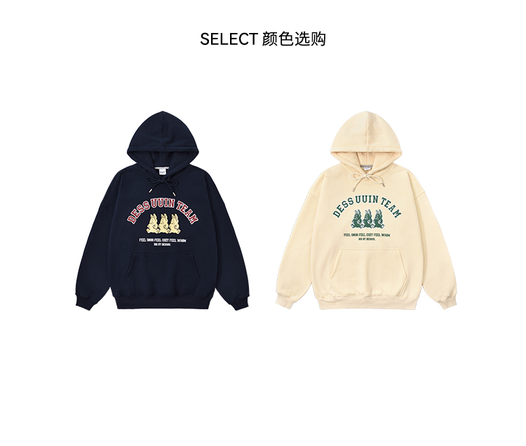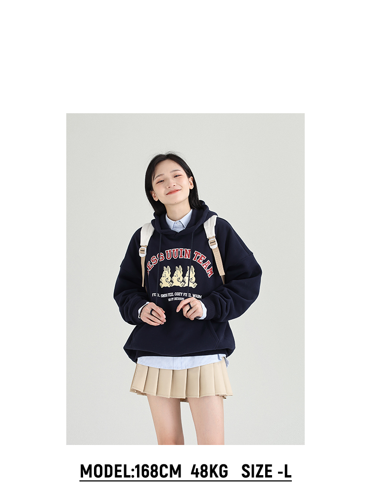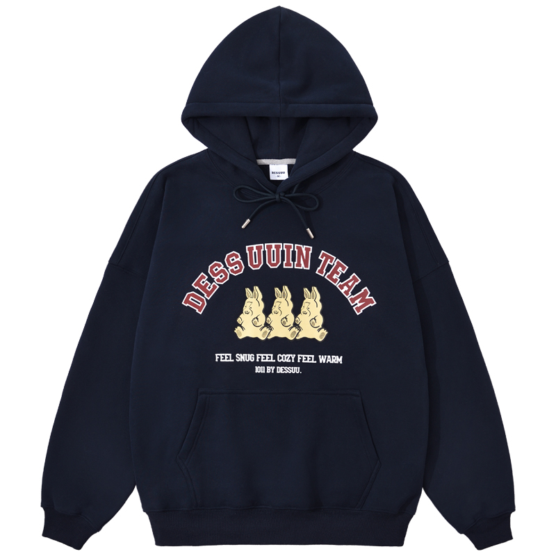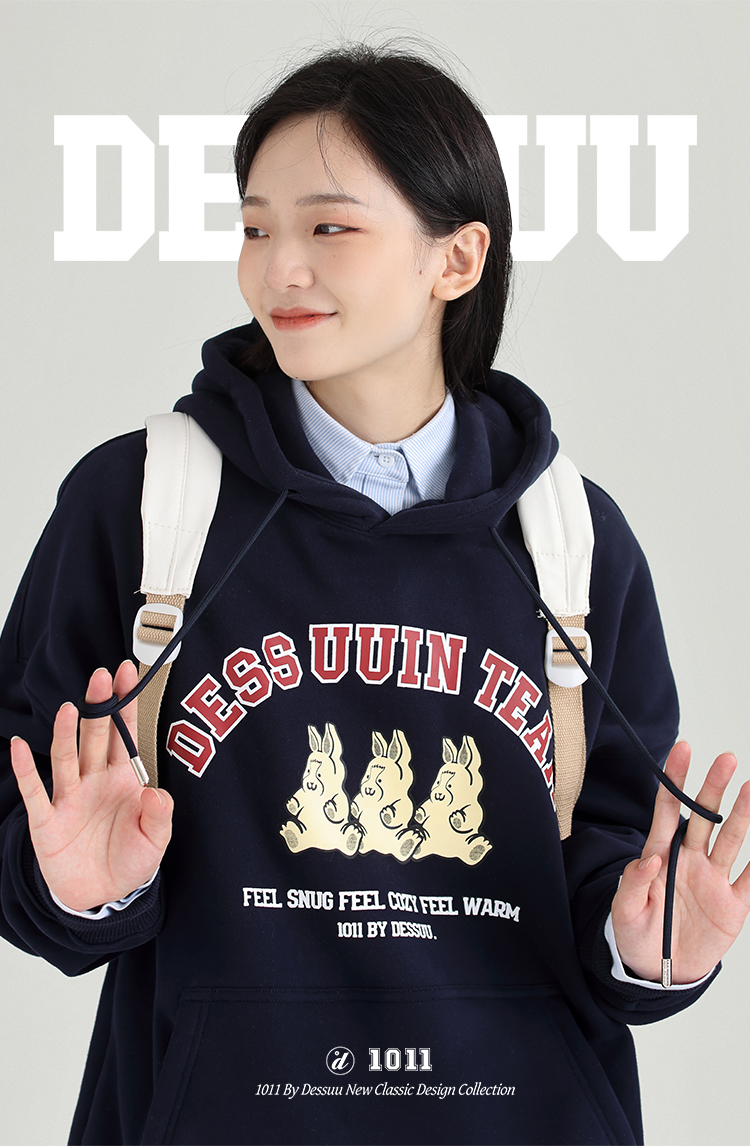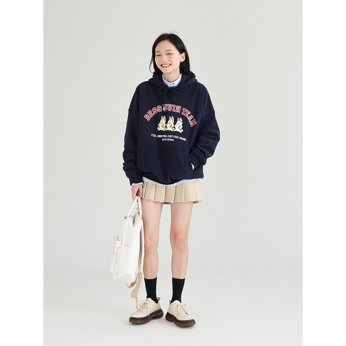 DESSUU秋冬復古學院風連帽加絨衛衣女兔子印花寬鬆帽衫丨兔年限定