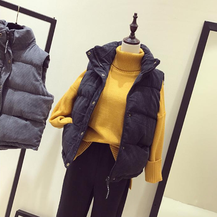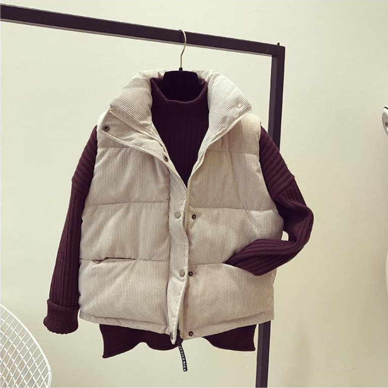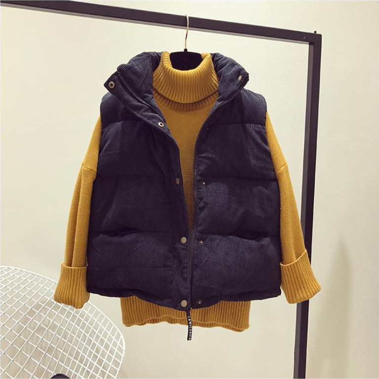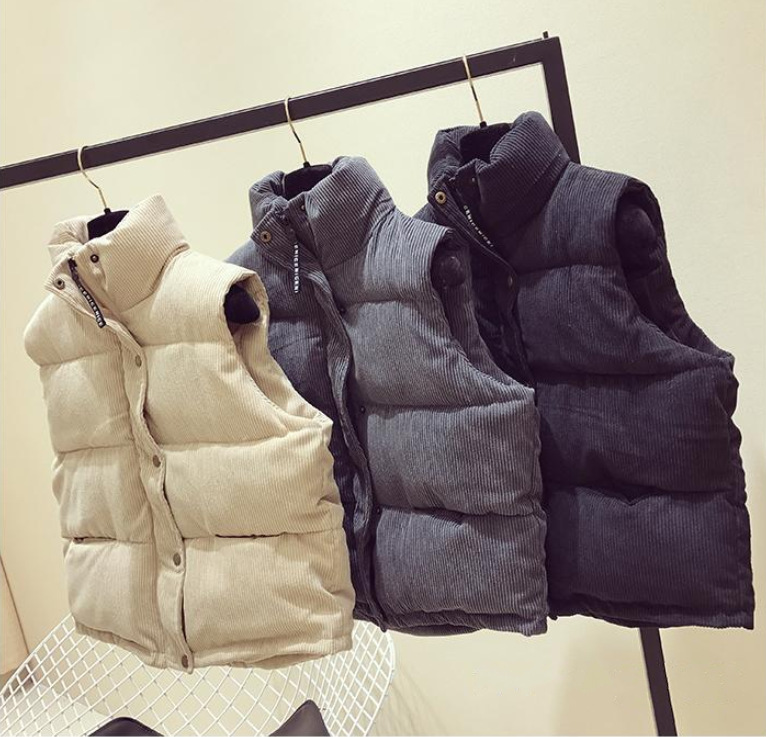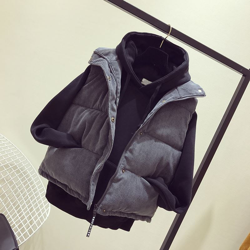 【现货】韩版宽松坎肩面包服棉衣马甲女背心外套灯芯绒短款