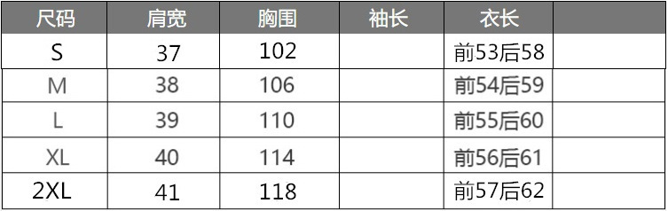 S建议80-100斤 M建议100-110斤 L建议110-120斤 XL建议120-130斤 2XL建议130-140斤