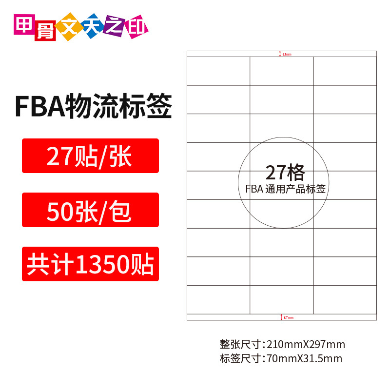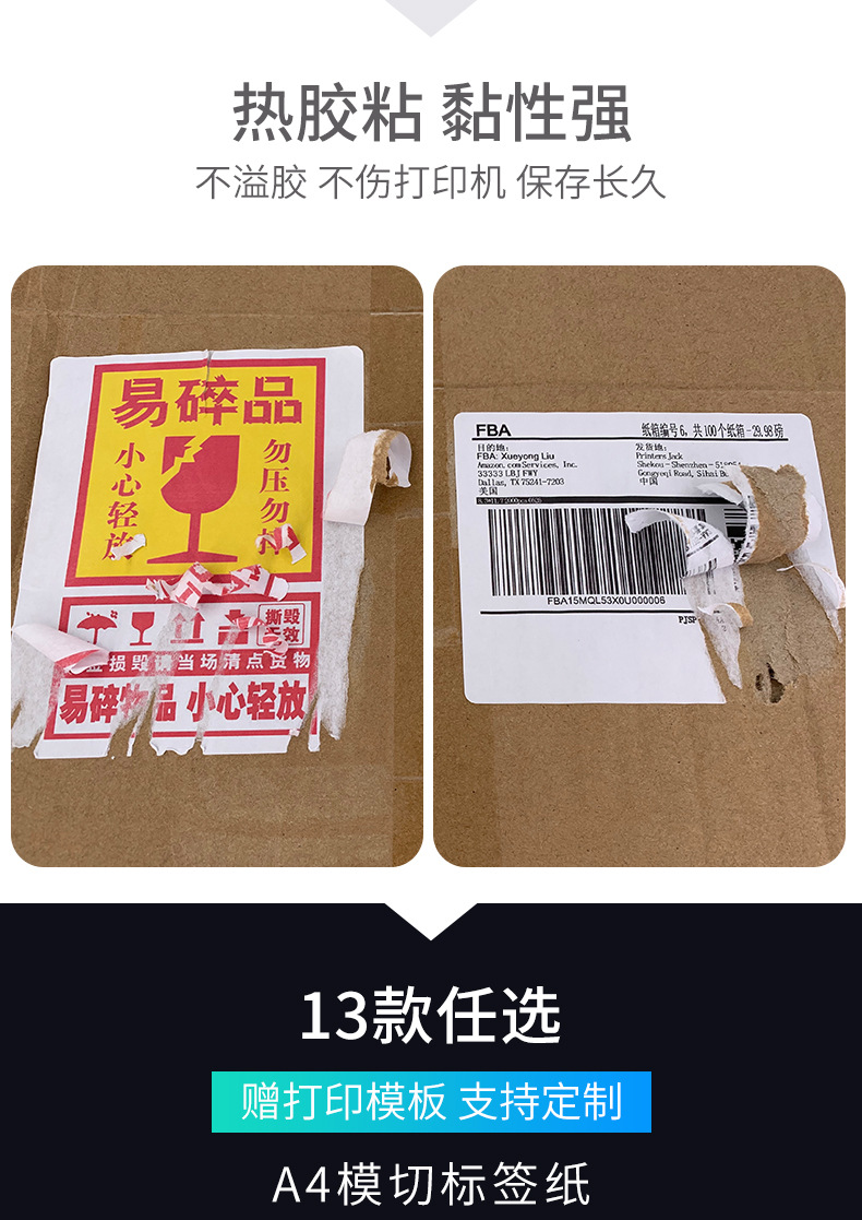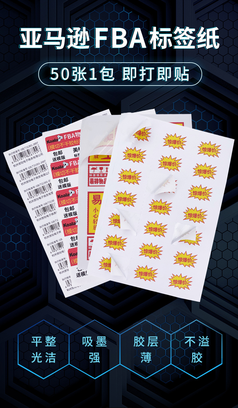【跨境专供】FBA标签纸 模切不干胶A4哑面激光喷墨内切割不干胶纸