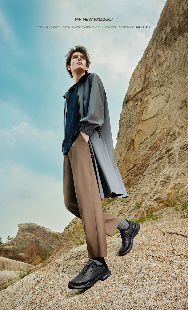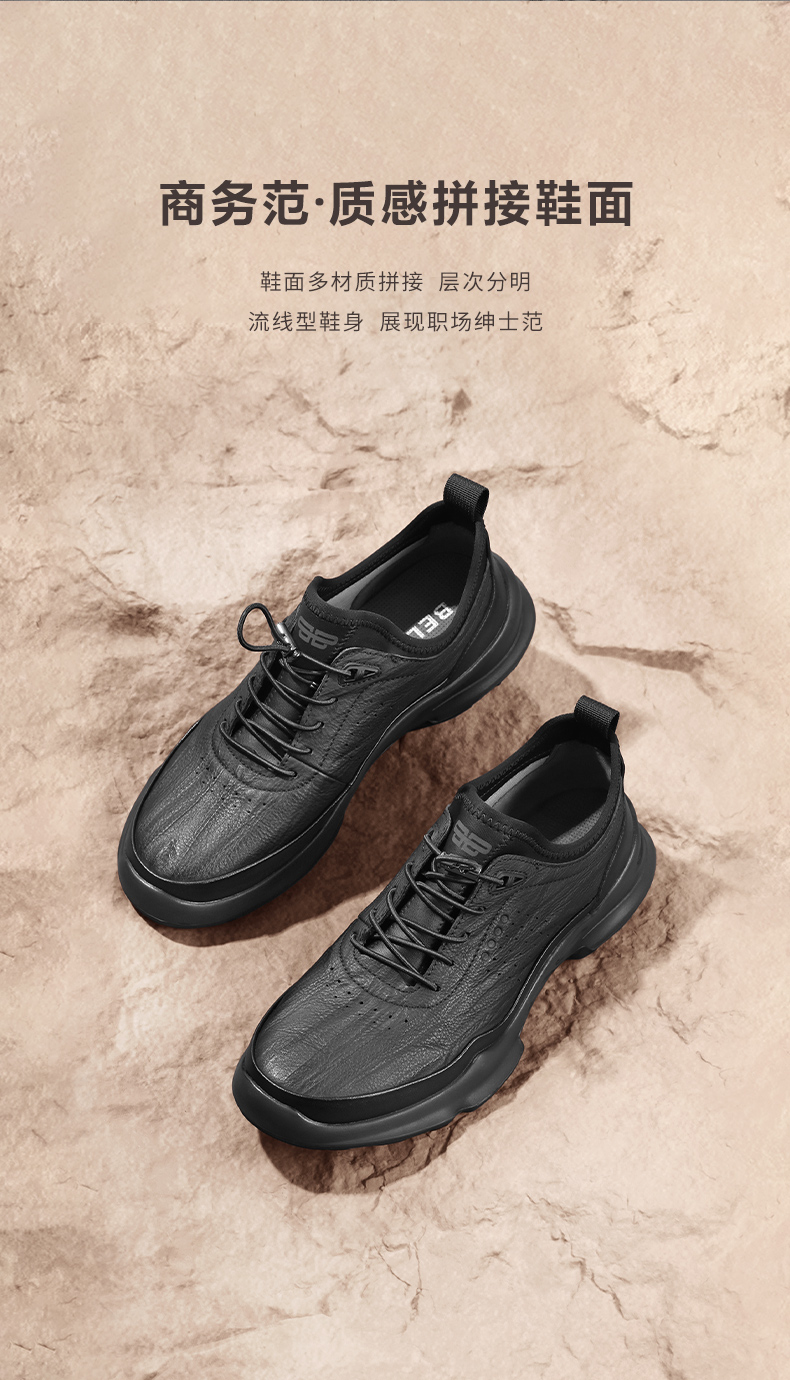 百麗男鞋潮流運動鞋男休閒鞋2023秋新商場同款輕便厚底鞋8AY01CM3