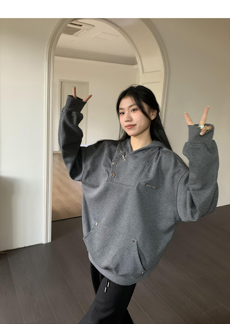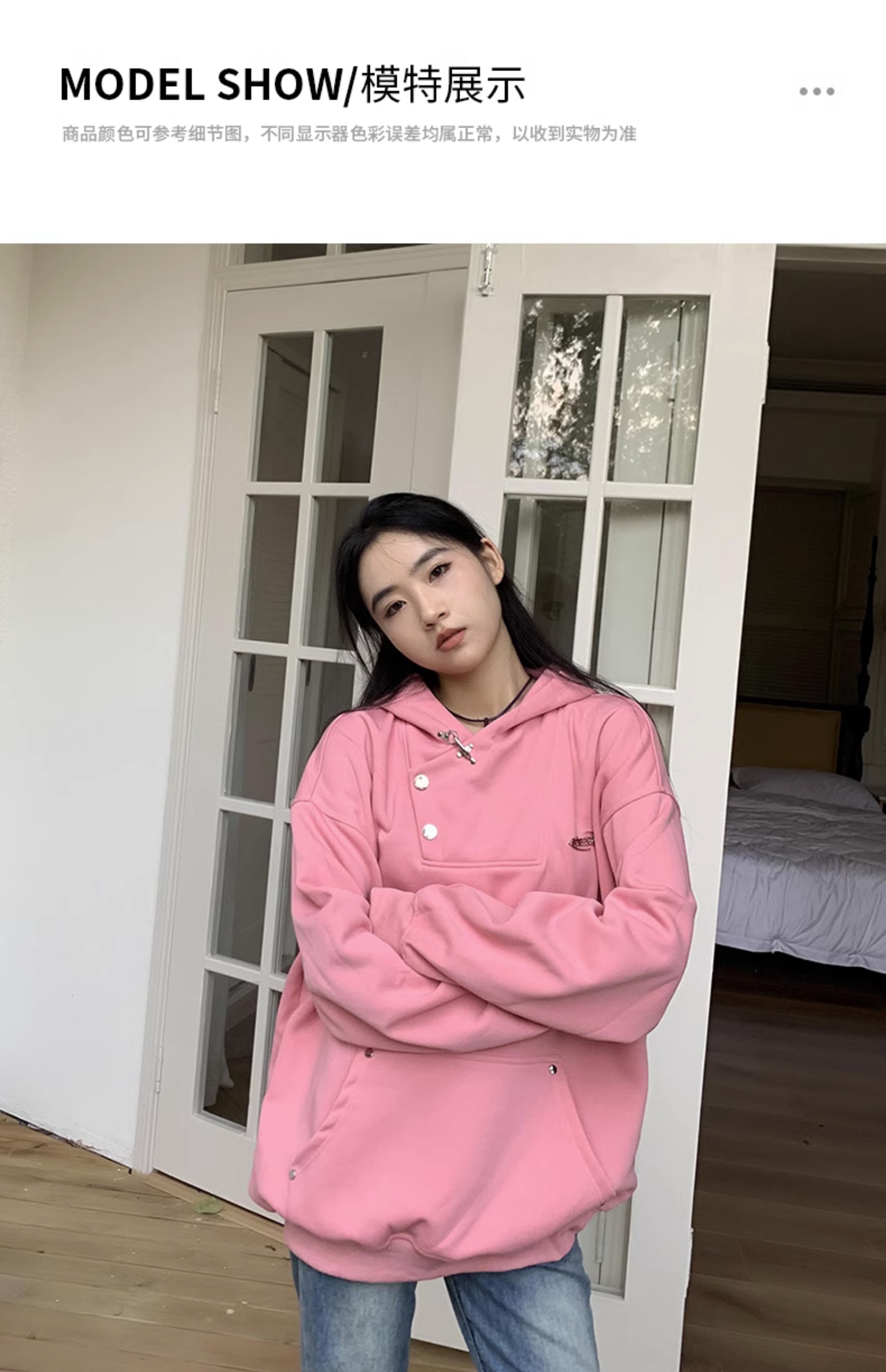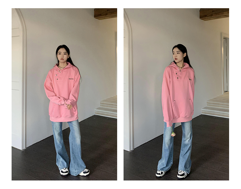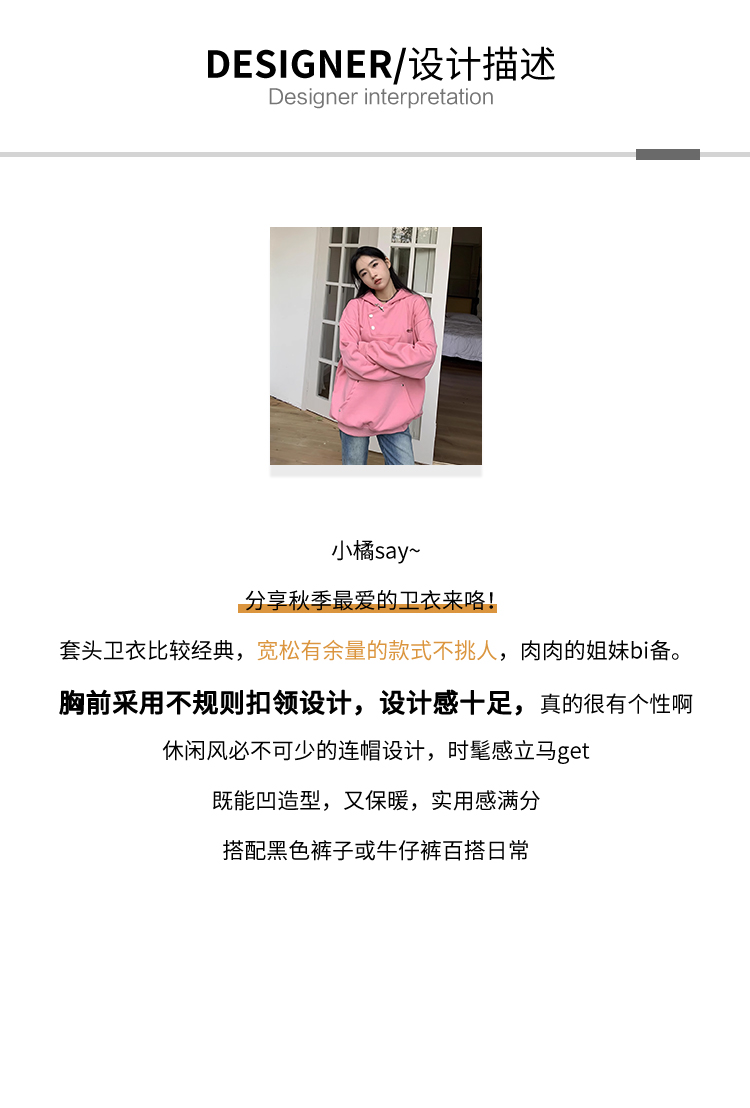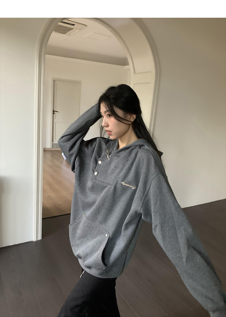 橘子樹在哪兒美式飛機扣領連帽運動衫女春秋設計感小眾寬鬆休閒外套