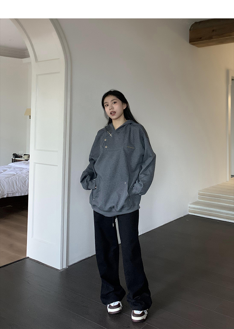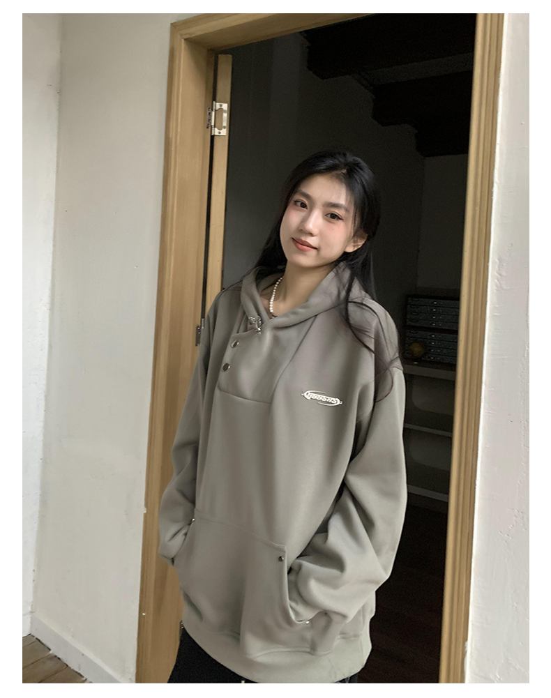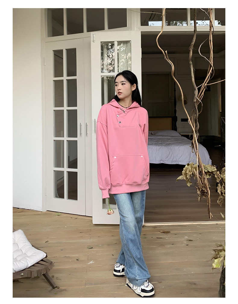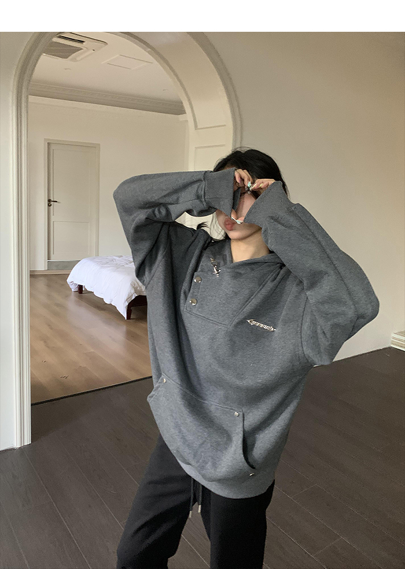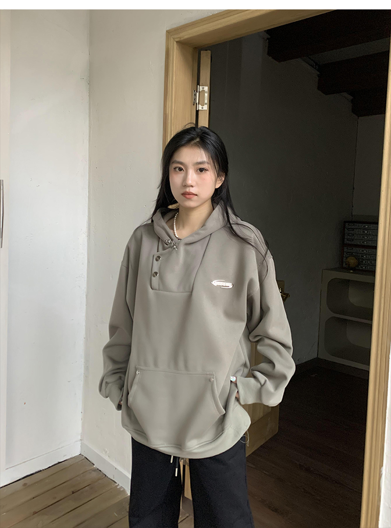 橘子樹在哪兒美式飛機扣領連帽運動衫女春秋設計感小眾寬鬆休閒外套