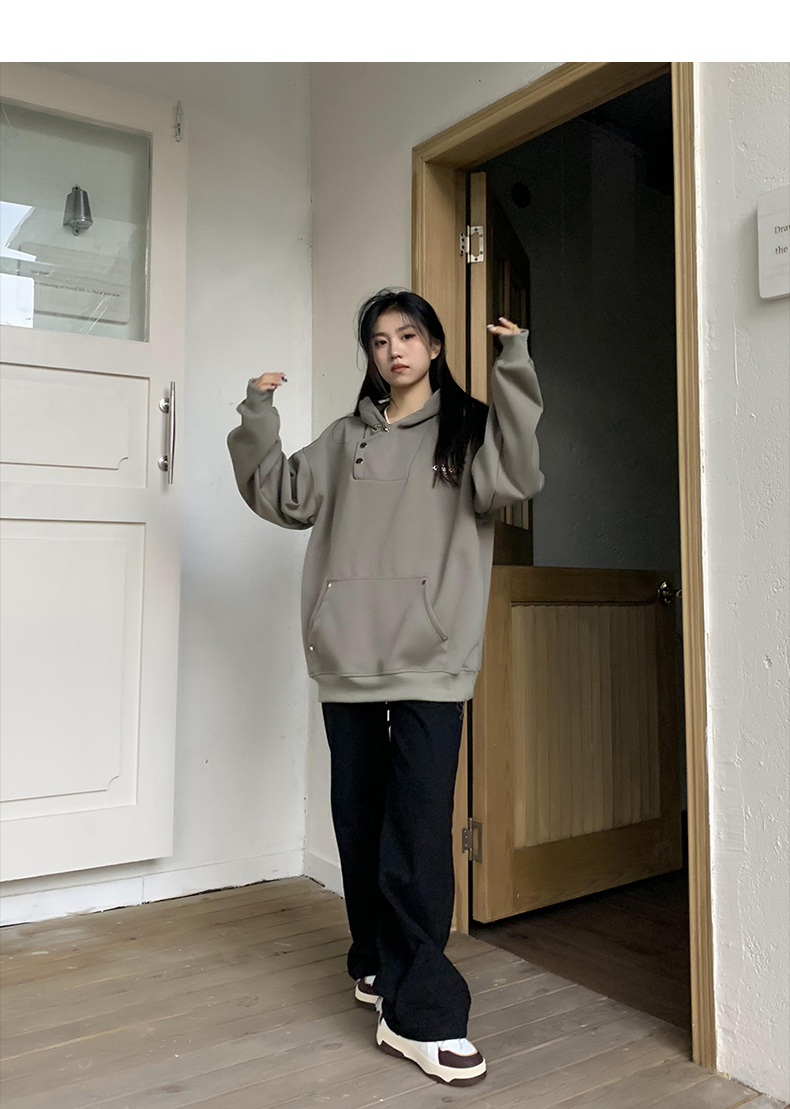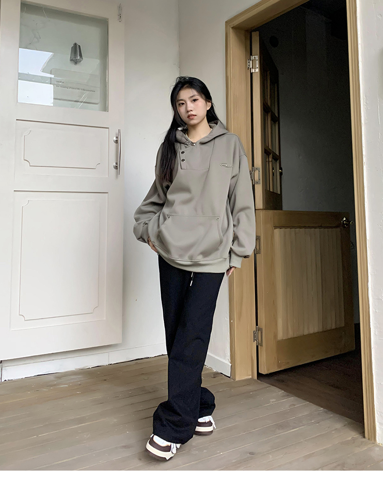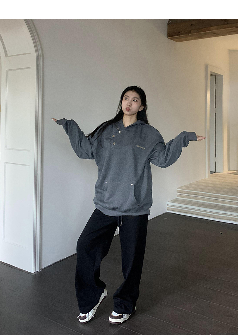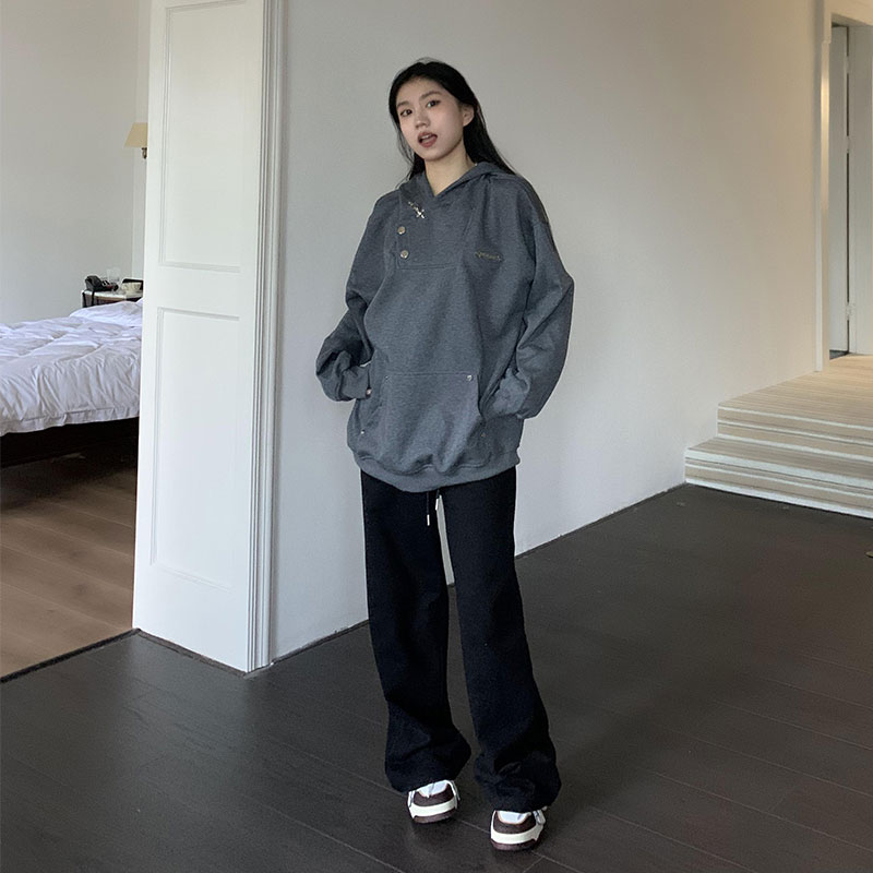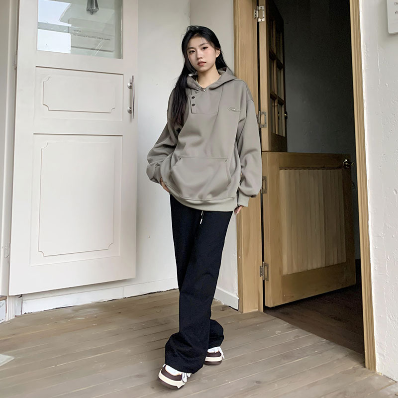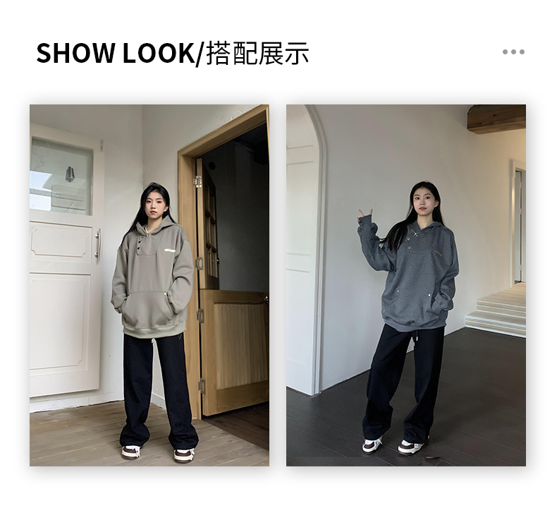 橘子樹在哪兒美式飛機扣領連帽運動衫女春秋設計感小眾寬鬆休閒外套