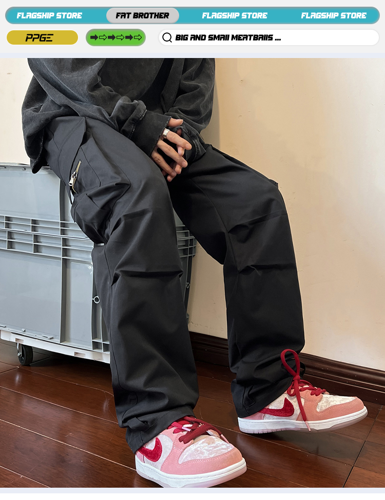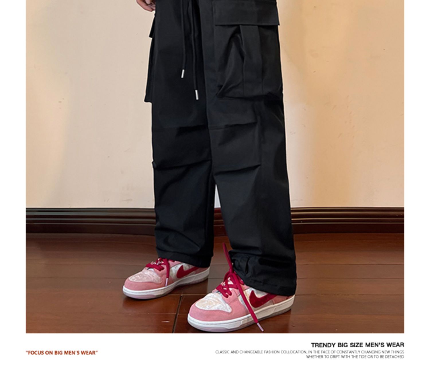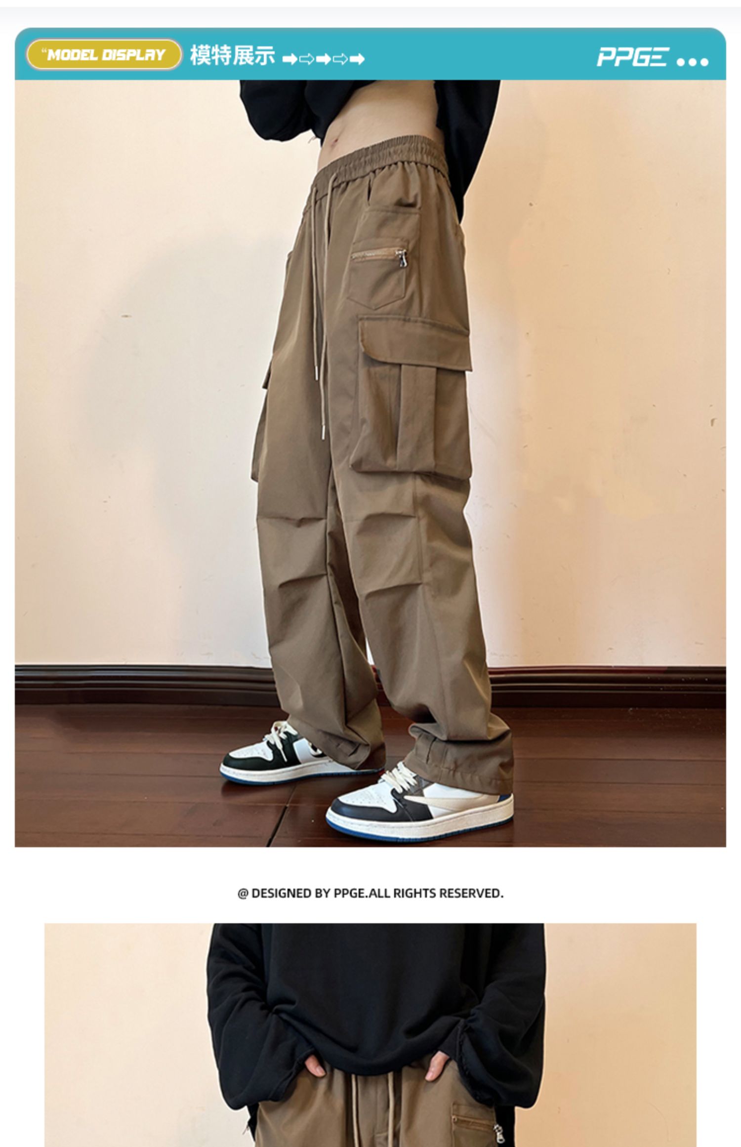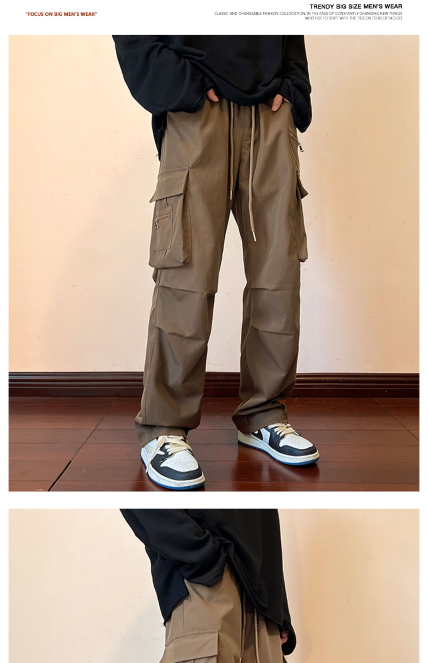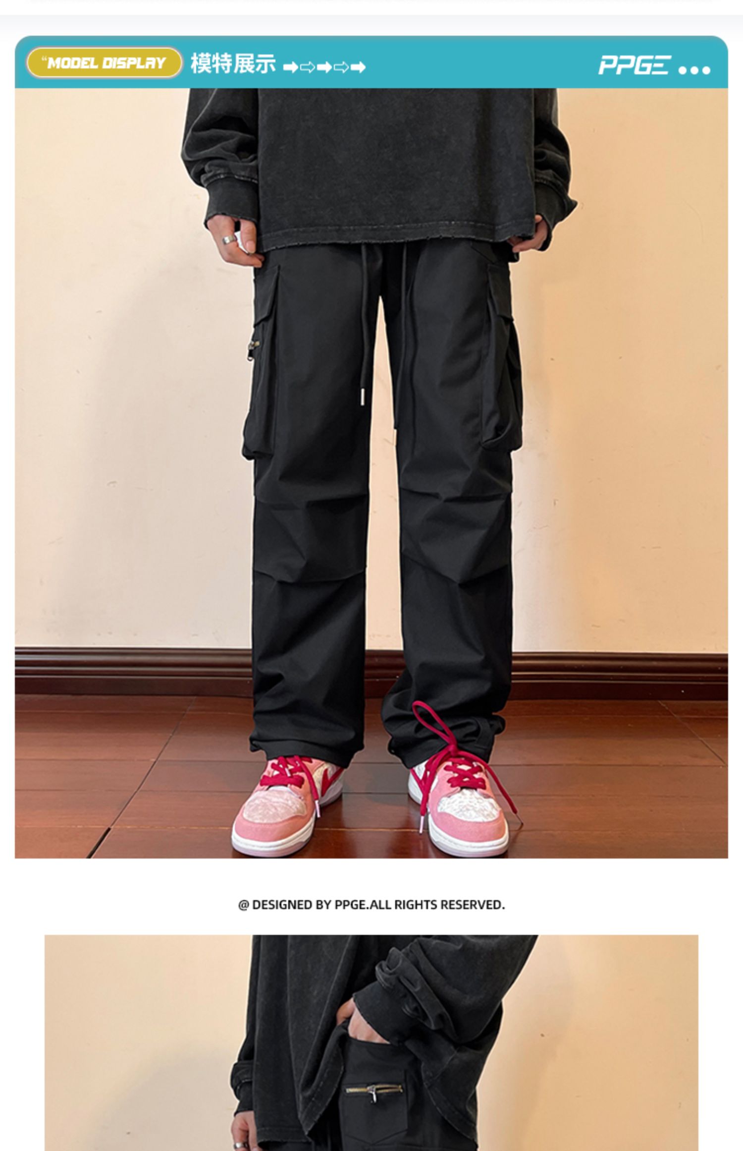 美式機能風大口袋工裝褲男春秋款ins潮牌高街寬鬆直筒闊腿長褲子