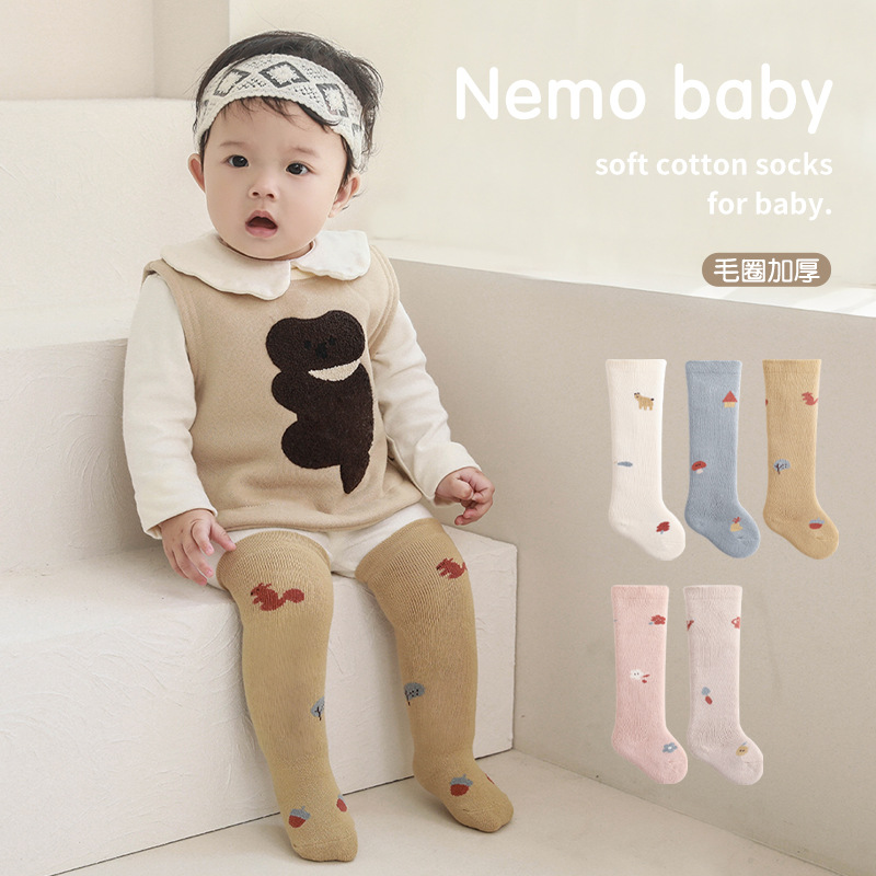 新生儿宝宝高筒袜子2022冬季新品加厚保暖婴儿袜子可爱卡通长筒袜